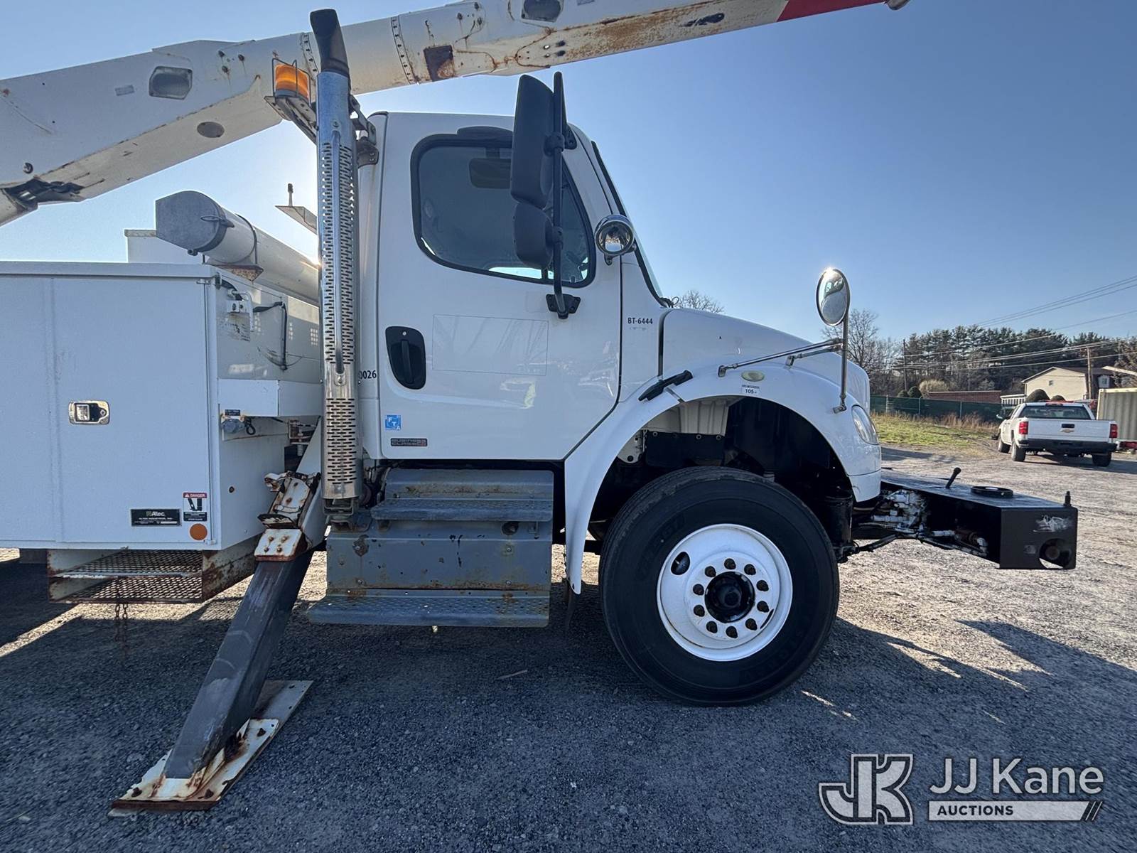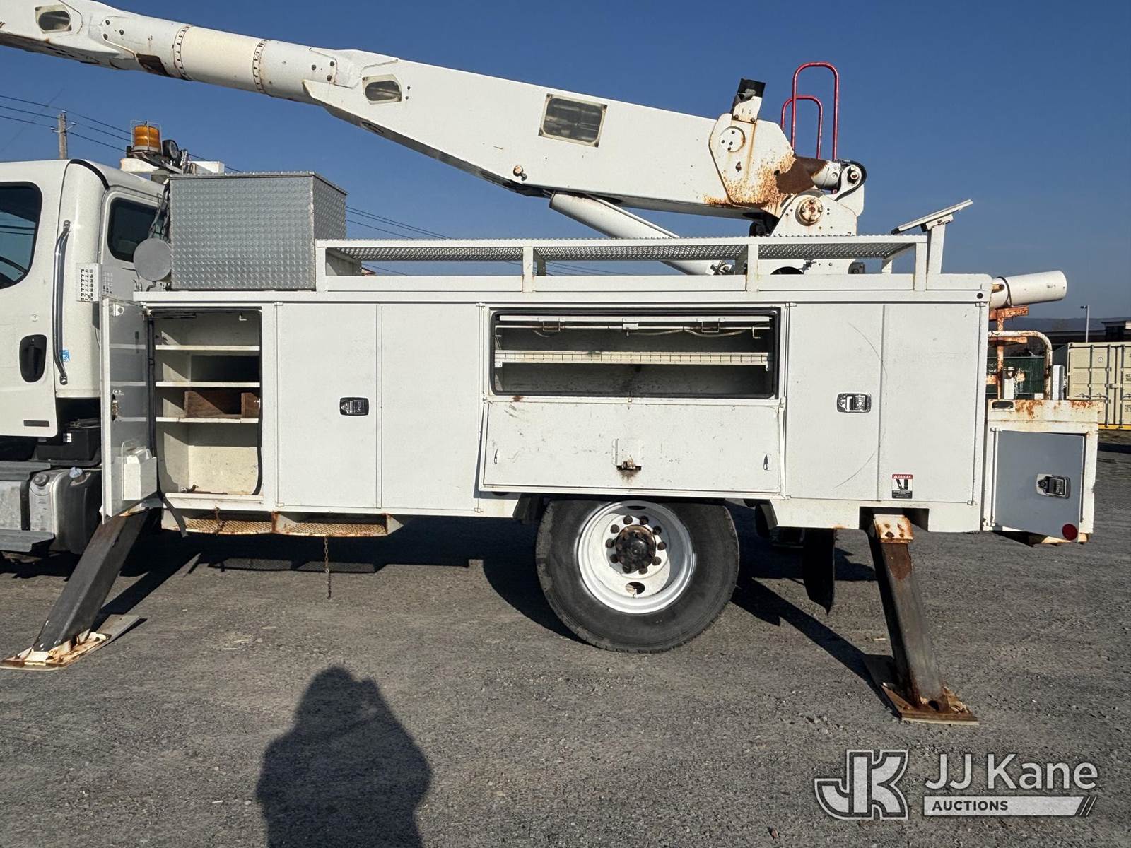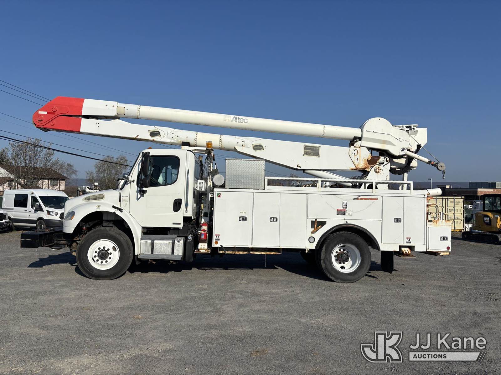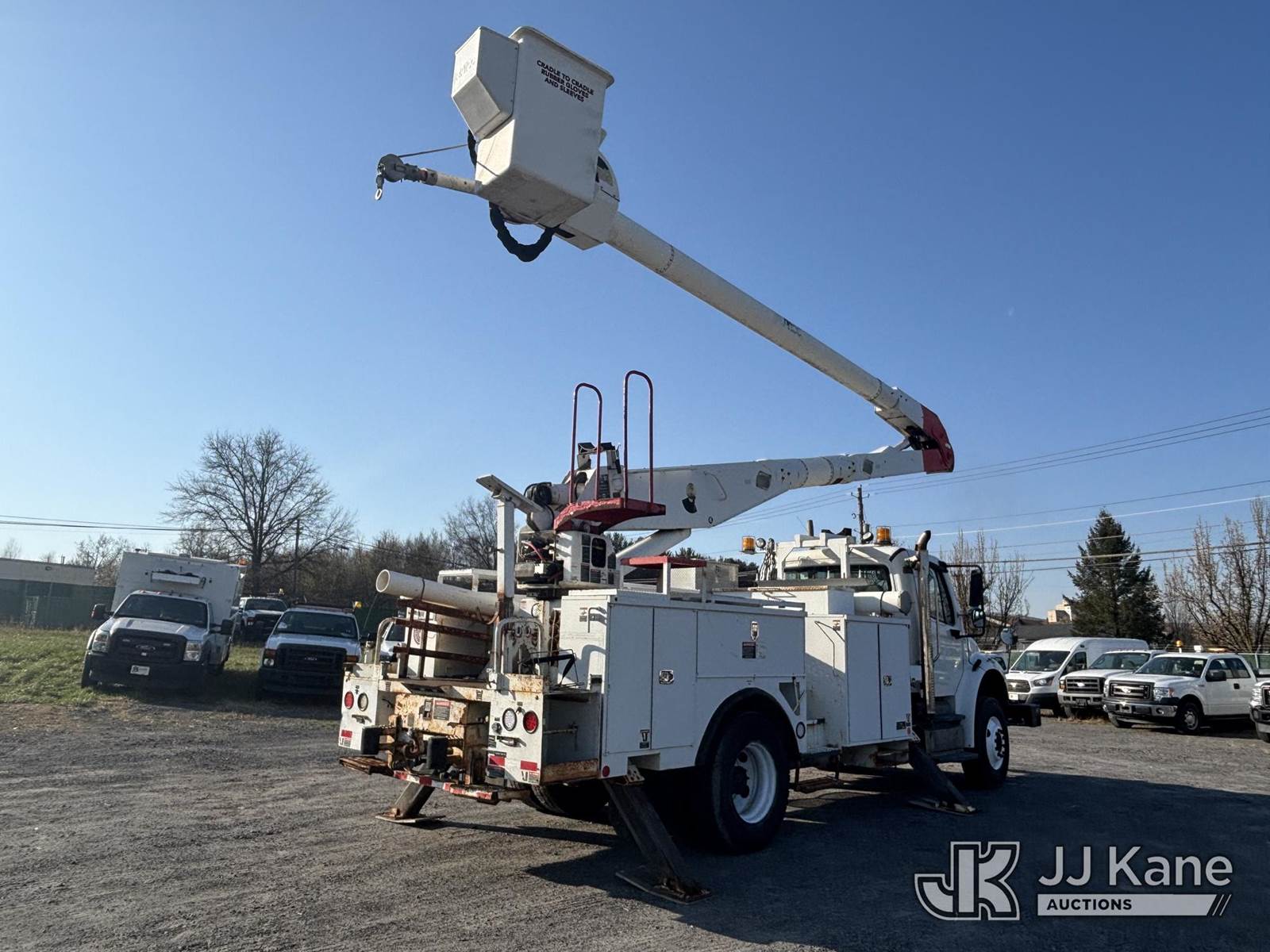 Altec AA755-MH, 60 ft, Articulating Material Handling Bucket Truck s/n 1210BZ6260, with single-man bucket & 4 hyd outriggers, rear mounted on 2011 Freightliner M2 106 Business Class M2 Utility Truck, 8.3L L6 4X2, DIESEL, Auto, A/C, with Inverter, Front End Winch With Cable Winch, (204,756 miles) (Runs, Moves, & Upper Operates, Multiple Warning Lights On Dash, Steering Alignment Off Center, Recommend Inspection For Hydraulic System Relief, Sticking Valve Handles, Dings, Dents, & Scratches, Cracked & Impacted Covers Across Unit, Lower Boom Lower Function At Proximity Sensory Engagement Slows Flow & Produces Bouncing, Cracked Hydraulic Hoses Across Unit, Rust Present) (Reads 11,736 hours) This is a Titled Item NOTE: This unit is being sold AS IS/WHERE IS via Timed Auction and is located in Plains, PA. Inspection & preview days for this unit are the 2 business days prior to the first day of items closing for this auction, item is located at 250 Laird St Plains, PA 18705 and hours of operations are 8a-4p.For pre-sale questions, please contact Mary Darlington @ (570) 899-4930 or Mary.Darlington@JJKane.com. (Missing manuals, See Auction Company for Manufacturers Information to obtain manuals) (Buyer is responsible for removal. Assistance by consignor or JJ Kane Auctions is not assured.)