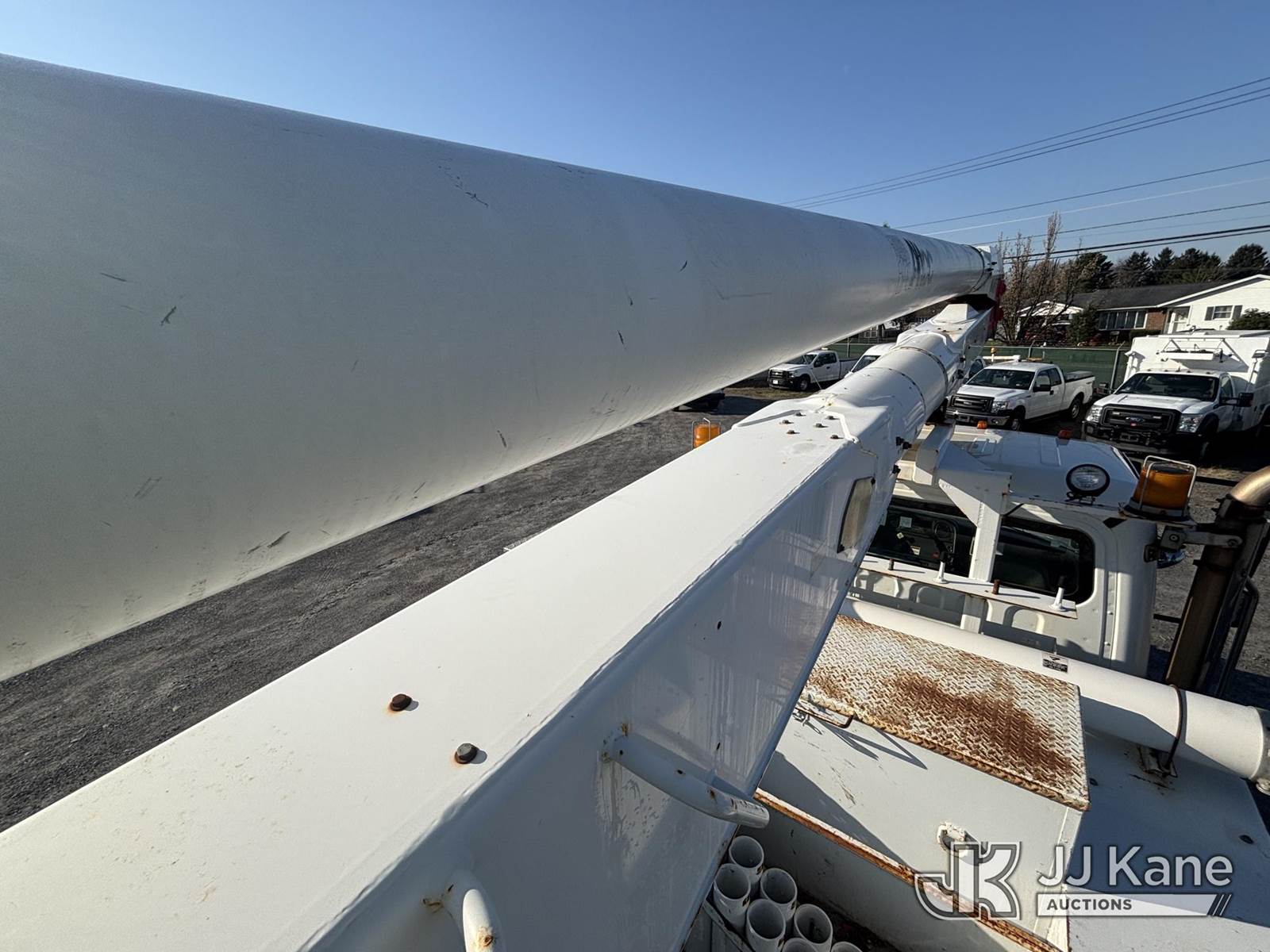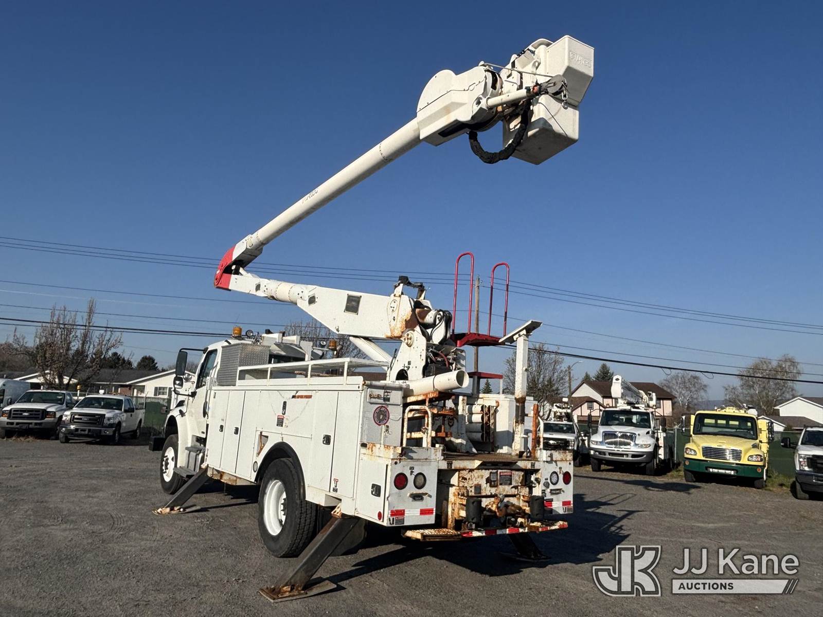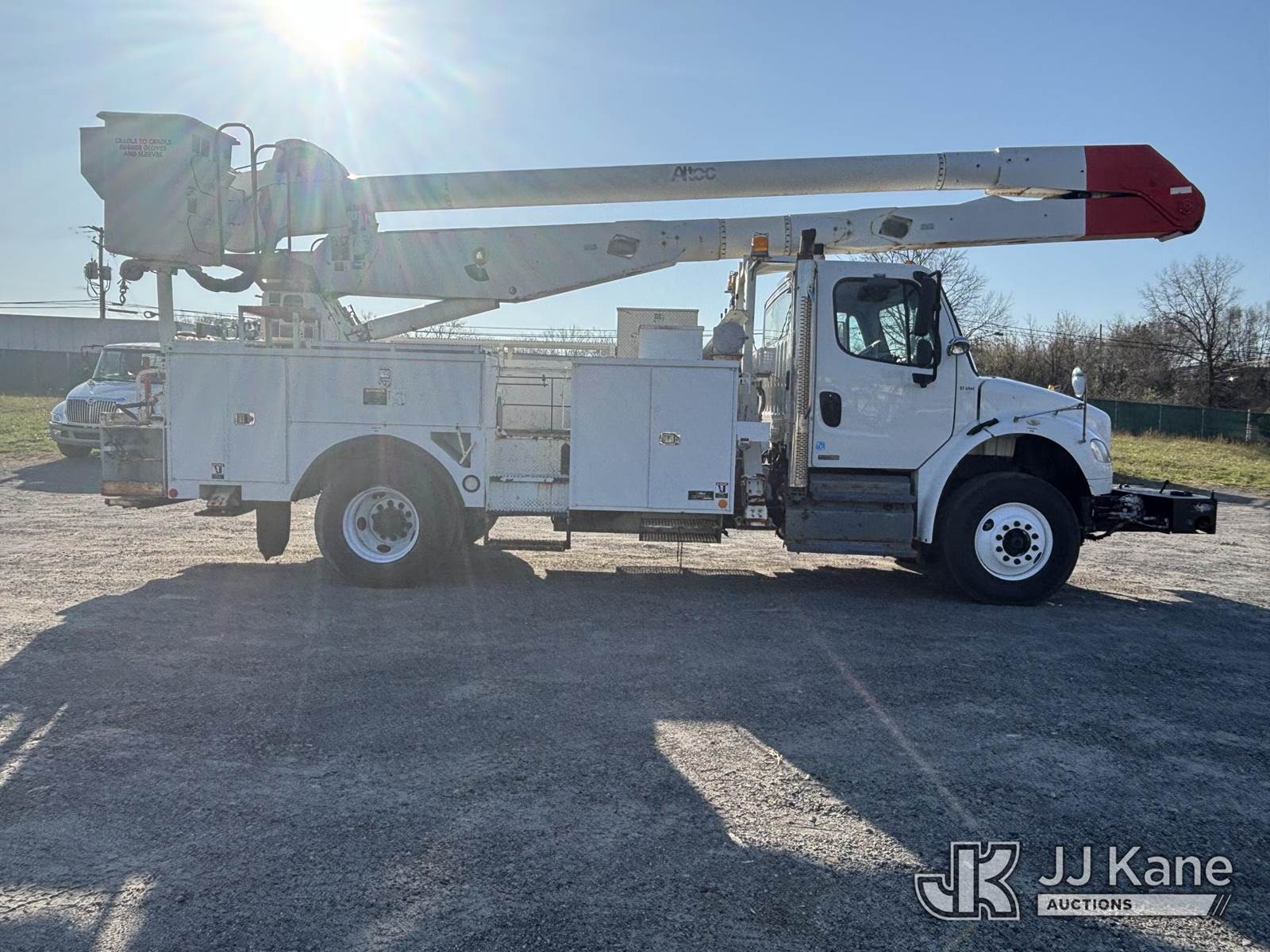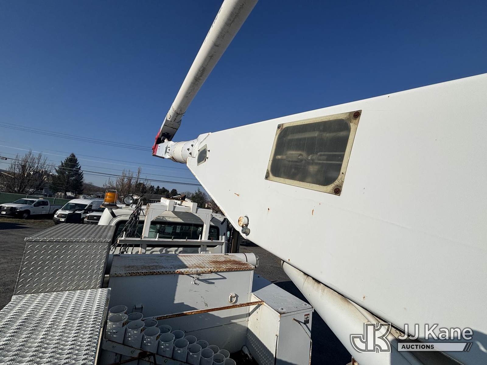 Altec AA755-MH, 60 ft, Articulating Material Handling Bucket Truck s/n 1210BZ6260, with single-man bucket & 4 hyd outriggers, rear mounted on 2011 Freightliner M2 106 Business Class M2 Utility Truck, 8.3L L6 4X2, DIESEL, Auto, A/C, with Inverter, Front End Winch With Cable Winch, (204,756 miles) (Runs, Moves, & Upper Operates, Multiple Warning Lights On Dash, Steering Alignment Off Center, Recommend Inspection For Hydraulic System Relief, Sticking Valve Handles, Dings, Dents, & Scratches, Cracked & Impacted Covers Across Unit, Lower Boom Lower Function At Proximity Sensory Engagement Slows Flow & Produces Bouncing, Cracked Hydraulic Hoses Across Unit, Rust Present) (Reads 11,736 hours) This is a Titled Item NOTE: This unit is being sold AS IS/WHERE IS via Timed Auction and is located in Plains, PA. Inspection & preview days for this unit are the 2 business days prior to the first day of items closing for this auction, item is located at 250 Laird St Plains, PA 18705 and hours of operations are 8a-4p.For pre-sale questions, please contact Mary Darlington @ (570) 899-4930 or Mary.Darlington@JJKane.com. (Missing manuals, See Auction Company for Manufacturers Information to obtain manuals) (Buyer is responsible for removal. Assistance by consignor or JJ Kane Auctions is not assured.)