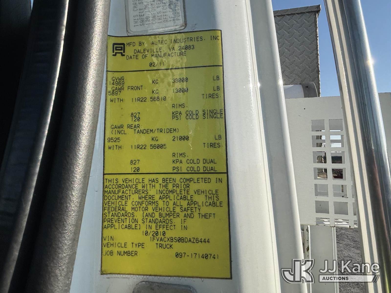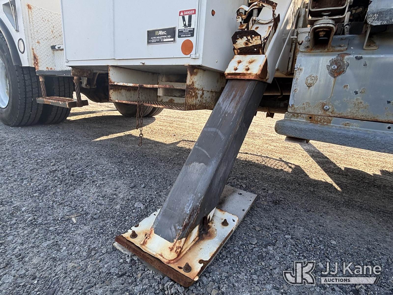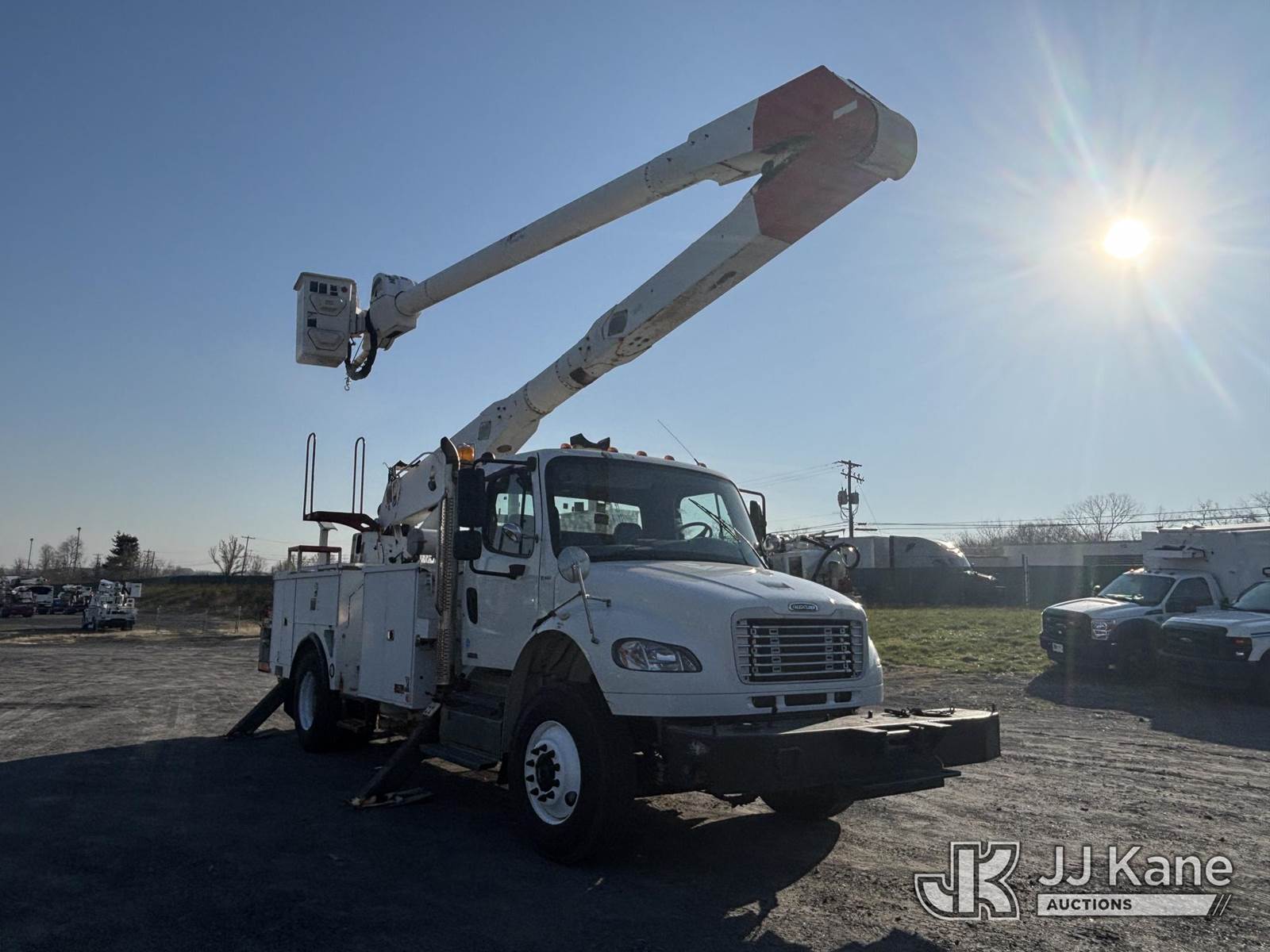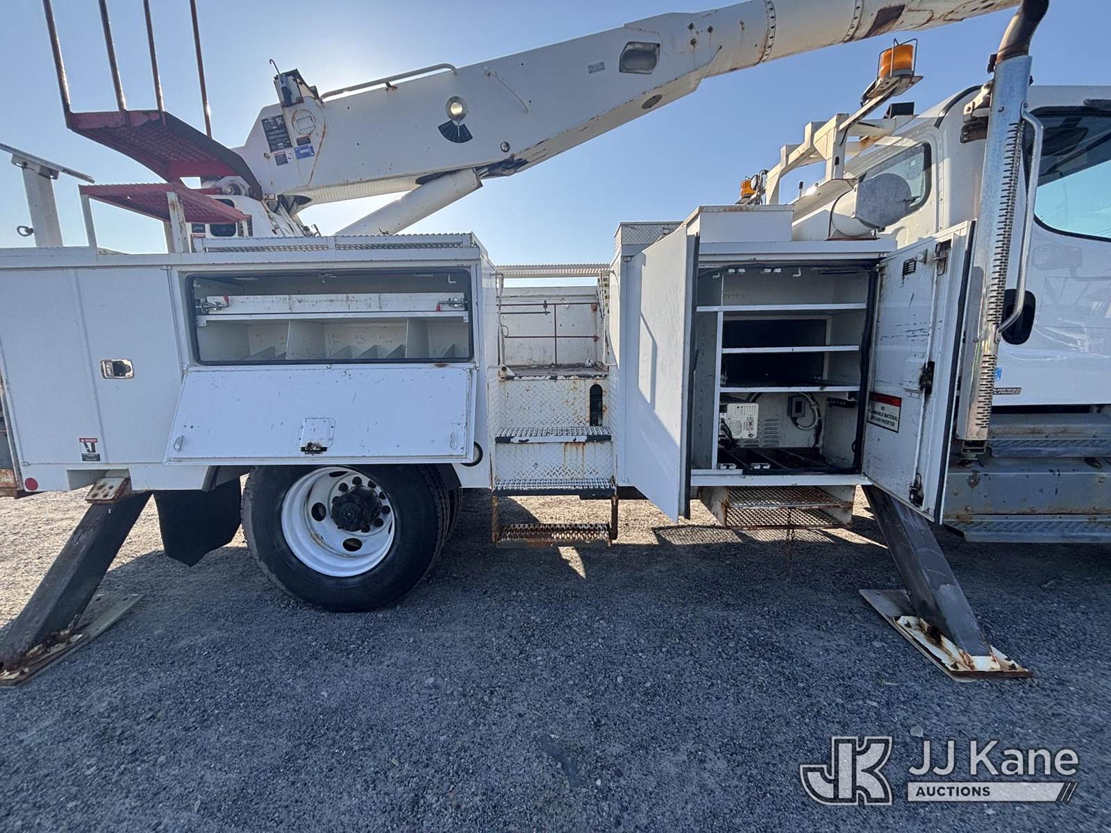 Altec AA755-MH, 60 ft, Articulating Material Handling Bucket Truck s/n 1210BZ6260, with single-man bucket & 4 hyd outriggers, rear mounted on 2011 Freightliner M2 106 Business Class M2 Utility Truck, 8.3L L6 4X2, DIESEL, Auto, A/C, with Inverter, Front End Winch With Cable Winch, (204,756 miles) (Runs, Moves, & Upper Operates, Multiple Warning Lights On Dash, Steering Alignment Off Center, Recommend Inspection For Hydraulic System Relief, Sticking Valve Handles, Dings, Dents, & Scratches, Cracked & Impacted Covers Across Unit, Lower Boom Lower Function At Proximity Sensory Engagement Slows Flow & Produces Bouncing, Cracked Hydraulic Hoses Across Unit, Rust Present) (Reads 11,736 hours) This is a Titled Item NOTE: This unit is being sold AS IS/WHERE IS via Timed Auction and is located in Plains, PA. Inspection & preview days for this unit are the 2 business days prior to the first day of items closing for this auction, item is located at 250 Laird St Plains, PA 18705 and hours of operations are 8a-4p.For pre-sale questions, please contact Mary Darlington @ (570) 899-4930 or Mary.Darlington@JJKane.com. (Missing manuals, See Auction Company for Manufacturers Information to obtain manuals) (Buyer is responsible for removal. Assistance by consignor or JJ Kane Auctions is not assured.)