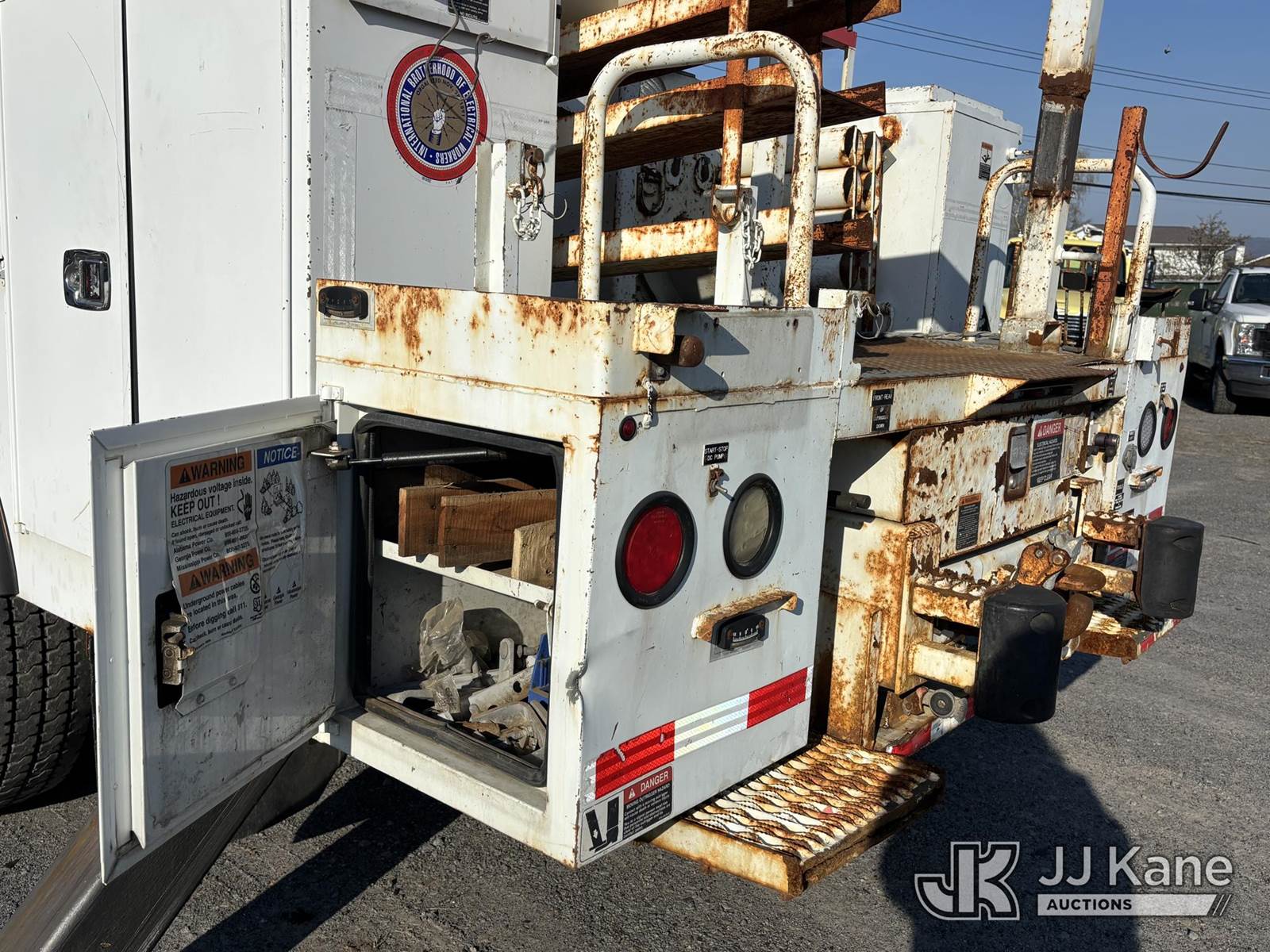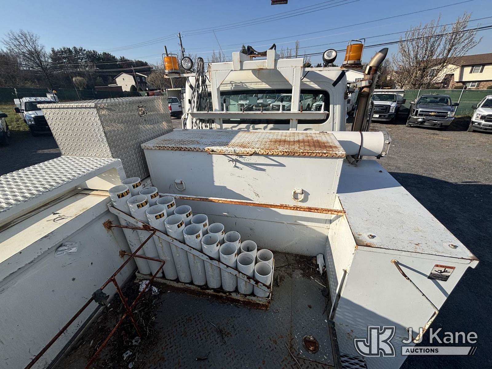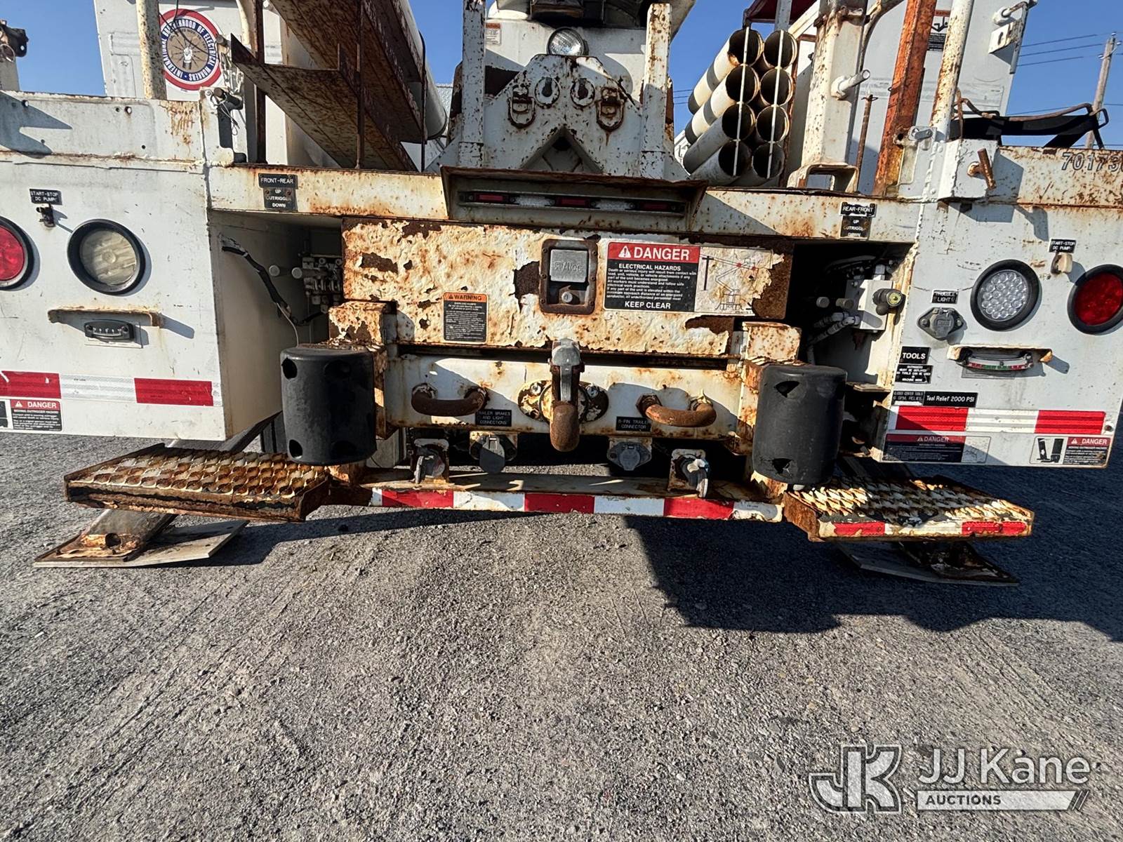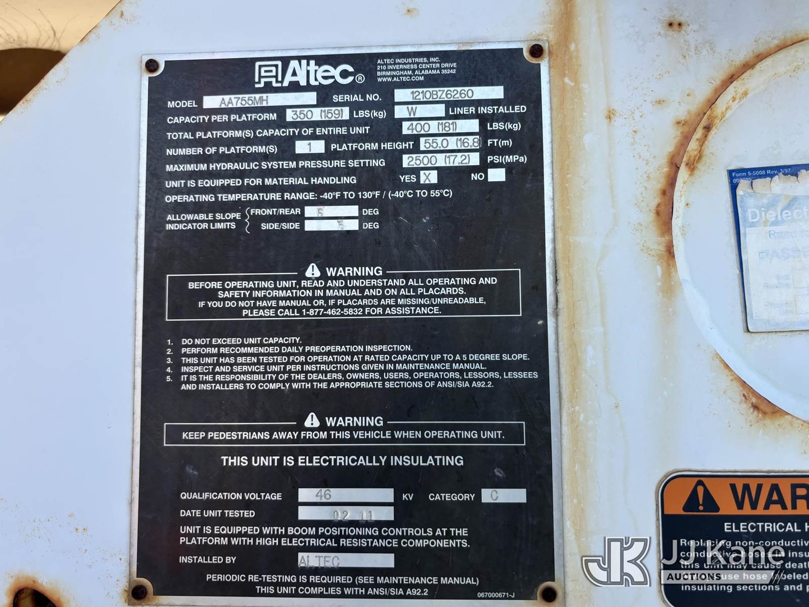 Altec AA755-MH, 60 ft, Articulating Material Handling Bucket Truck s/n 1210BZ6260, with single-man bucket & 4 hyd outriggers, rear mounted on 2011 Freightliner M2 106 Business Class M2 Utility Truck, 8.3L L6 4X2, DIESEL, Auto, A/C, with Inverter, Front End Winch With Cable Winch, (204,756 miles) (Runs, Moves, & Upper Operates, Multiple Warning Lights On Dash, Steering Alignment Off Center, Recommend Inspection For Hydraulic System Relief, Sticking Valve Handles, Dings, Dents, & Scratches, Cracked & Impacted Covers Across Unit, Lower Boom Lower Function At Proximity Sensory Engagement Slows Flow & Produces Bouncing, Cracked Hydraulic Hoses Across Unit, Rust Present) (Reads 11,736 hours) This is a Titled Item NOTE: This unit is being sold AS IS/WHERE IS via Timed Auction and is located in Plains, PA. Inspection & preview days for this unit are the 2 business days prior to the first day of items closing for this auction, item is located at 250 Laird St Plains, PA 18705 and hours of operations are 8a-4p.For pre-sale questions, please contact Mary Darlington @ (570) 899-4930 or Mary.Darlington@JJKane.com. (Missing manuals, See Auction Company for Manufacturers Information to obtain manuals) (Buyer is responsible for removal. Assistance by consignor or JJ Kane Auctions is not assured.)