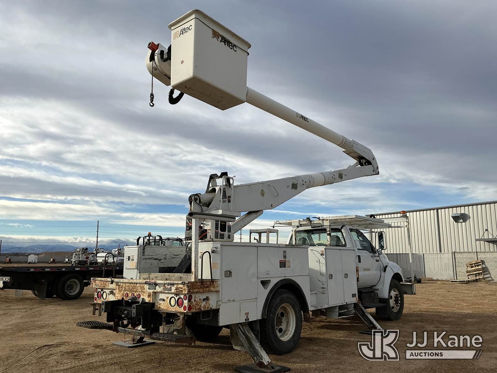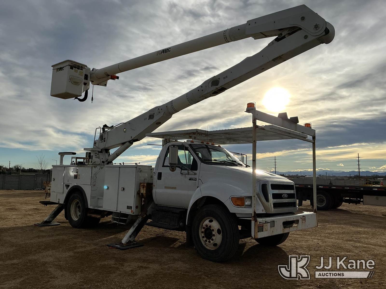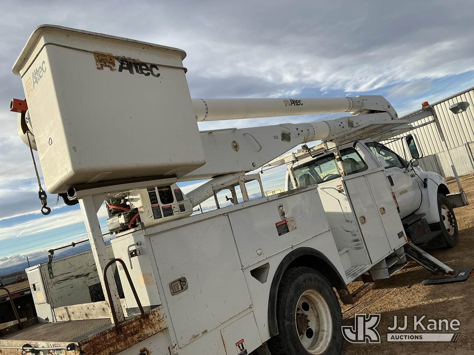 Altec AA755-MH, 60 ft, Material Handling Bucket Truck s/n 1110BZ6197, with two man bucket, rear mounted on 2011 Ford F-750 Utility Truck, 6.7L diesel, 6-spd, A/C, with 6383 PTO hours, (97,696 miles) (Runs, Moves & Upper Operates) (Engine Lights On) ( No Emissions Test Provided) This is a Titled Item NOTE: This unit is being sold AS IS/WHERE IS via Timed Auction and is located in Fort Lupton, CO. Inspection & preview days for this unit are the 2 business days prior to the first day of items closing for this auction, item is located at 2105 Northland Dr Fort Lupton, CO 80621 and hours of operations are 8a-4p. For pre-sale questions, please contact Dakota Hoffman @ (720) 621-0786. Dealer License Number 47109. (Manuals provided in cab) (Buyer is responsible for removal. Assistance by consignor or JJ Kane Auctions is not assured.)