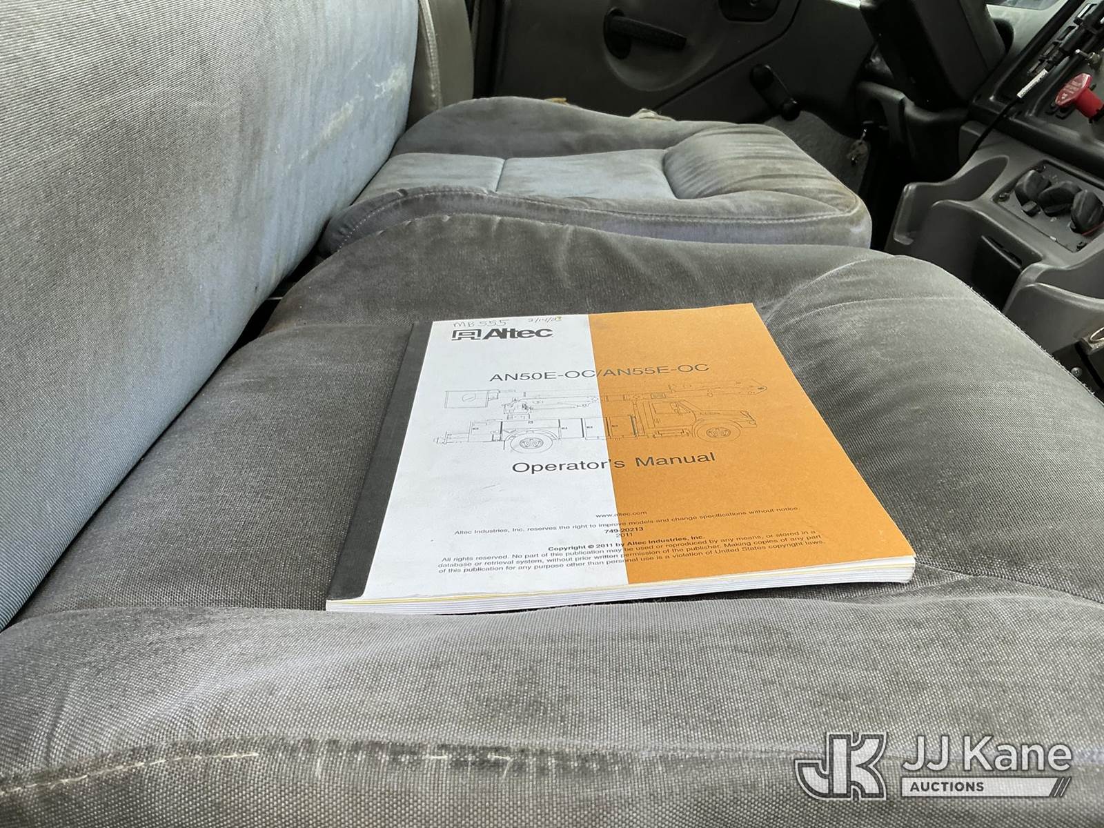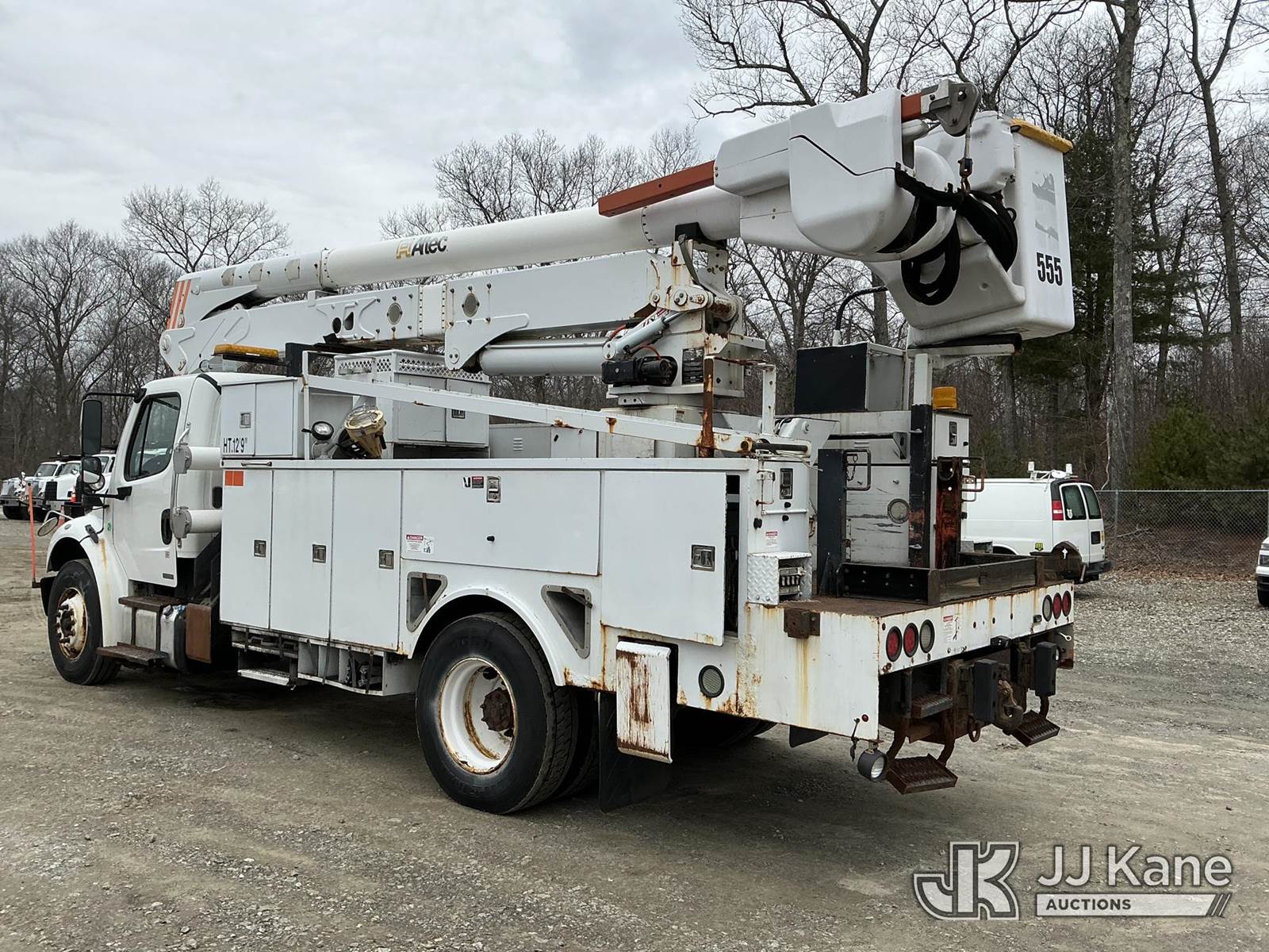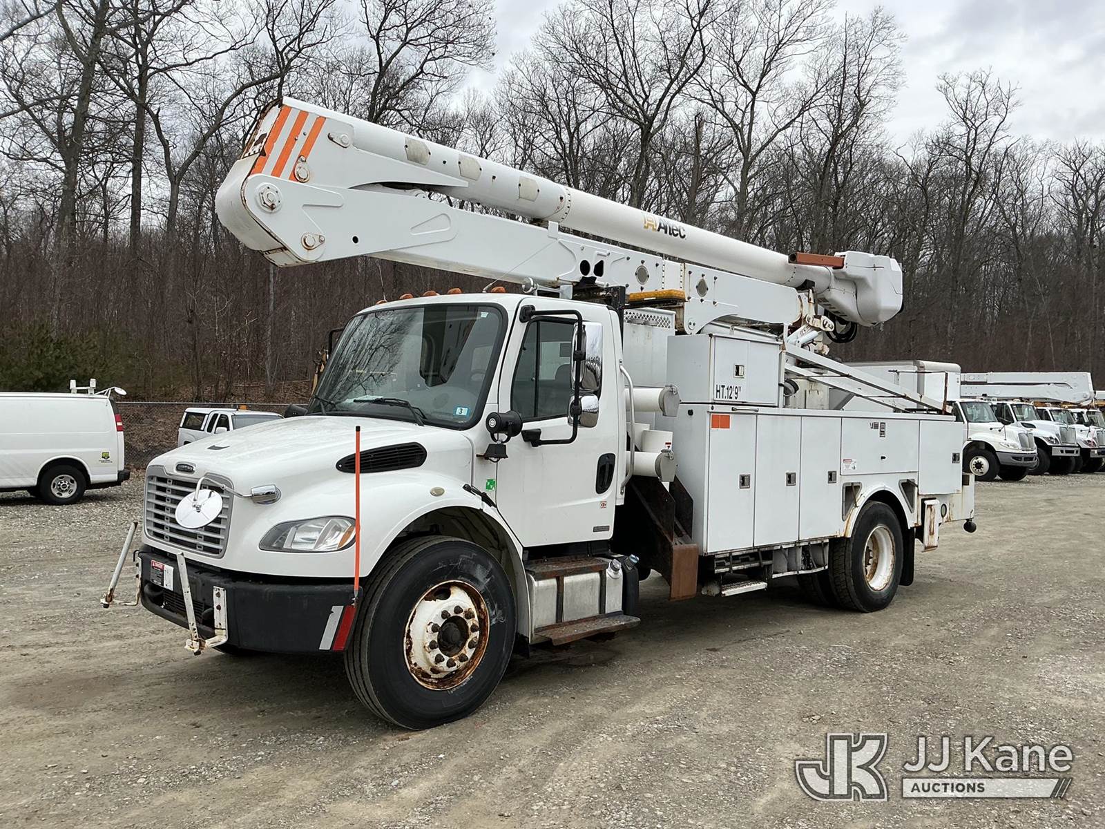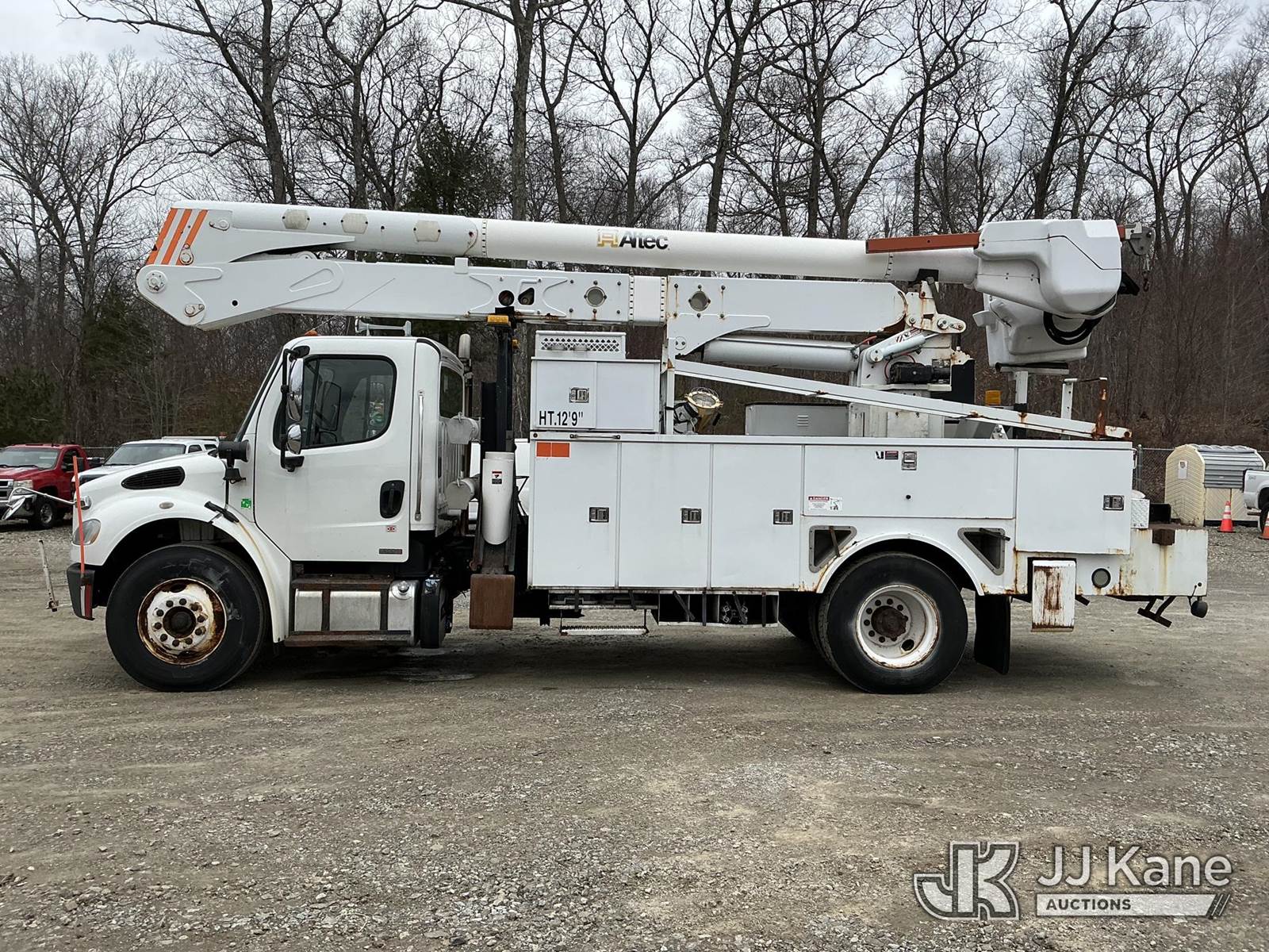Altec AN50E-OC, 55 ft, Material Handling Bucket Truck s/n 0411ES0215, with single-man bucket & 4 hyd outriggers, rear mounted on 2011 Freightliner M2 Medium Duty Utility Truck, Cummins 6.7L 4X2, diesel, Auto, A/C, with rear capstan winch, (129,342 miles) (Runs & Moves In Reduced Power Mode Only) (Upper Operates) (Check Engine, Wheel Spin & ABS Lights On) (Reads 11,645 hours) This is a Titled Item NOTE: This unit is being sold AS IS/WHERE IS via Timed Auction and is located in Shrewsbury, MA. Inspection & preview days for this unit are the 2 business days prior to the first day of items closing for this auction, item is located at 11 Fortune Blvd Shrewsbury, MA 01545 and hours of operations are 8a-4p. For pre-sale questions, please contact Rob Gifford @ (508) 864-4126. (Manuals provided in cab) (Buyer is responsible for removal. Assistance by consignor or JJ Kane Auctions is not assured.)