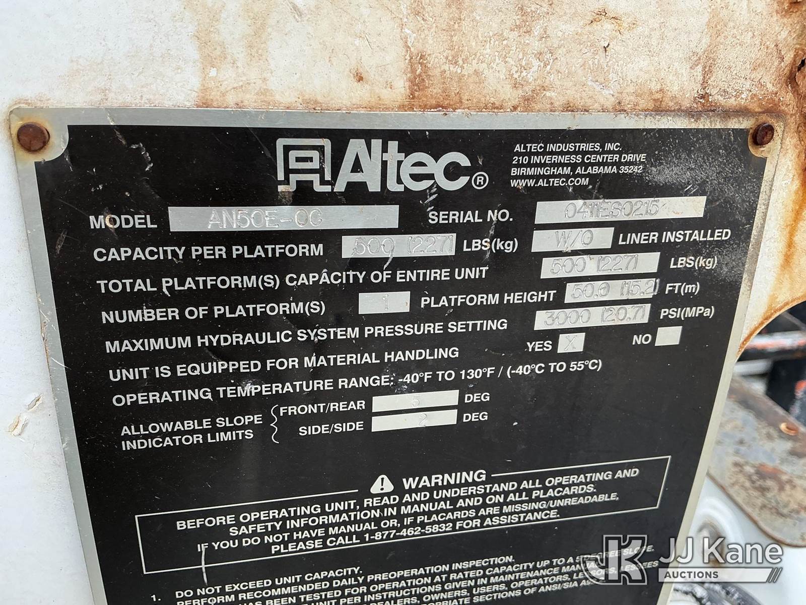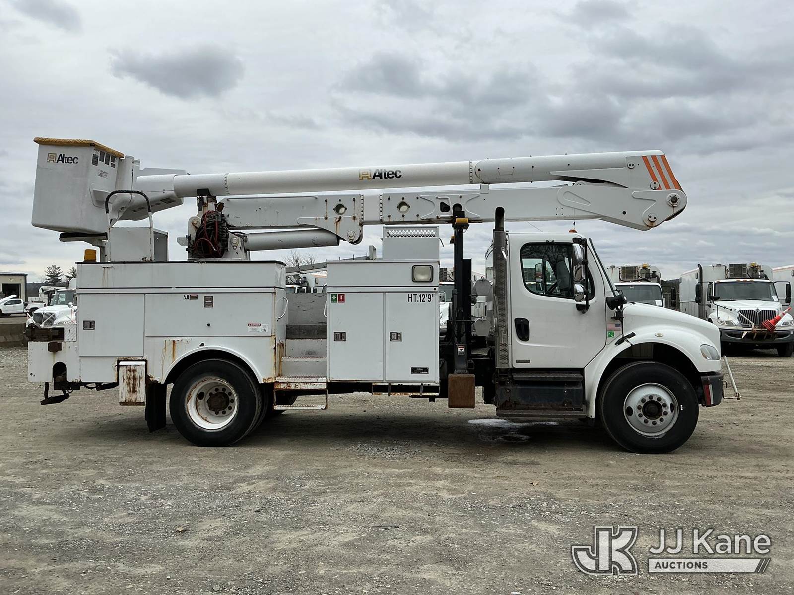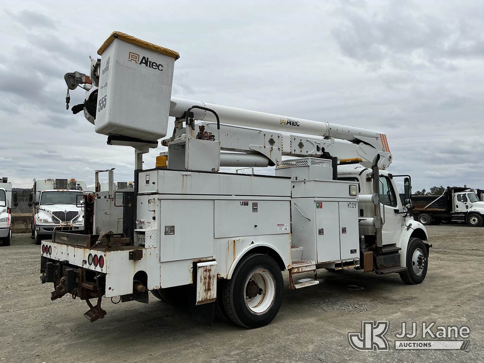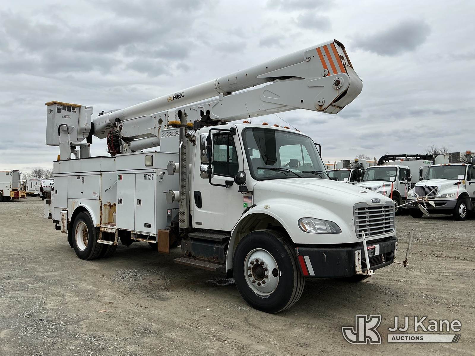Altec AN50E-OC, 55 ft, Material Handling Bucket Truck s/n 0411ES0215, with single-man bucket & 4 hyd outriggers, rear mounted on 2011 Freightliner M2 Medium Duty Utility Truck, Cummins 6.7L 4X2, diesel, Auto, A/C, with rear capstan winch, (129,342 miles) (Runs & Moves In Reduced Power Mode Only) (Upper Operates) (Check Engine, Wheel Spin & ABS Lights On) (Reads 11,645 hours) This is a Titled Item NOTE: This unit is being sold AS IS/WHERE IS via Timed Auction and is located in Shrewsbury, MA. Inspection & preview days for this unit are the 2 business days prior to the first day of items closing for this auction, item is located at 11 Fortune Blvd Shrewsbury, MA 01545 and hours of operations are 8a-4p. For pre-sale questions, please contact Rob Gifford @ (508) 864-4126. (Manuals provided in cab) (Buyer is responsible for removal. Assistance by consignor or JJ Kane Auctions is not assured.)