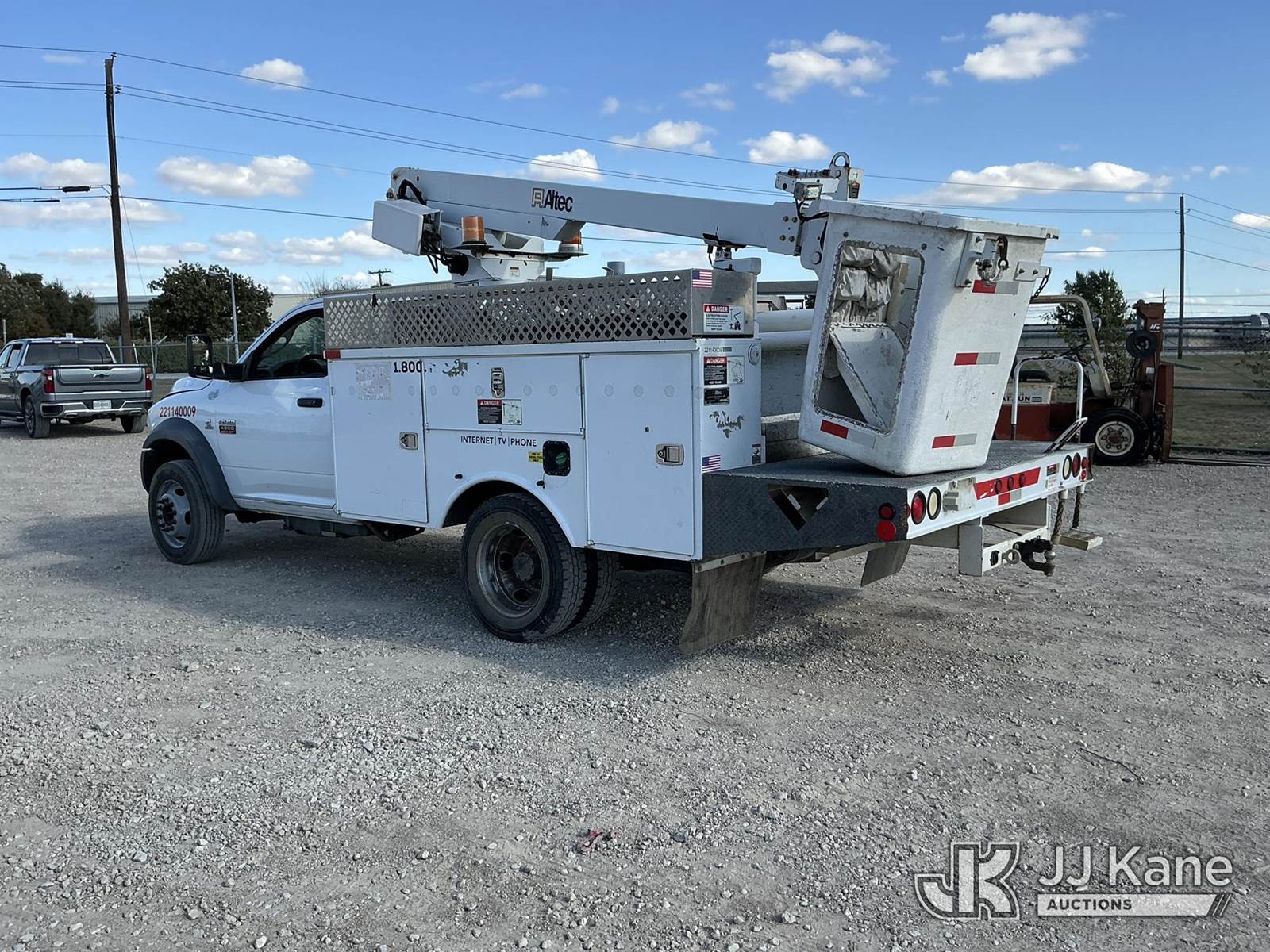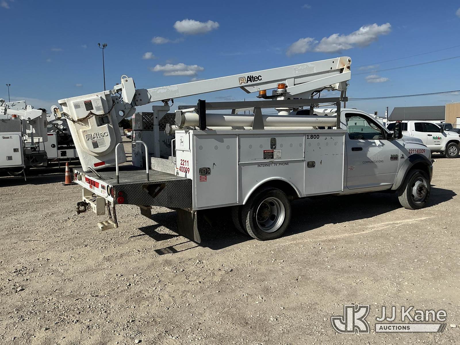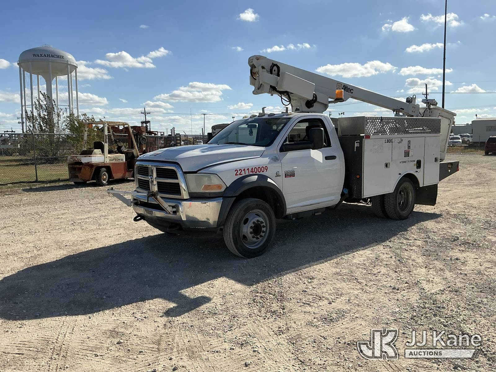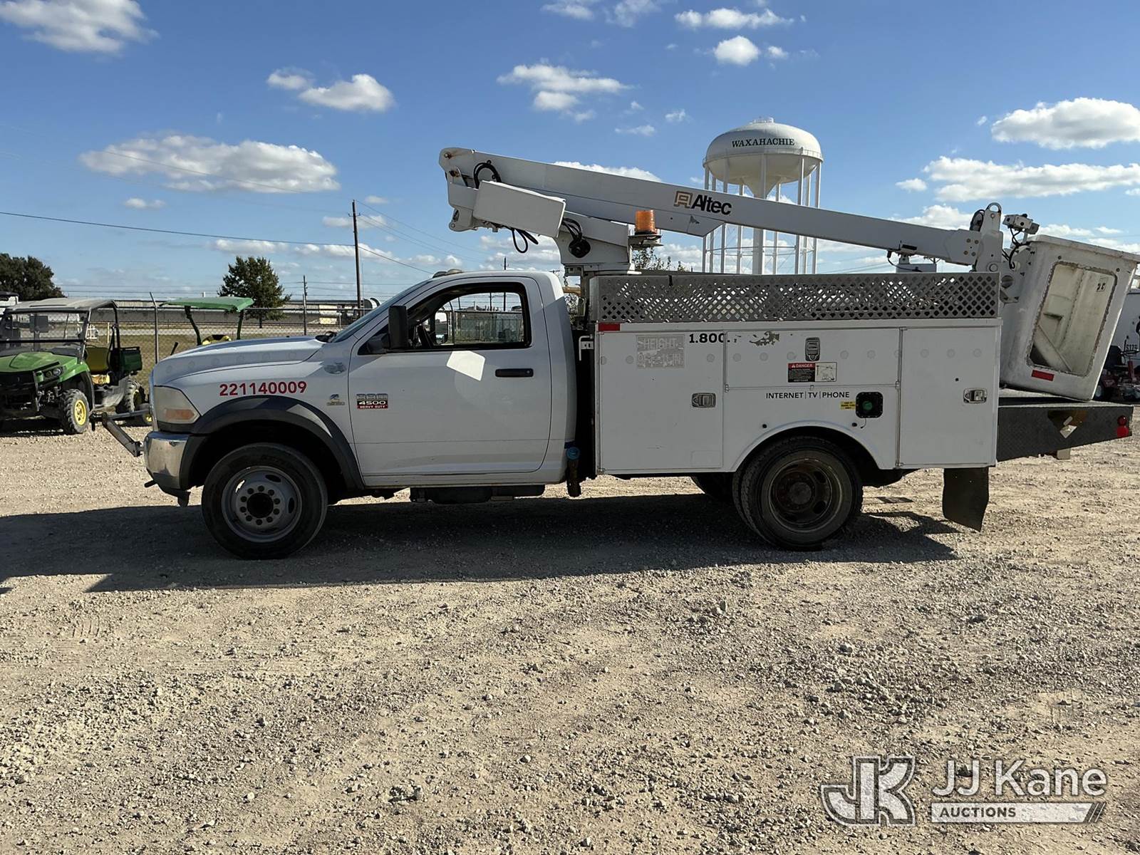 Altec AT200A, 35 ft, Telescopic Non-Insulated Bucket Truck s/n 1210BV16580, with single-man bucket, mounted behind cab on 2011 Dodge Ram 4500 Service Truck, 6.7L Auto, diesel, A/C, (228,012 miles) (Runs & Moves, PTO Engages) (Upper Unit Inoperable - Condition Unknown - Lower Controls Not Working, Bucket Side Panel Is Detached, Engine Light On) This is a Titled Item NOTE: This unit is being sold AS IS/WHERE IS via Timed Auction and is located in Waxahachie, TX. Inspection & preview days for this unit are the 2 business days prior to the first day of items closing for this auction, item is located at 999 Solon Rd Waxahachie, TX 75165 and hours of operations are 8a-4p. For pre-sale questions, please contact Alex Bayless @ (469) 550-4938. (Manuals provided in cab) (Buyer is responsible for removal. Assistance by consignor or JJ Kane Auctions is not assured.)