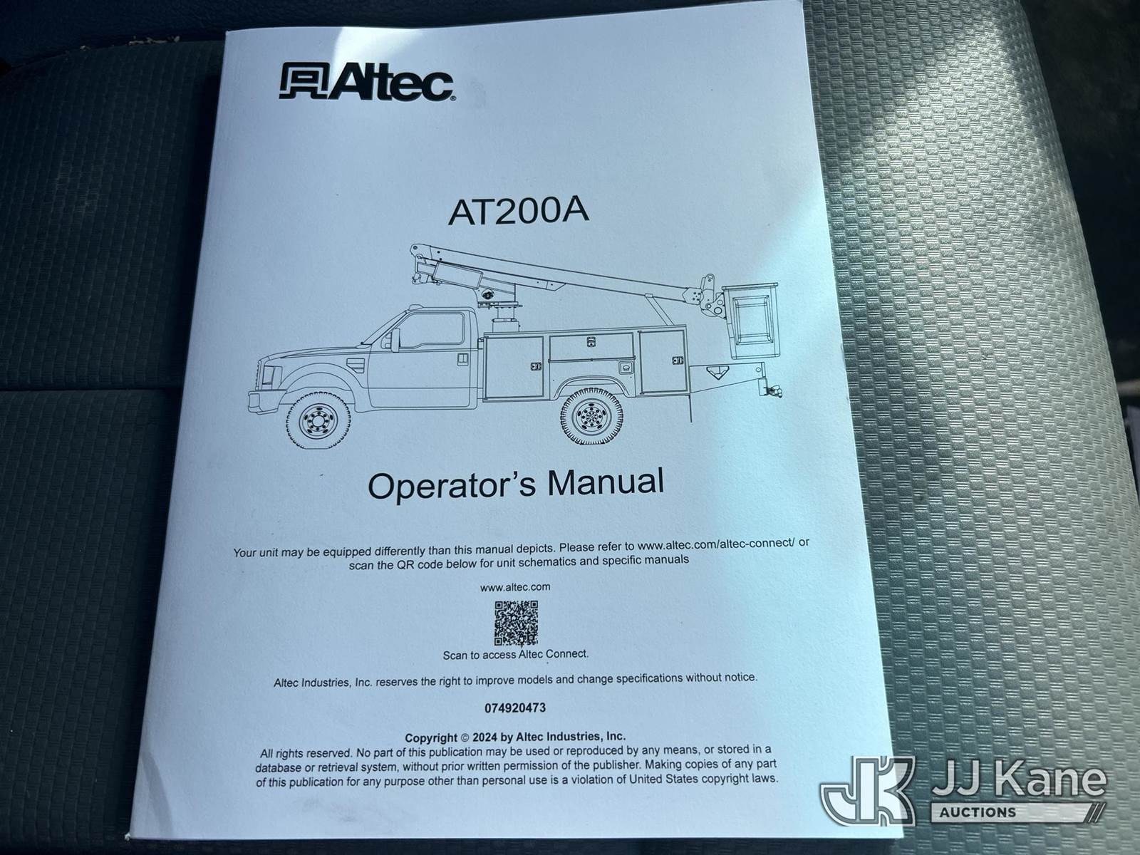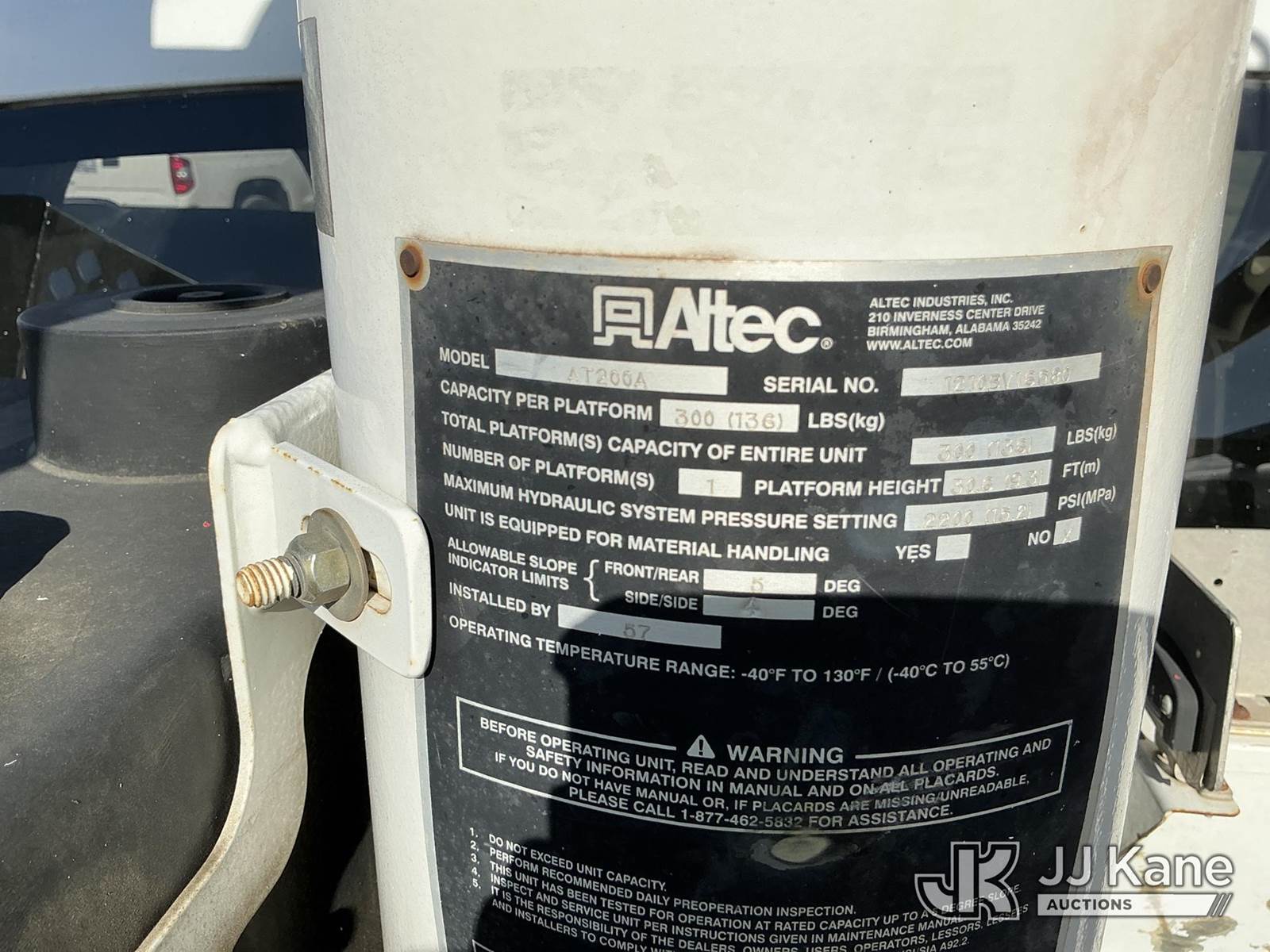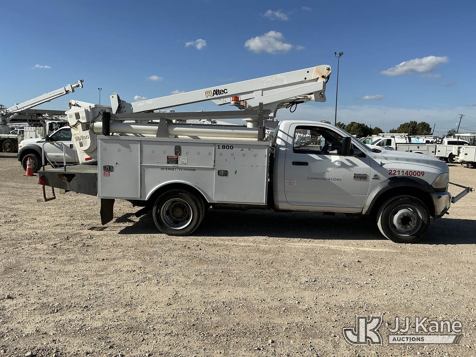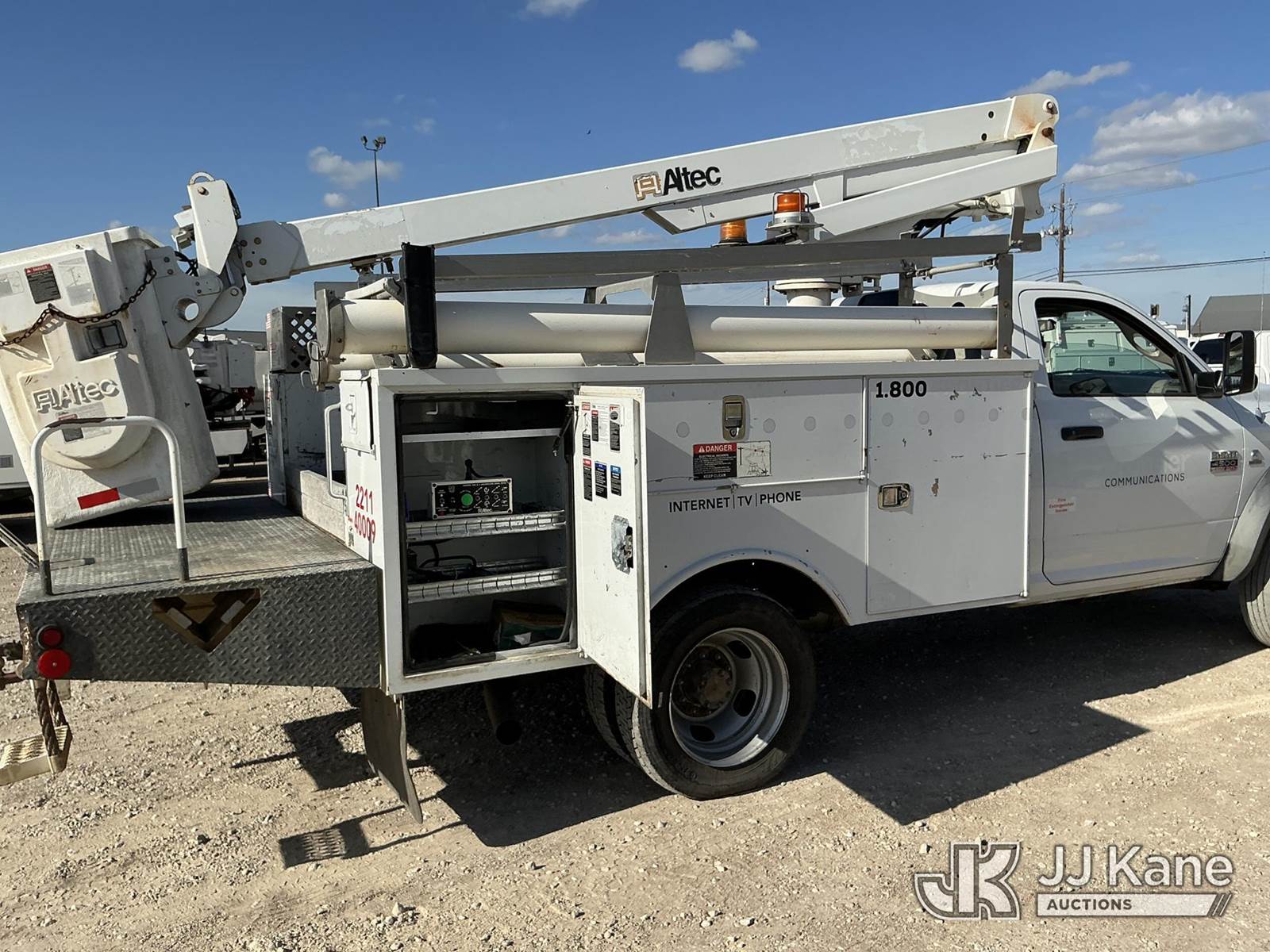 Altec AT200A, 35 ft, Telescopic Non-Insulated Bucket Truck s/n 1210BV16580, with single-man bucket, mounted behind cab on 2011 Dodge Ram 4500 Service Truck, 6.7L Auto, diesel, A/C, (228,012 miles) (Runs & Moves, PTO Engages) (Upper Unit Inoperable - Condition Unknown - Lower Controls Not Working, Bucket Side Panel Is Detached, Engine Light On) This is a Titled Item NOTE: This unit is being sold AS IS/WHERE IS via Timed Auction and is located in Waxahachie, TX. Inspection & preview days for this unit are the 2 business days prior to the first day of items closing for this auction, item is located at 999 Solon Rd Waxahachie, TX 75165 and hours of operations are 8a-4p. For pre-sale questions, please contact Alex Bayless @ (469) 550-4938. (Manuals provided in cab) (Buyer is responsible for removal. Assistance by consignor or JJ Kane Auctions is not assured.)