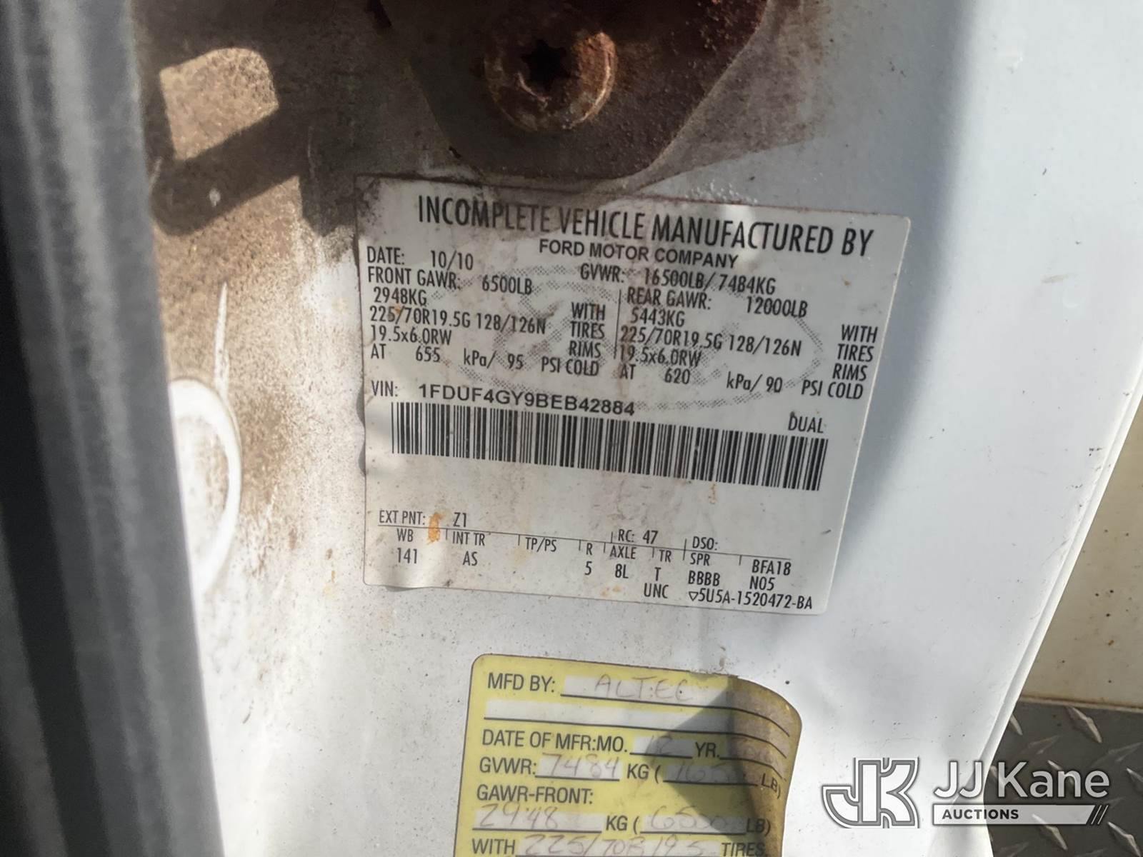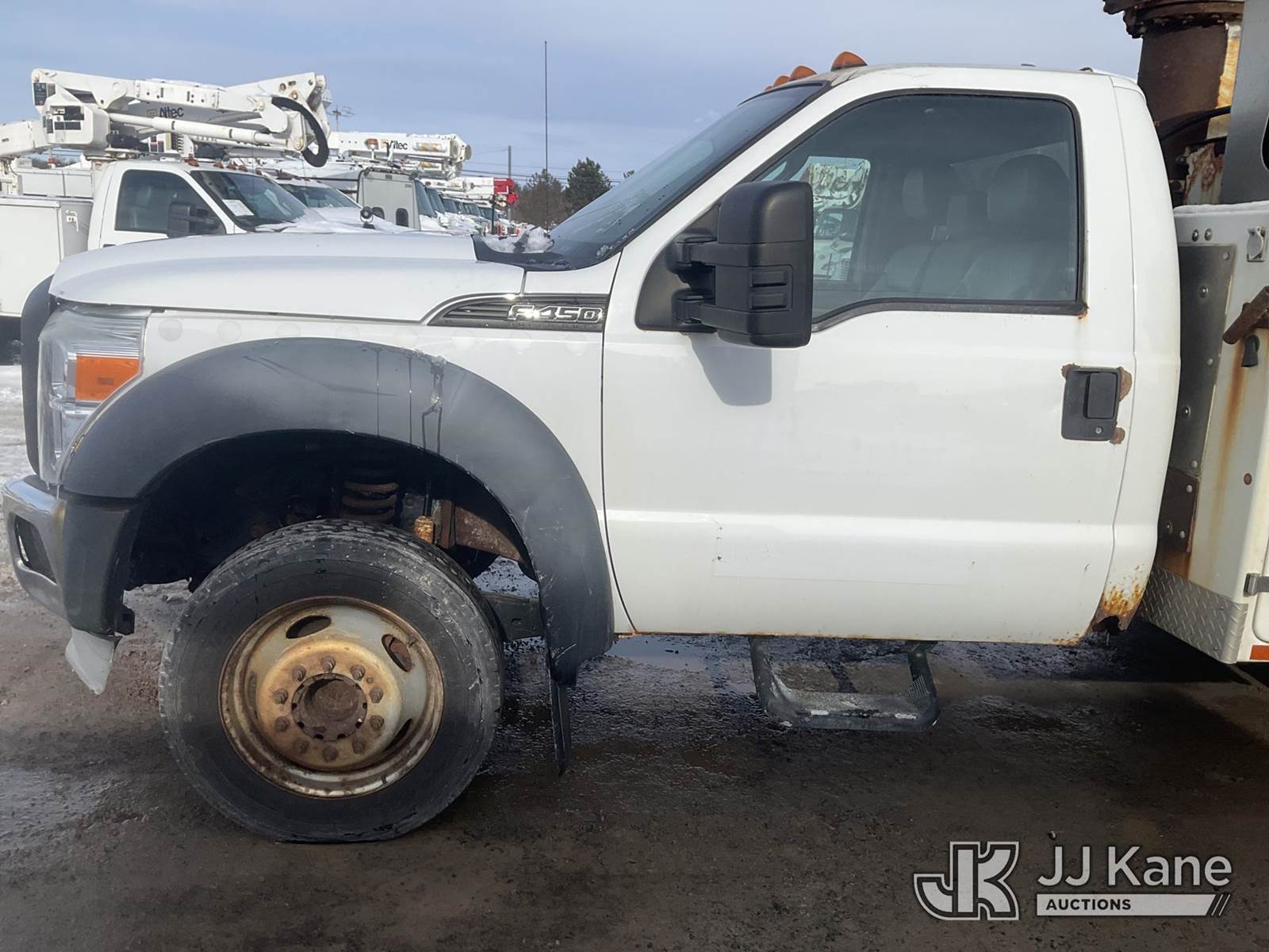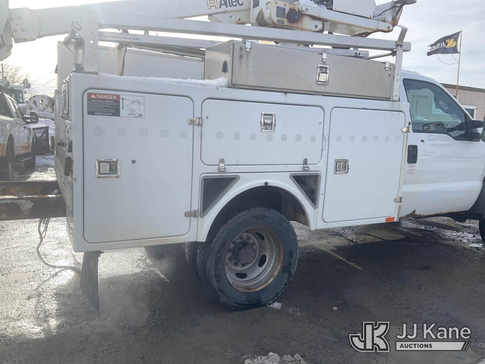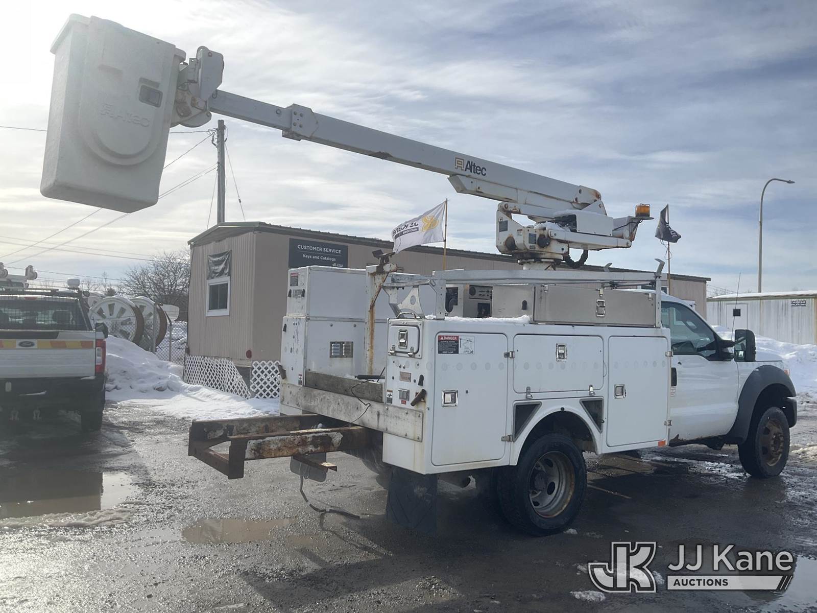 Altec AT235, 40 ft, Articulating & Telescopic Non-Insulated Bucket Truck s/n 1010BX4259, with Single-Man Bucket, mounted behind cab on 2011 Ford F450 2WD Service Truck, 10-cyl gas, Auto, A/C, (196,591 miles (unverified)) (Jump to Start, Runs, Moves & Upper Operates, No Brakes, ABS & Brake Lights On, Must Tow) This is a Titled Item NOTE: This unit is being sold AS IS/WHERE IS via Timed Auction and is located in Rome, NY. Inspection & preview days for this unit are the 2 business days prior to the first day of items closing for this auction, item is located at 5835 Success Dr Rome, NY 13440 and hours of operations are 8a-4p. For pre-sale questions, please contact Ryan Jackson @ (315) 749-3790 or Ryan.Jackson@jjkane.com. (Missing manuals, See Auction Company for Manufacturers Information to obtain manuals) (Buyer is responsible for removal. Assistance by consignor or JJ Kane Auctions is not assured.)