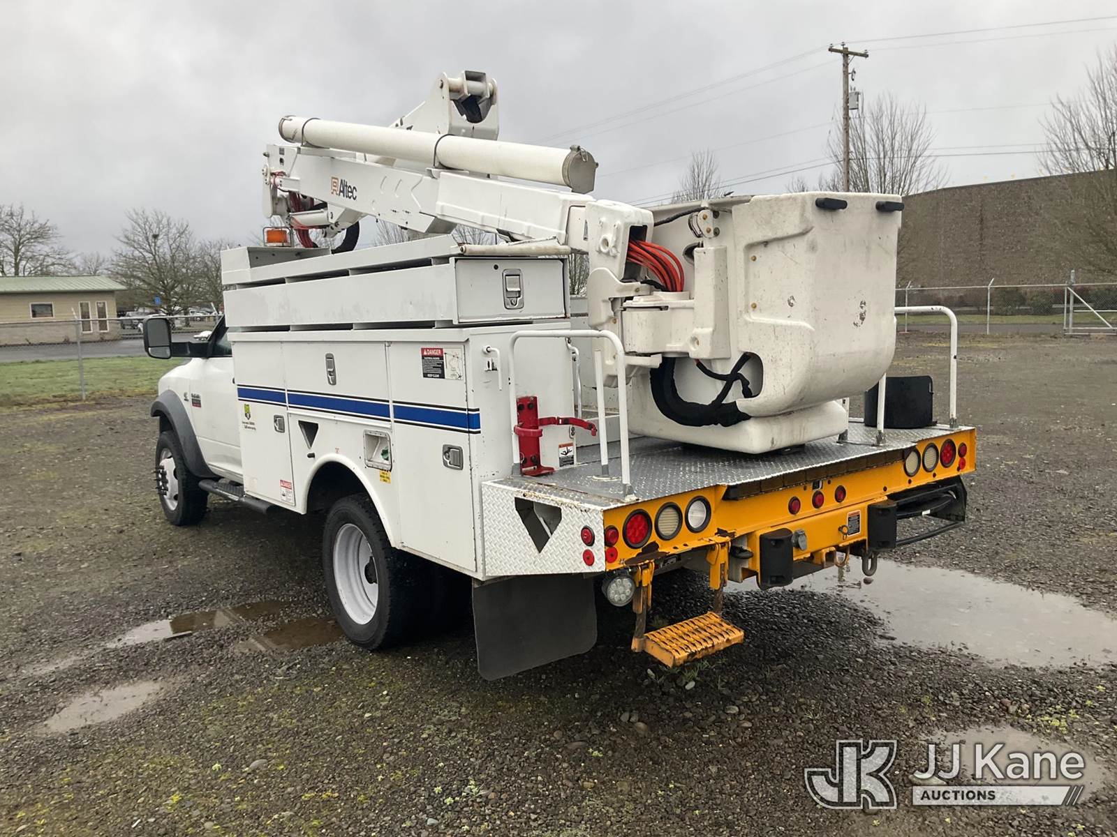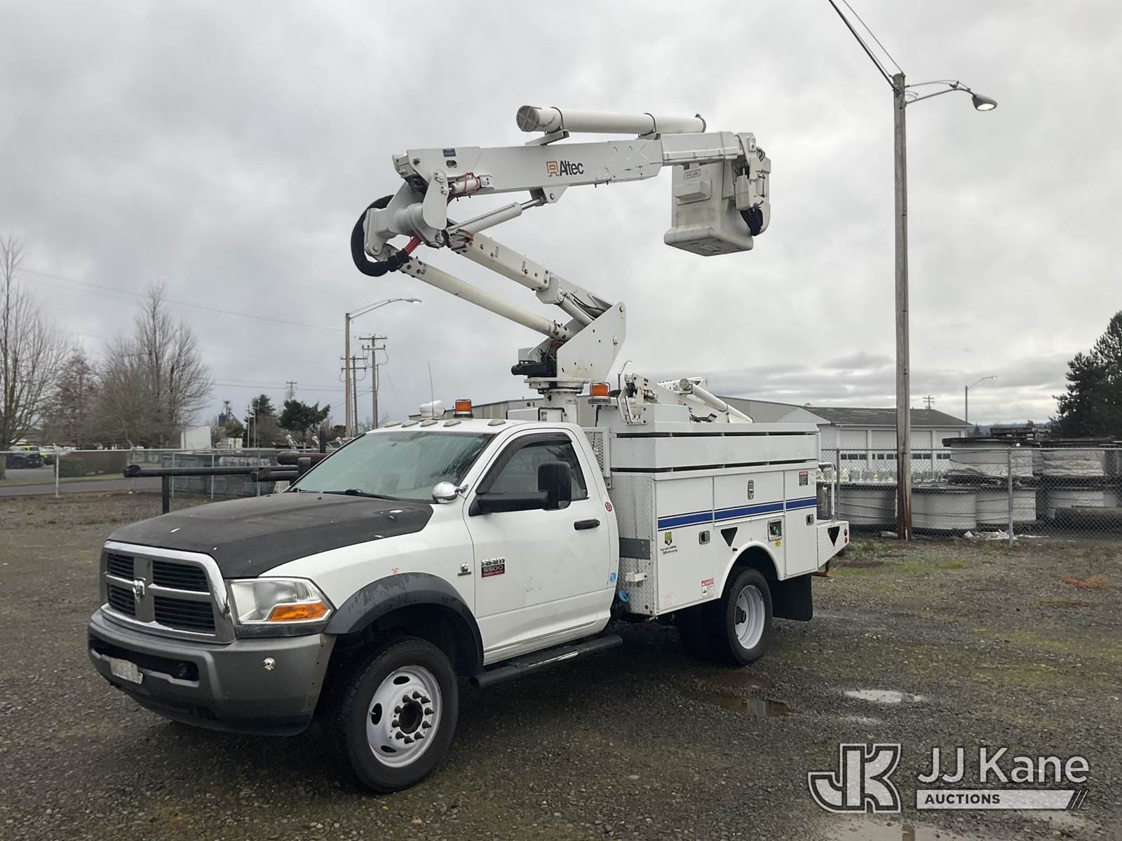 Altec AT37G, 42 ft, Articulating & Telescopic Bucket s/n 1211DE13679, with single man bucket, mounted behind cab on 2011 Dodge Ram 5500 Dual Wheel Service Truck, 6.7L diesel, 6-Speed Automatic, RWD, A/C, (270,007 miles) (Runs, Moves & Upper Operates) (Check Engine Light) ( Seller States: Boom Hoses need Replaced, A/C System Failure, PTO Cuts Out When Trying to Regen, Exhaust Filter needs Exhaust Stack) This is a Titled Item NOTE: This unit is being sold AS IS/WHERE IS via Timed Auction and is located in Albany, OR. For more information & removal arrangements please contact Joseph Hull @ (801) 386-2131. (Manuals provided in cab) (Buyer is responsible for removal. Assistance by consignor or JJ Kane Auctions is not assured.)