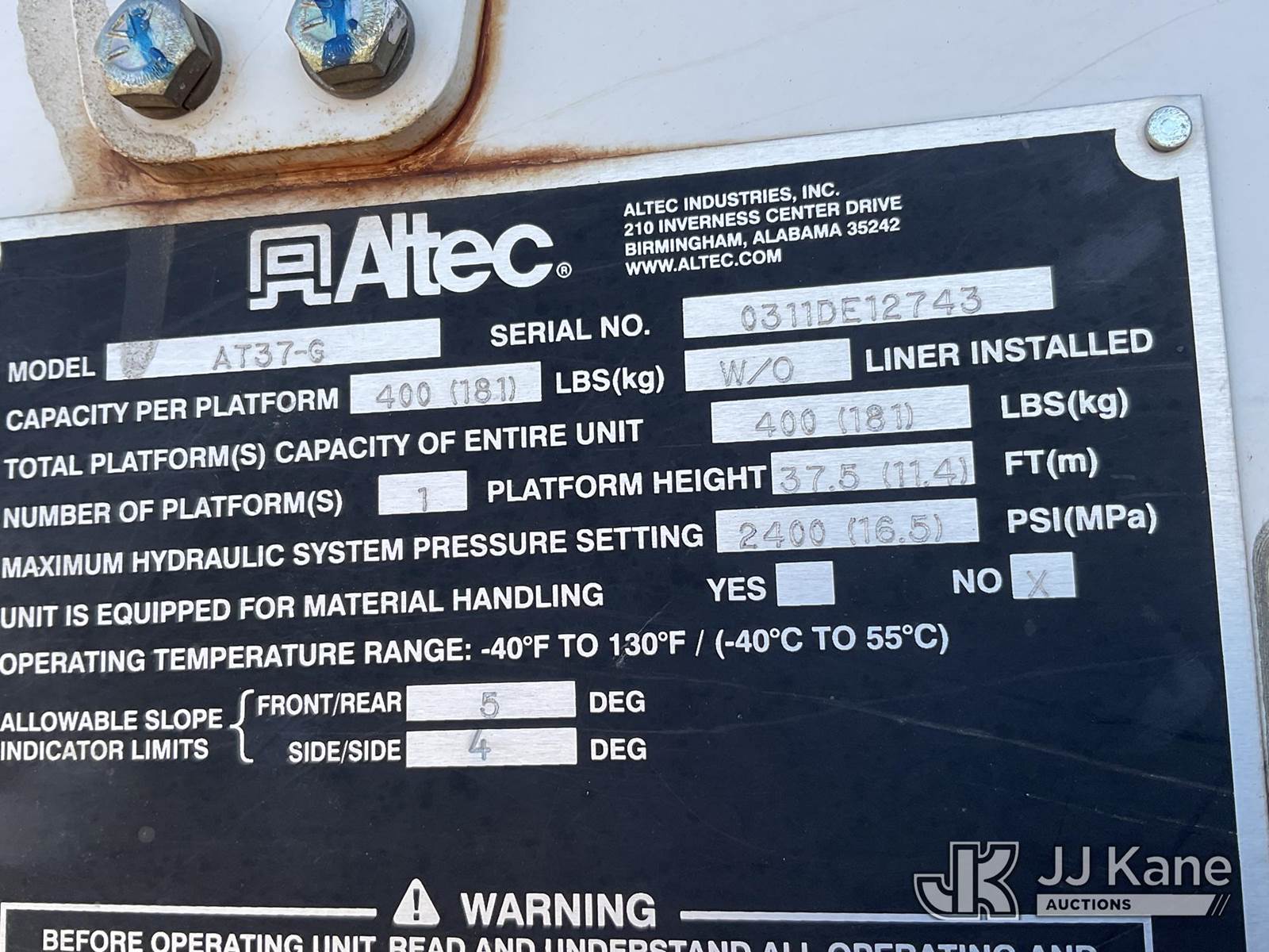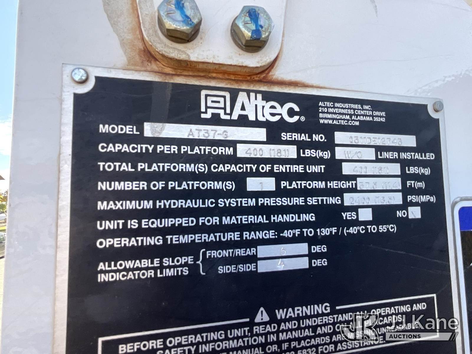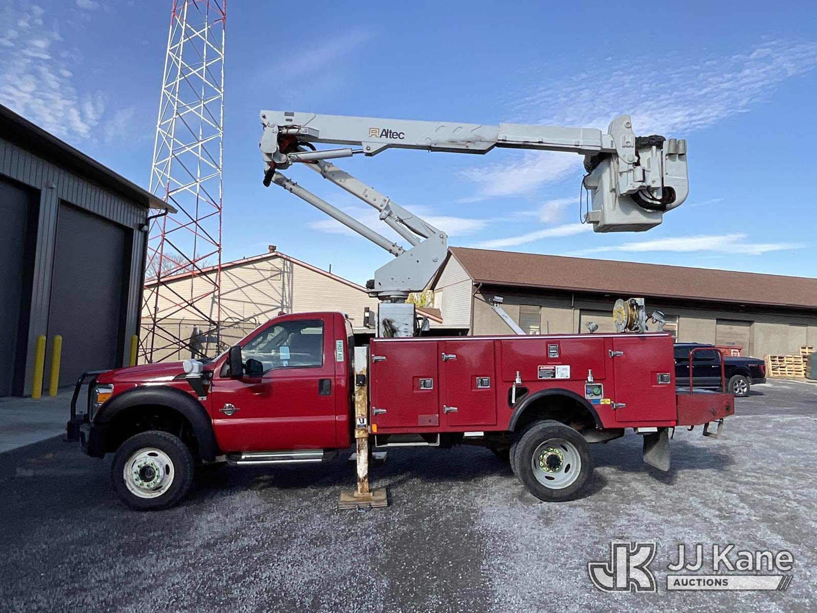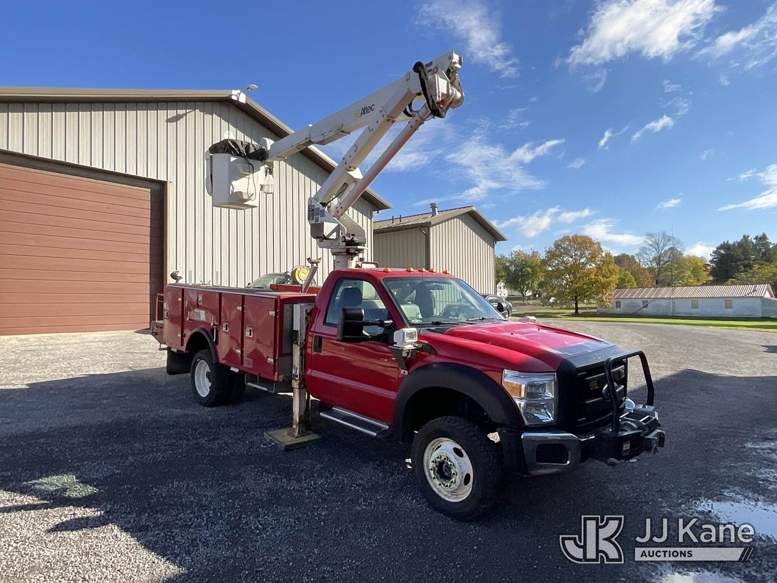 Altec AT37G, 42 ft, Articulating & Telescopic Bucket Truck s/n 0311DE12743, with single-man bucket & 2 hyd outriggers, mounted behind cab on 2011 Ford F-550 Regular Cab DRW 4WD 6.7L V8 OHV 16V DIESEL A/C, with front winch, (136,641 miles) Electric Co-op Owned Unit (Runs, Moves, Operates per videos) This is a Titled Item NOTE: This unit is being sold AS IS/WHERE IS via Timed Auction and is located in Carrollton, OH. Call Ken at (419) 295-5233 with questions. (Manuals provided in cab) (Buyer is responsible for removal. Assistance by consignor or JJ Kane Auctioneers is not assured.)