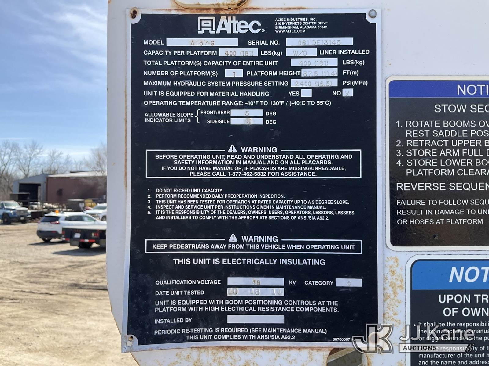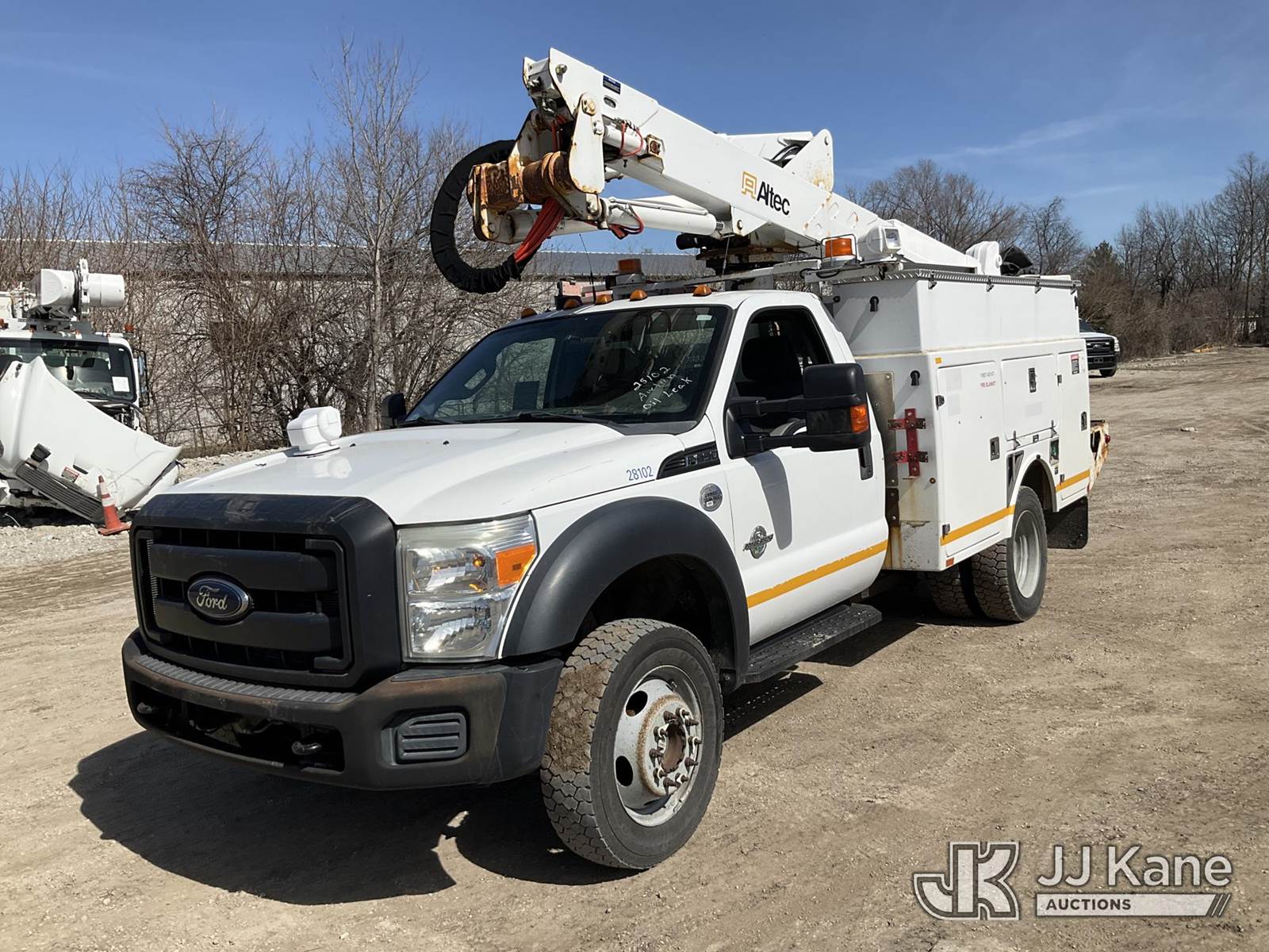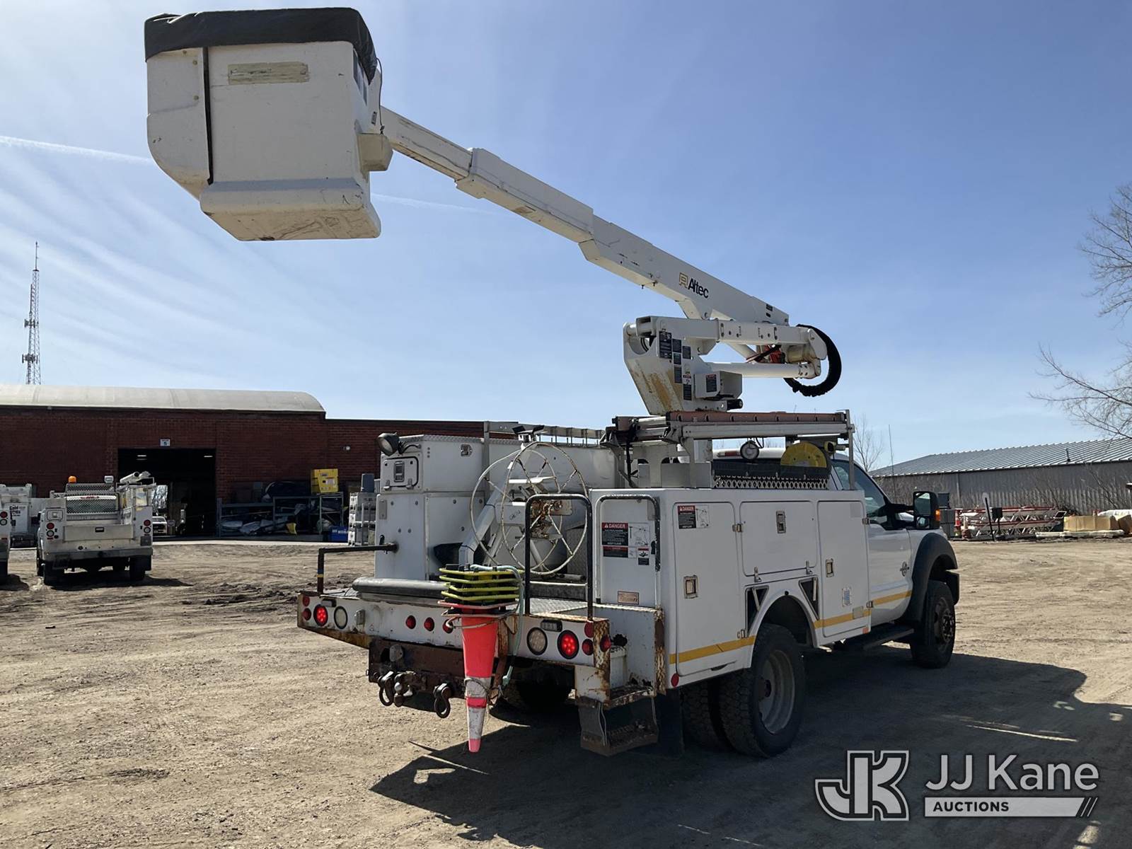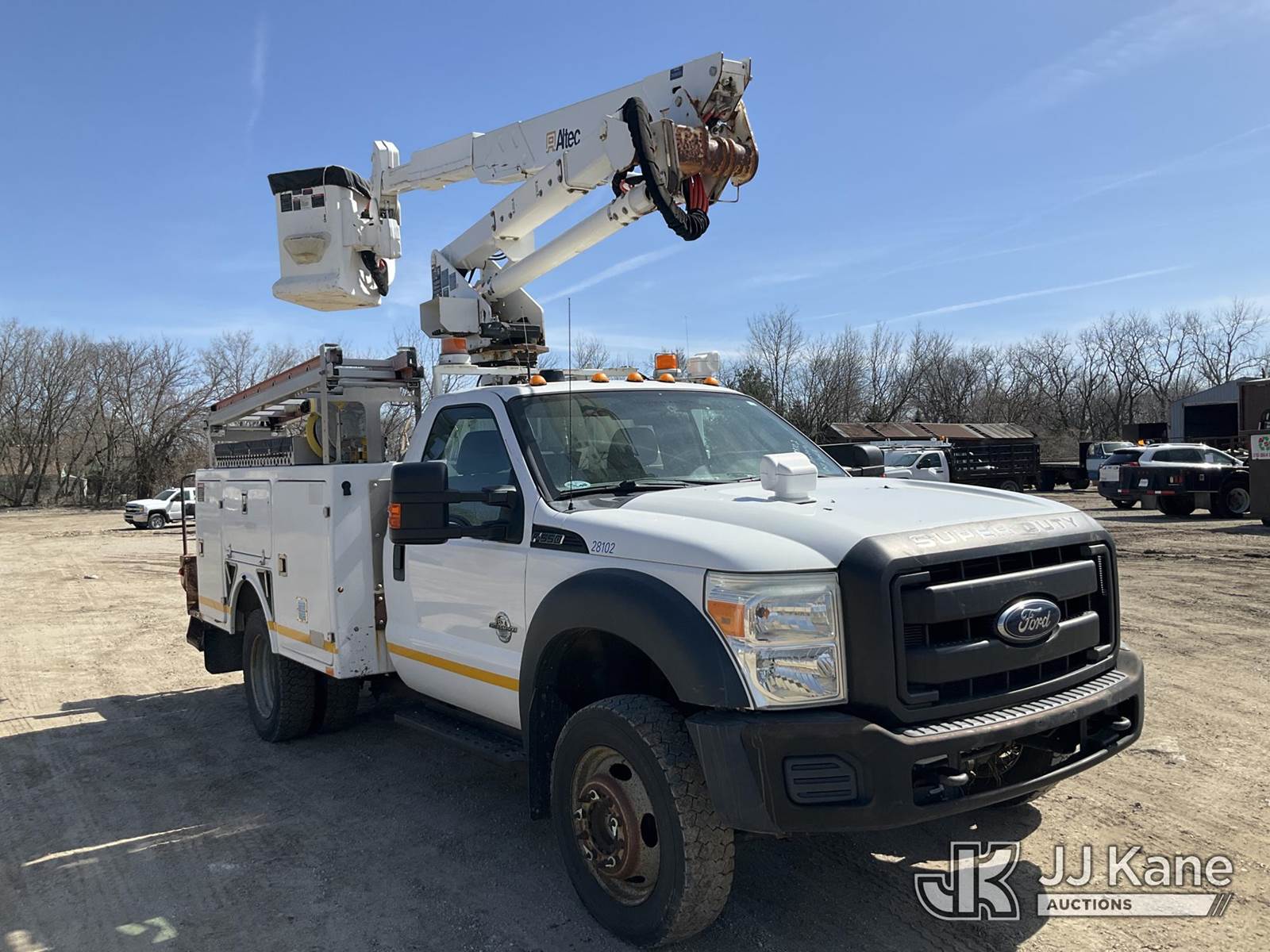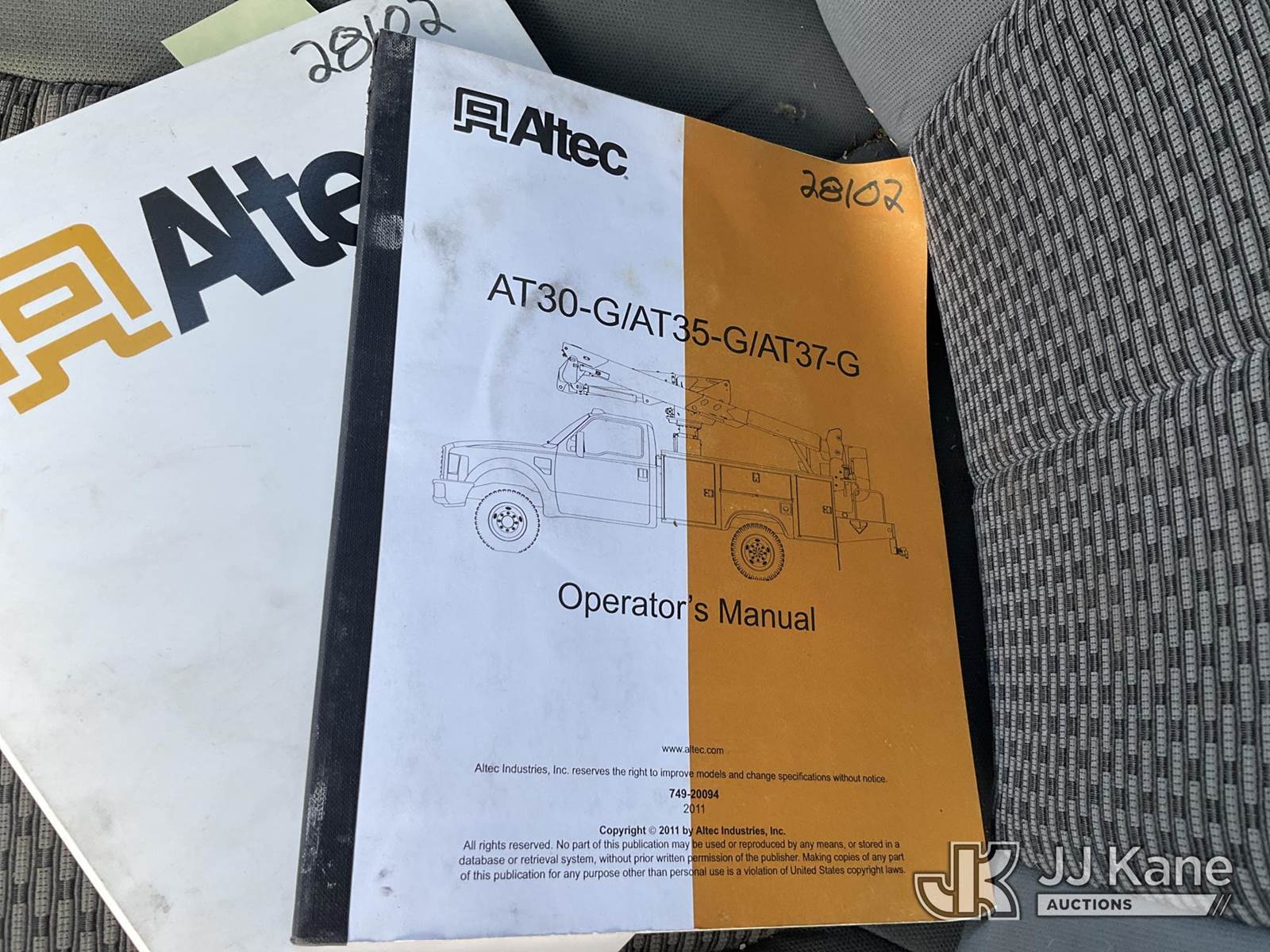 Altec AT37G, 42 ft, Articulating & Telescopic Bucket Truck s/n 0611DE13145, with single man bucket, mounted behind cab on 2011 Ford F-550 Service Truck, 6.7L diesel, 4WD, Auto, A/C, with 2563 PTO Hours, (152,740 miles) (Runs, Moves, & Upper Operates) (Reads 11,050 hours) This is a Titled Item NOTE: This unit is being sold AS IS/WHERE IS via Timed Auction and is located in Des Moines, IA. Inspection & preview days for this unit are the 2 business days prior to the first day of items closing for this auction, item is located at 1600 NE 66th Ave Des Moines, IA 50313 and hours of operations are 8a-4p. For pre-sale questions, please contact Eric Stewart @ (515) 626-0492. (Manuals provided in cab) (Buyer is responsible for removal. Assistance by consignor or JJ Kane Auctions is not assured.)