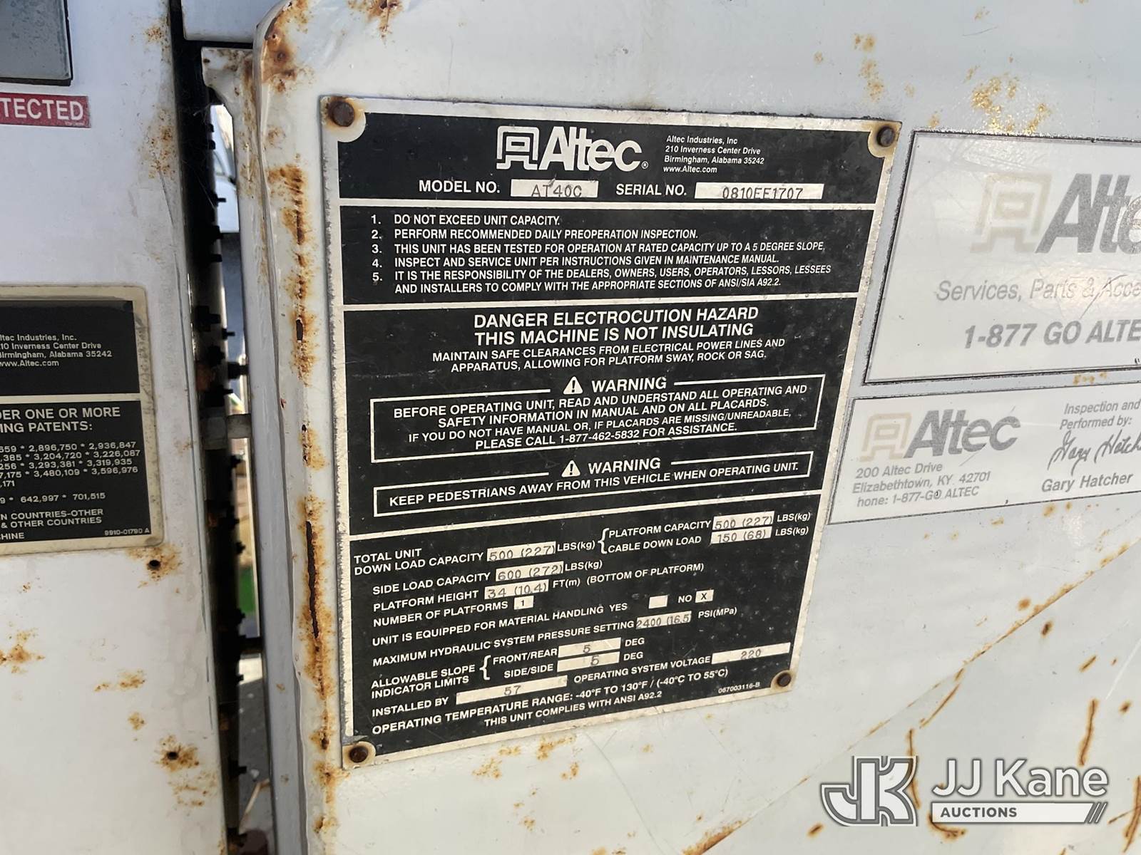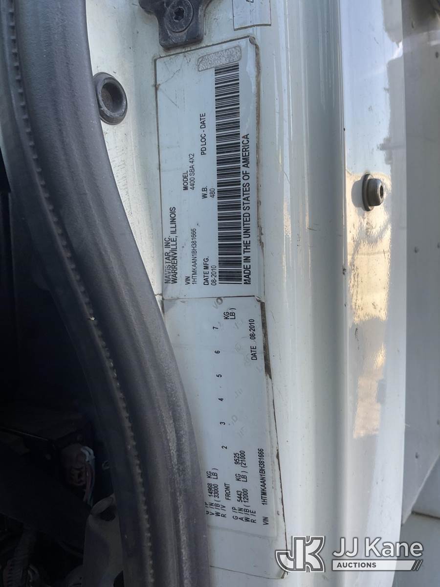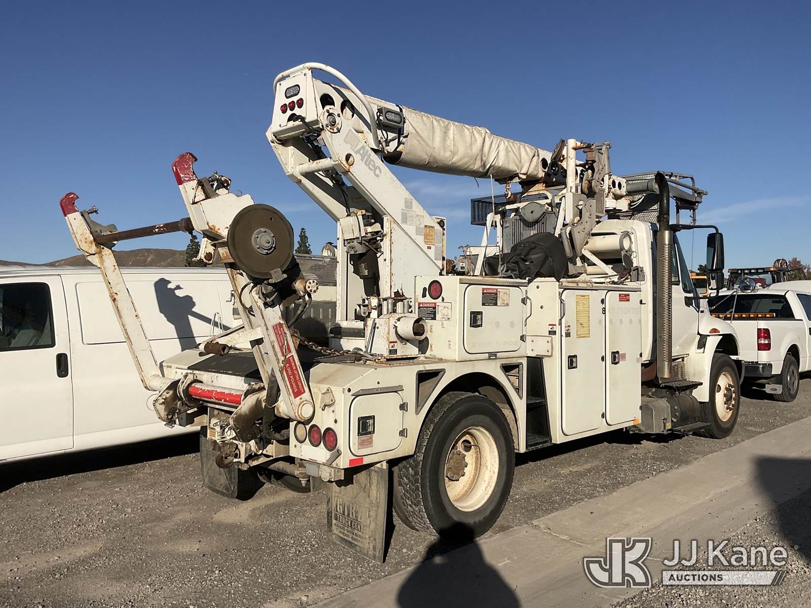 Altec AT40C, 39 ft, Articulating & Telescopic Bucket s/n 0810EF1707, with single man aluminum bucket, rear mounted on 2011 International 4400 Cable Splicing Truck, s/n 1HTMKAAN1BH381666, 7.6L L6 DIESEL Auto, 4X2, with Cable Reel & tow package, (121,747 miles) (Not Running, Condition Unknown) (Engine Turns Over, Driveshaft Disconnected) (Reads 8,857 hours) (Bidding Restricted to Licensed Vehicle Dealers Only), May be subject to ARB Regulations This is a Titled Item NOTE: This unit is being sold AS IS/WHERE IS via Timed Auction and is located in Jurupa Valley, CA. Inspection & preview days for this unit are the 2 business days prior to the first day of items closing for this auction, item is located at 4510 Muth Way Jurupa Valley, CA 92509 and hours of operations are 8a-4p. For pre-sale questions, please contact please contact Office Staff @ (310) 353-7140. Dealer License Number 45696. (Manuals provided in cab) (Buyer is responsible for removal. Assistance by consignor or JJ Kane Auctions is not assured.)