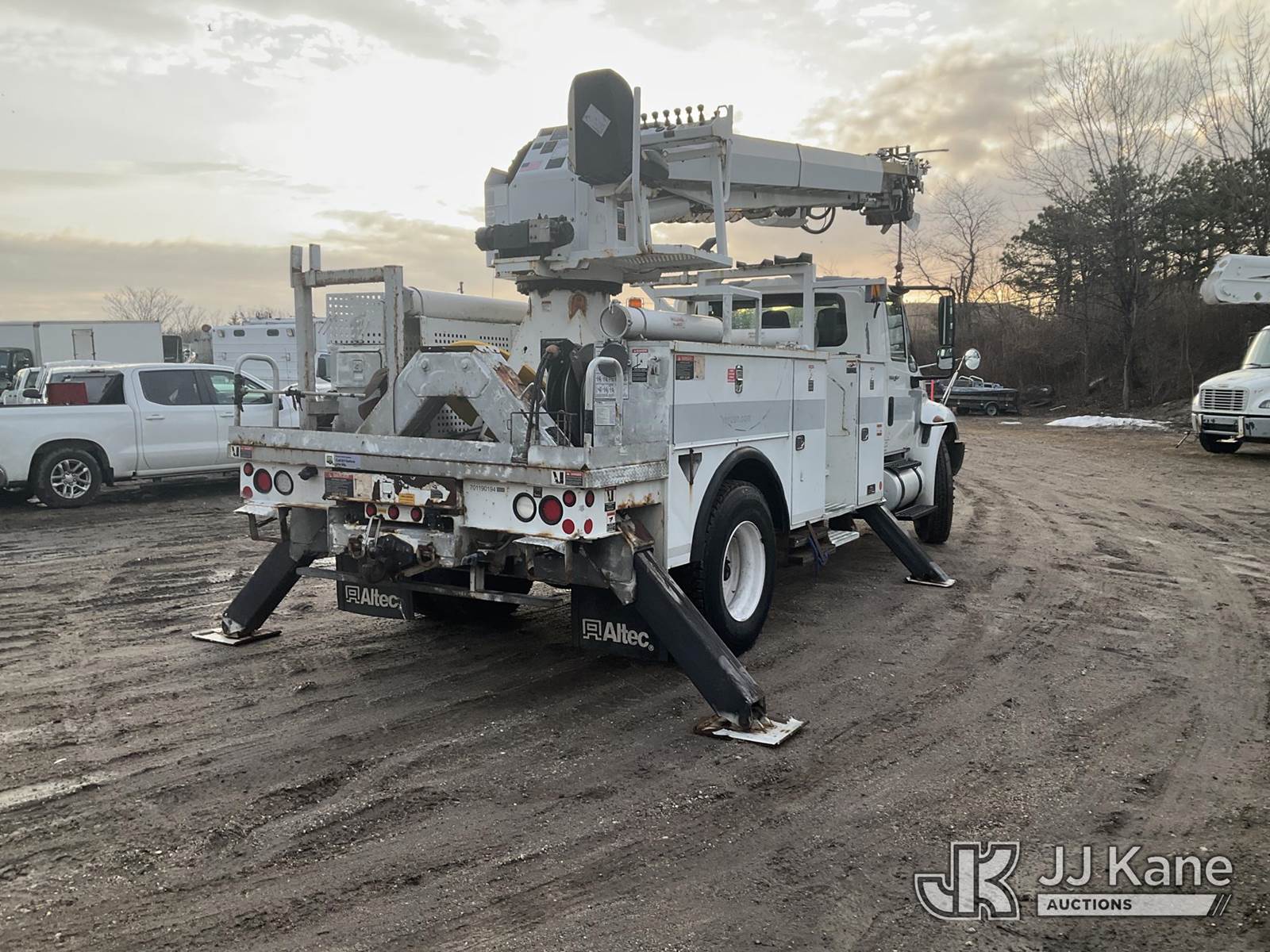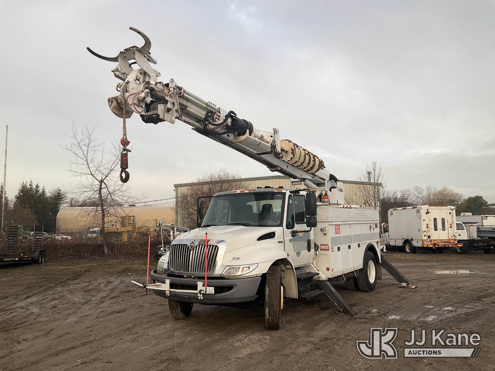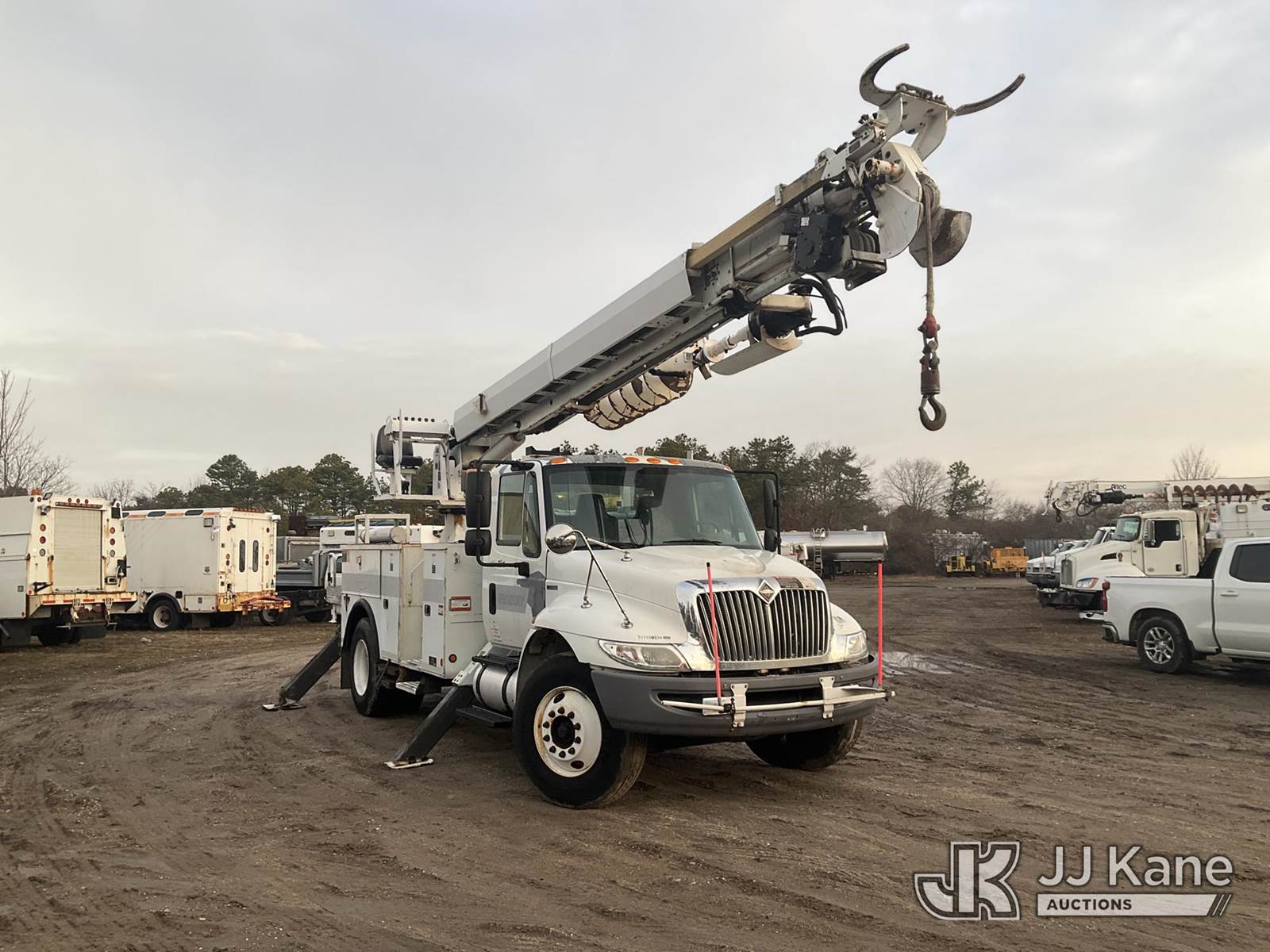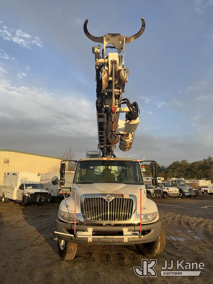 Altec DM47-BR, 17,730 Lb Digger Derrick s/n 0310DV4460, with 47 ft sheave height, 3-section boom, 2 spd digger, pole grabs, heel winch, riding console & 4 outriggers, rear mounted on 2011 International 4300 Utility Truck, MaxxForce 7.6L diesel, Auto, A/C, (79,390 miles) (Runs, Moves & Upper Operates (Removal is by Appointment Only, Buyer MUST make a appointment prior to picking up, Buyer/Transporter Must have PAID IN FULL RELEASE. No onsite assistance available, Please Come prepared.) This is a Titled Item NOTE: This unit is being sold AS IS/WHERE IS via Timed Auction and is located in Bellport, NY. Inspection & preview days for this unit are by appointment only; please contact us at contact@jjkane.com or 84-Go-JJKane for more details. (Missing manuals, See Auction Company for Manufacturers Information to obtain manuals) (Buyer is responsible for removal. Assistance by consignor or JJ Kane Auctions is not assured.)