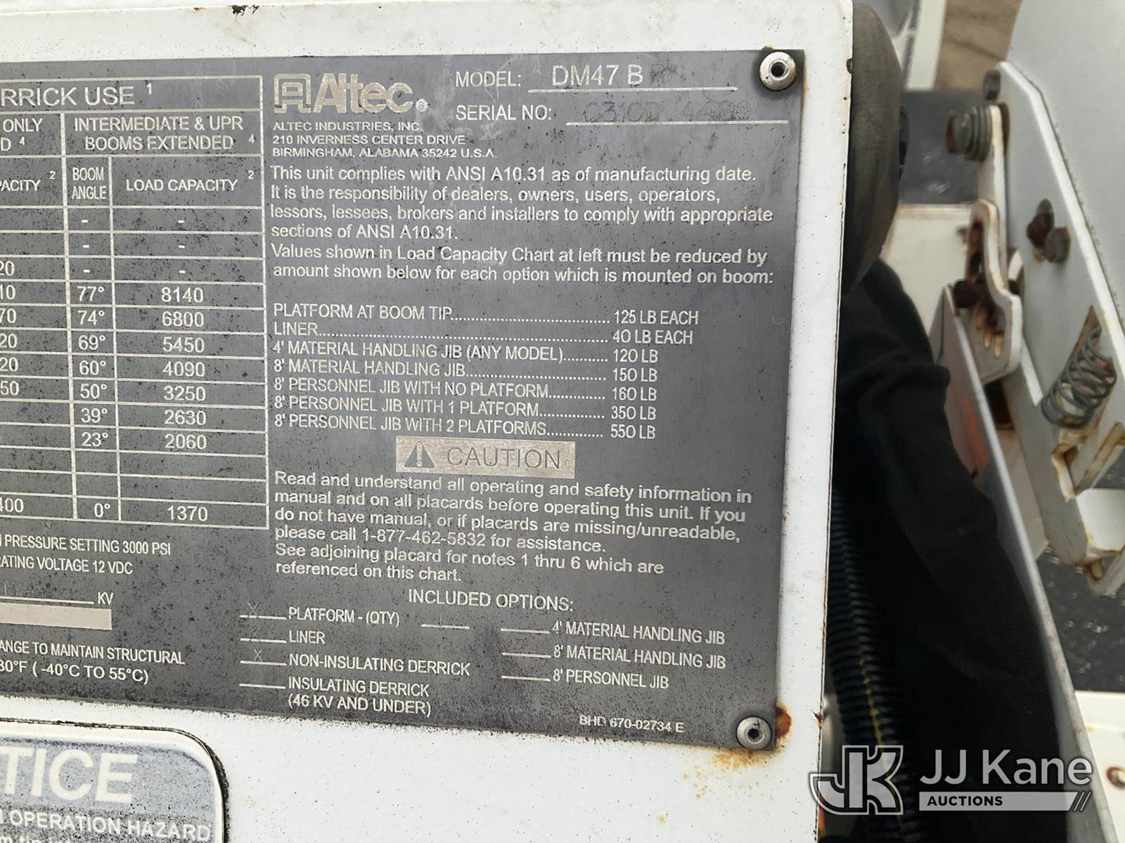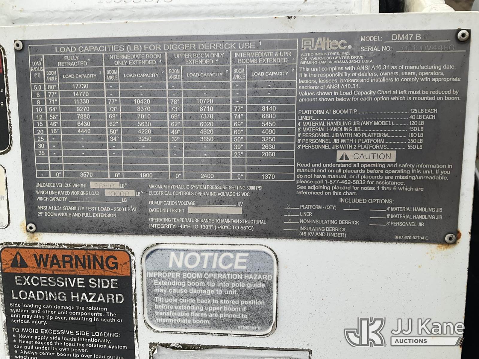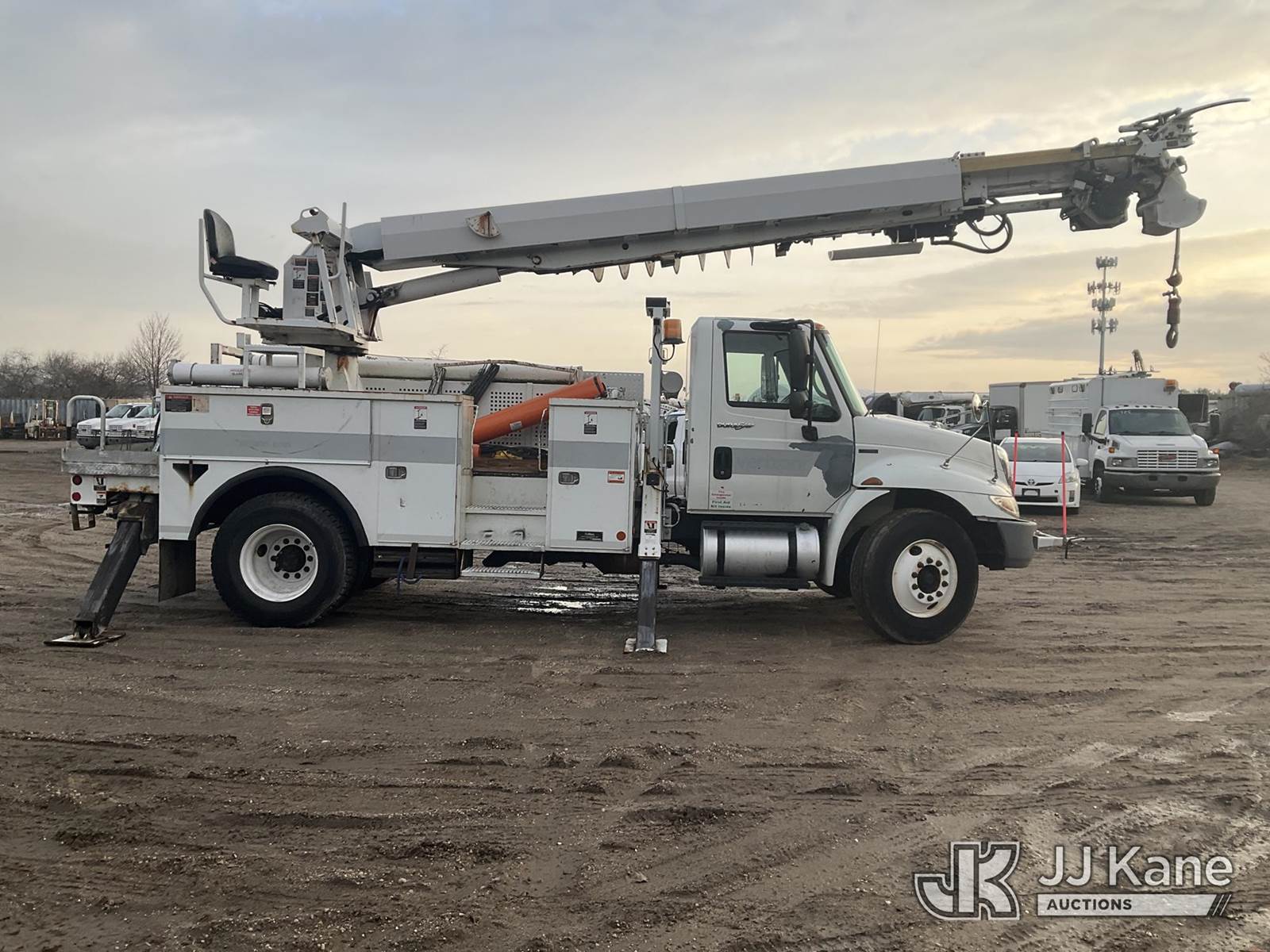 Altec DM47-BR, 17,730 Lb Digger Derrick s/n 0310DV4460, with 47 ft sheave height, 3-section boom, 2 spd digger, pole grabs, heel winch, riding console & 4 outriggers, rear mounted on 2011 International 4300 Utility Truck, MaxxForce 7.6L diesel, Auto, A/C, (79,390 miles) (Runs, Moves & Upper Operates (Removal is by Appointment Only, Buyer MUST make a appointment prior to picking up, Buyer/Transporter Must have PAID IN FULL RELEASE. No onsite assistance available, Please Come prepared.) This is a Titled Item NOTE: This unit is being sold AS IS/WHERE IS via Timed Auction and is located in Bellport, NY. Inspection & preview days for this unit are by appointment only; please contact us at contact@jjkane.com or 84-Go-JJKane for more details. (Missing manuals, See Auction Company for Manufacturers Information to obtain manuals) (Buyer is responsible for removal. Assistance by consignor or JJ Kane Auctions is not assured.)