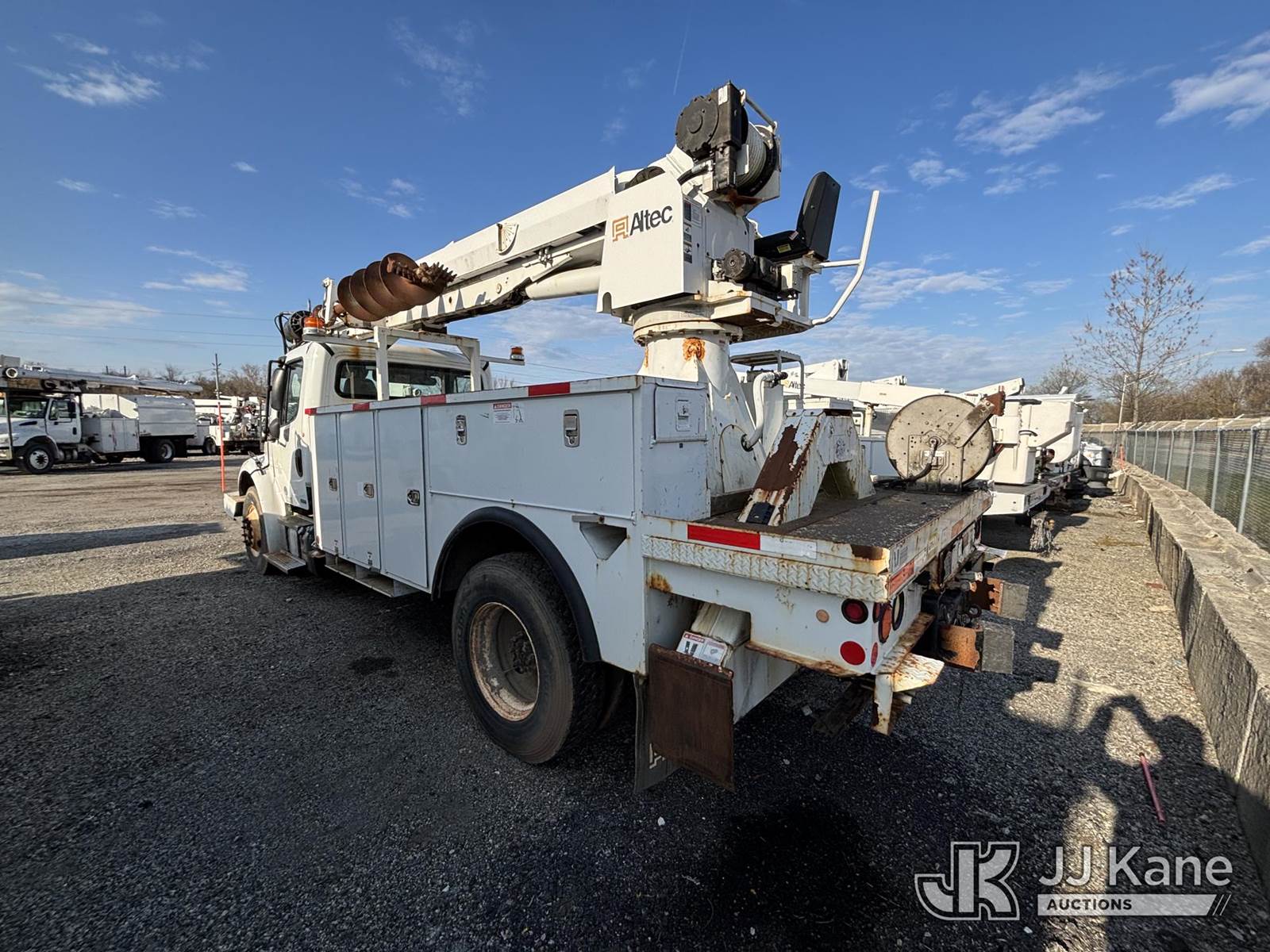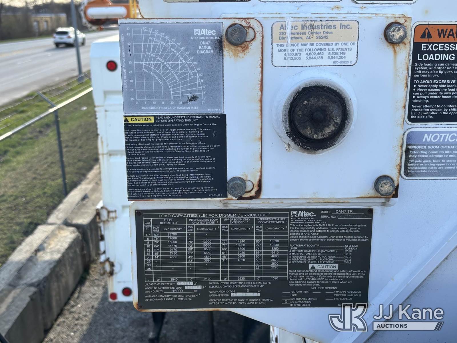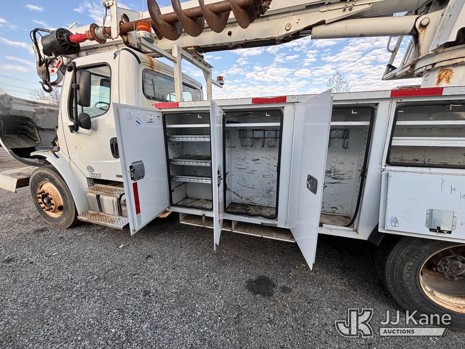 Altec DM47-TR, 23,790 Lb Digger Derrick s/n 0111DV4912, with 47ft Sheave Height, 3-Section Boom, 2 Spd. Digger, Pole Grabs, Heel Winch, Riding Console & 4 Outriggers, rear mounted on 2011 Freightliner M2 106 Utility Truck, 6.7L diesel, Auto, A/C, with Front Bumper Winch, (57,053 miles) (Not Running Condition Unknown Upper Condition Unknown, Drive Shaft Out, Must Tow, Buyer Must Load) This is a Titled Item NOTE: This unit is being sold AS IS/WHERE IS via Timed Auction and is located in Plymouth Meeting, PA. Inspection & preview days for this unit are the 2 business days prior to the first day of items closing for this auction, item is located at 1402 Conshohocken Rd Plymouth Meeting, PA 19462 and hours of operations are 8a-4p. For pre-sale questions, please contact Bruce Thomas @ (267) 887-0392 or bruce.thomas.jr@jjkane.com. (Manuals provided in cab) (Buyer is responsible for removal. Assistance by consignor or JJ Kane Auctions is not assured.)