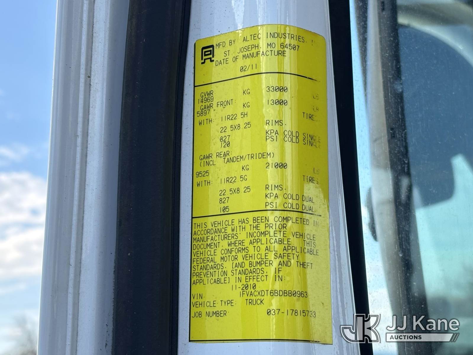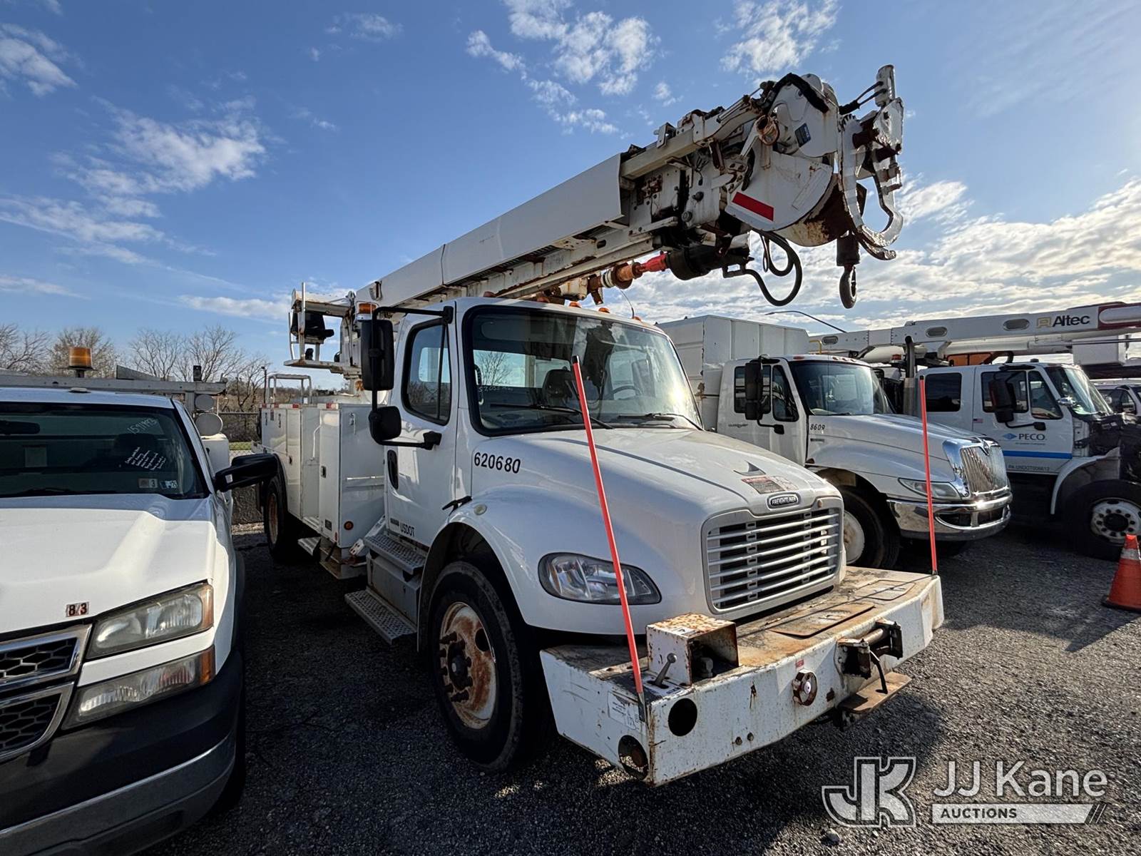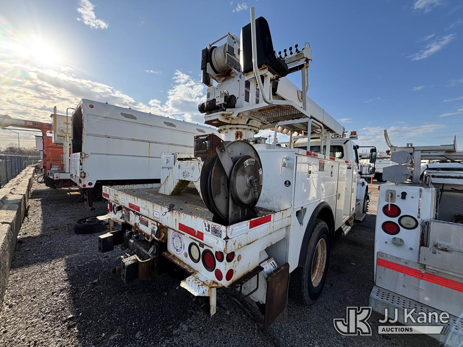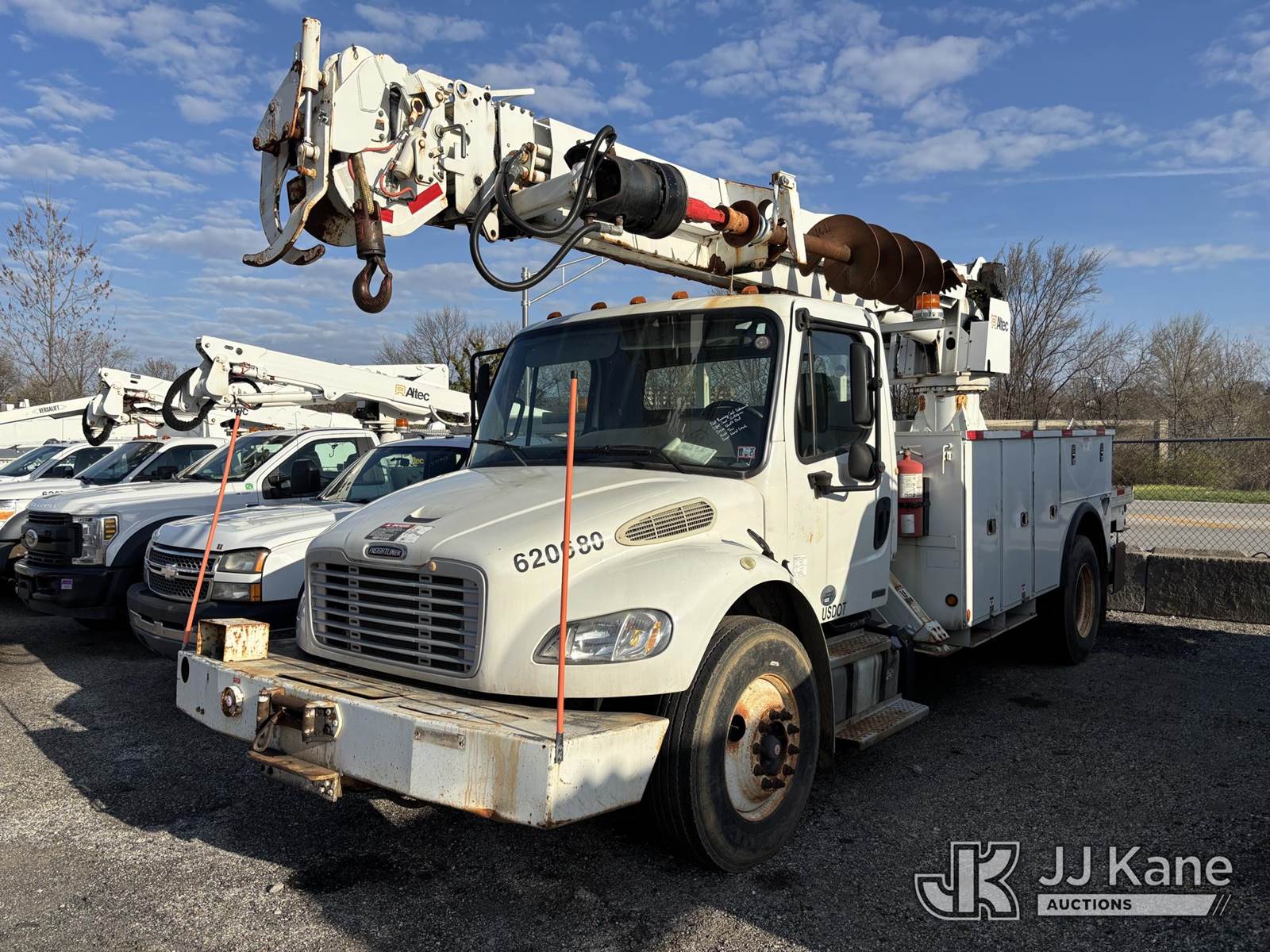 Altec DM47-TR, 23,790 Lb Digger Derrick s/n 0111DV4912, with 47ft Sheave Height, 3-Section Boom, 2 Spd. Digger, Pole Grabs, Heel Winch, Riding Console & 4 Outriggers, rear mounted on 2011 Freightliner M2 106 Utility Truck, 6.7L diesel, Auto, A/C, with Front Bumper Winch, (57,053 miles) (Not Running Condition Unknown Upper Condition Unknown, Drive Shaft Out, Must Tow, Buyer Must Load) This is a Titled Item NOTE: This unit is being sold AS IS/WHERE IS via Timed Auction and is located in Plymouth Meeting, PA. Inspection & preview days for this unit are the 2 business days prior to the first day of items closing for this auction, item is located at 1402 Conshohocken Rd Plymouth Meeting, PA 19462 and hours of operations are 8a-4p. For pre-sale questions, please contact Bruce Thomas @ (267) 887-0392 or bruce.thomas.jr@jjkane.com. (Manuals provided in cab) (Buyer is responsible for removal. Assistance by consignor or JJ Kane Auctions is not assured.)