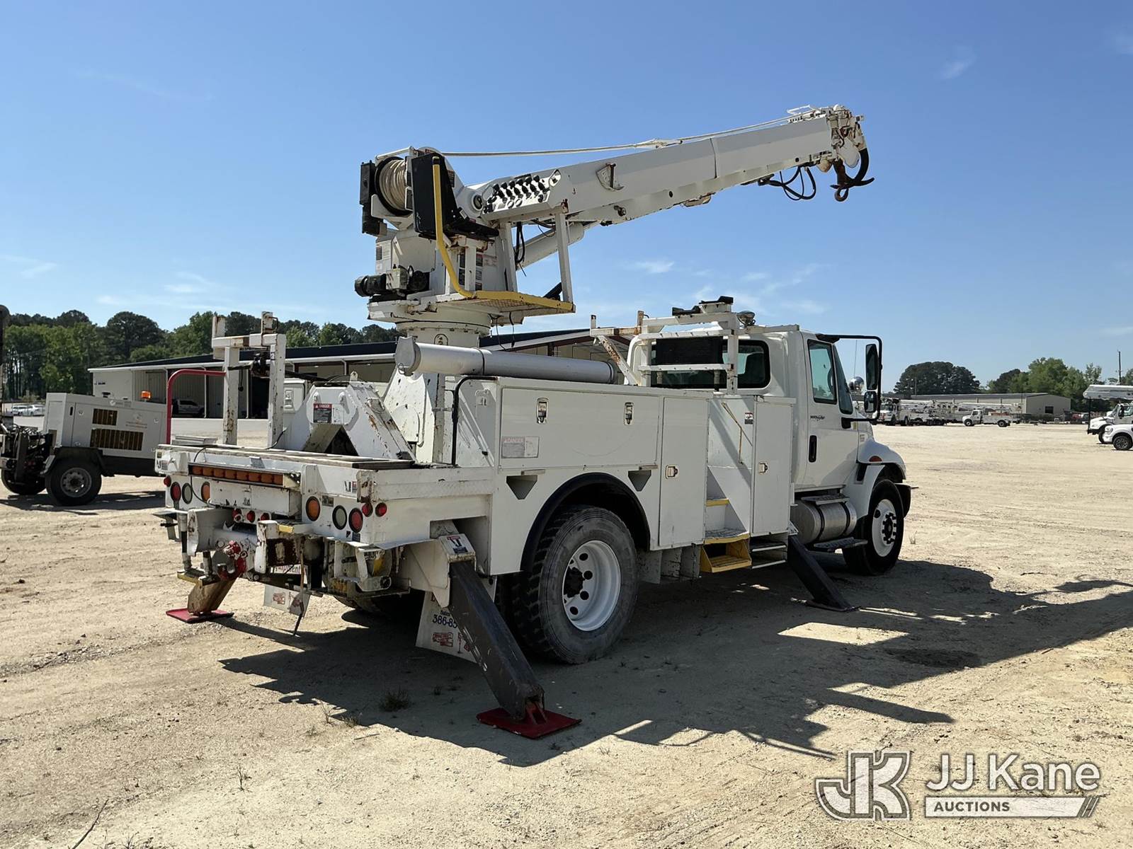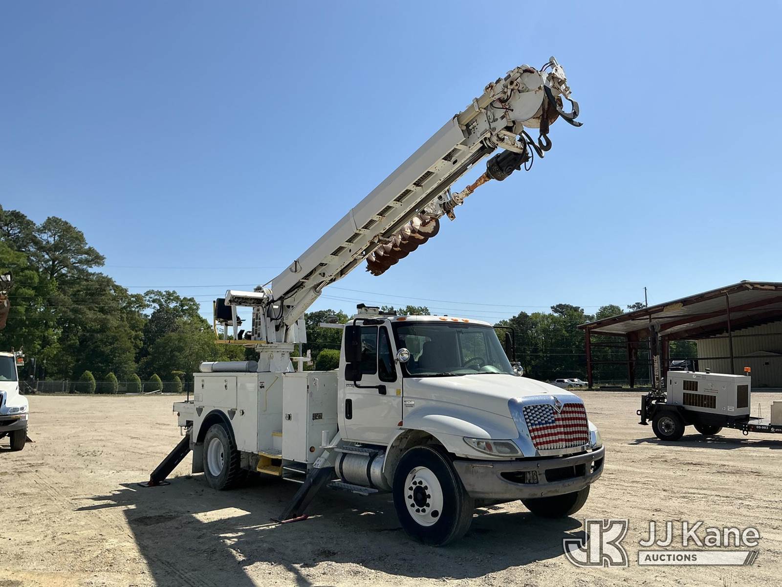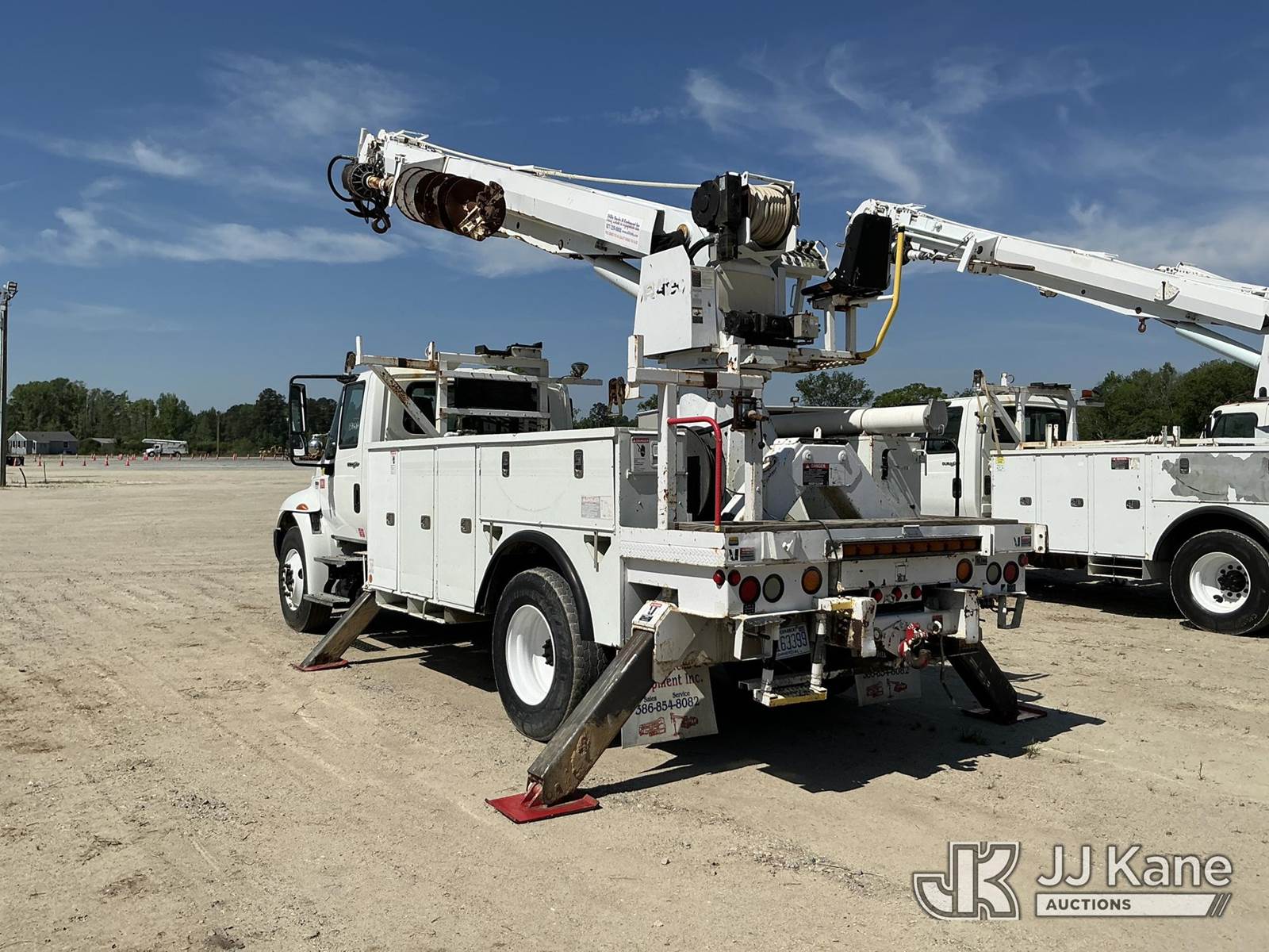 Altec DM47-TR, 23,790 Lb Digger Derrick s/n 0310DV4464, with 47 ft. sheave height, 3 section hydraulic boom, pole guides, heel winch, two speed auger, riding console & 4 hydraulic outriggers, rear mounted on 2011 International 4300 Utility Truck, MaxxForce 7.6L diesel, Auto, A/C, (165,097 miles) (Runs, Moves, Upper Operates) This is a Titled Item NOTE: This unit is being sold AS IS/WHERE IS via Timed Auction and is located in Fayetteville, NC. For more information & removal arrangements please contact Pete Klimek @ 843-323-6538. (Manuals provided in cab) (Buyer is responsible for removal. Assistance by consignor or JJ Kane Auctions is not assured.)