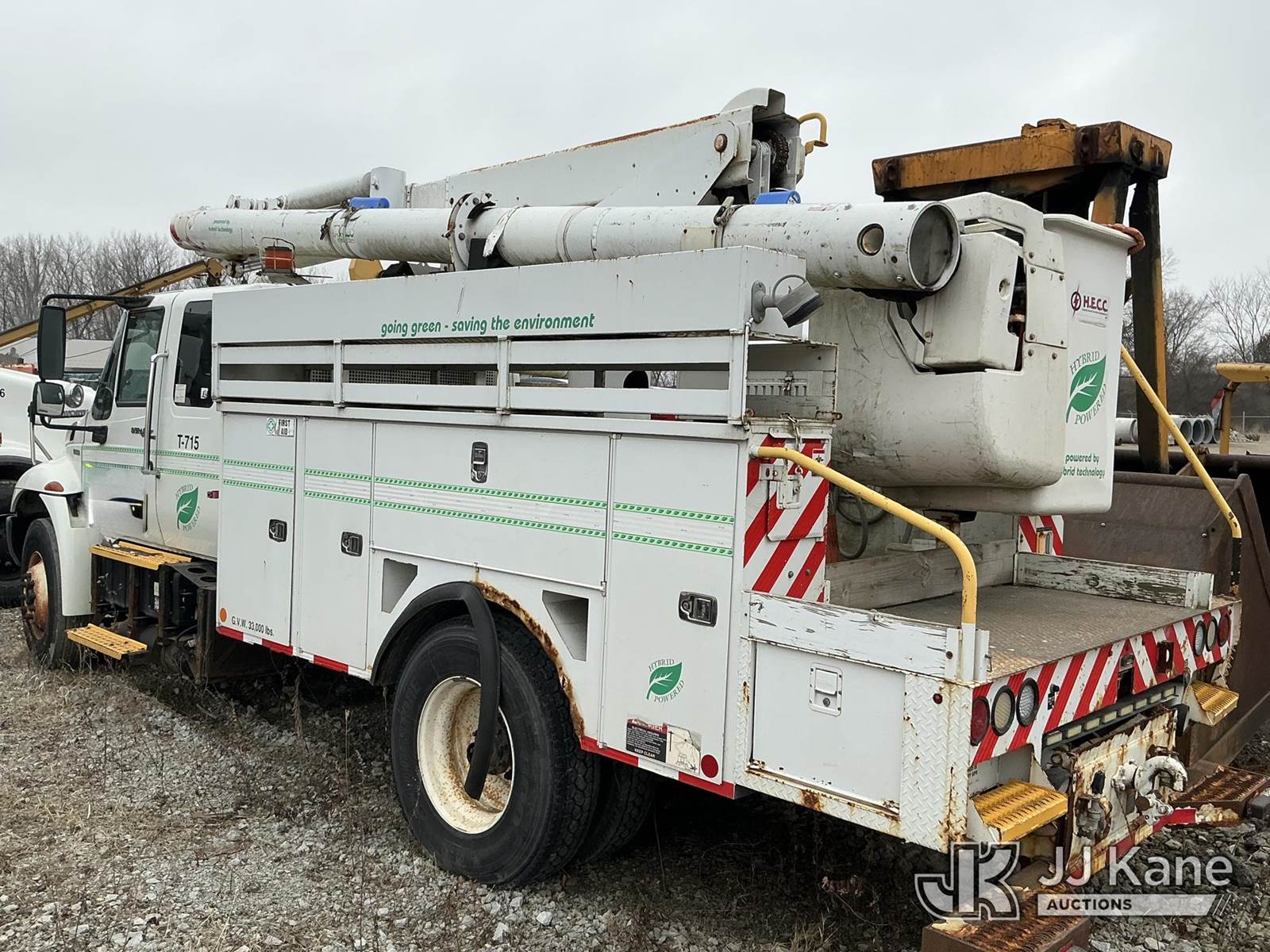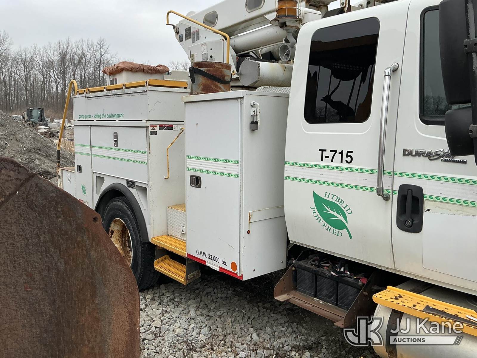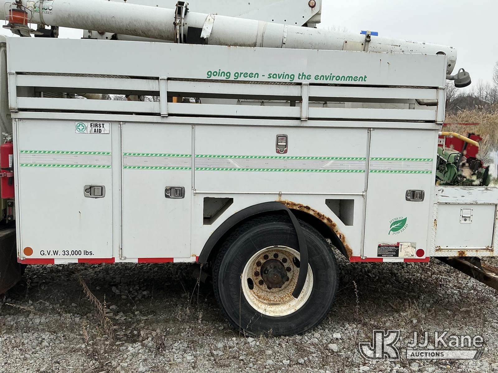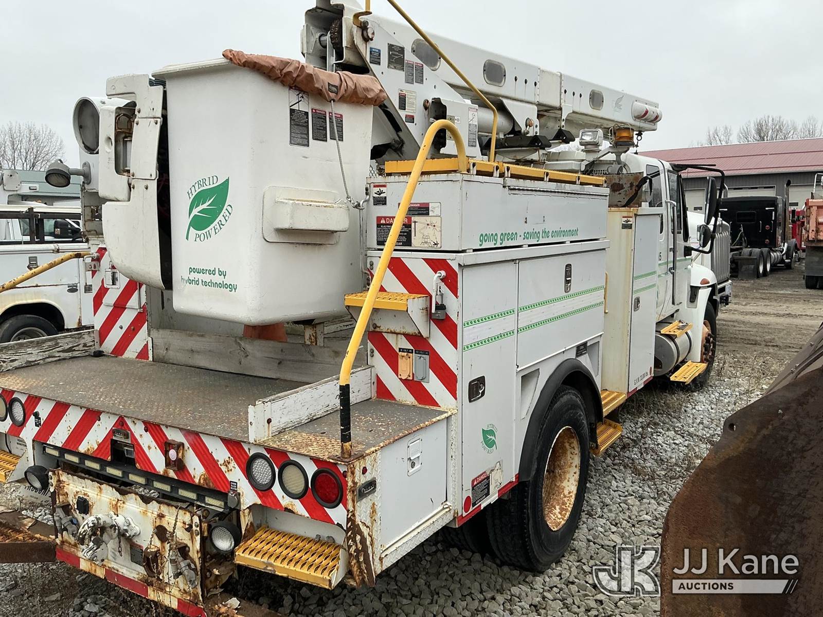 Altec L42P, 47 ft, Over-Center Bucket Truck s/n 0610DR0101, with single-man bucket & 2 hyd outriggers, rear mounted on 2011 International 4300 Extended-Cab Utility Truck, Maxxforce DT Diesel, 4X2, Auto, A/C, (100,218 miles) Hybrid Power System (Runs & Moves, Check Engine Light On) (Seller states this item has been removed from service: Upper Condition Unknown - Requires ANSI Inspection for repair/replacement requirements. The manufacturer has notified JJ Kane that this equipment is subject to an open recall. CSN 3090 Hydraulic Hose Replacement — Compliance A92.2 The equipment should not be operated until this is addressed. Buyer is responsible for reviewing the recall notice and contacting the manufacturer to schedule the recommended corrective actions. Associated costs may be covered by the manufacturer in some cases.) This is a Titled Item NOTE: This unit is being sold AS IS/WHERE IS via Timed Auction and is located in Schererville, IN. Inspection & preview days for this unit are by appointment only; please contact us at contact@jjkane.com or 84-Go-JJKane for more details. (Missing manuals, See Auction Company for Manufacturers Information to obtain manuals) (Buyer is responsible for removal. Assistance by consignor or JJ Kane Auctions is not assured.)