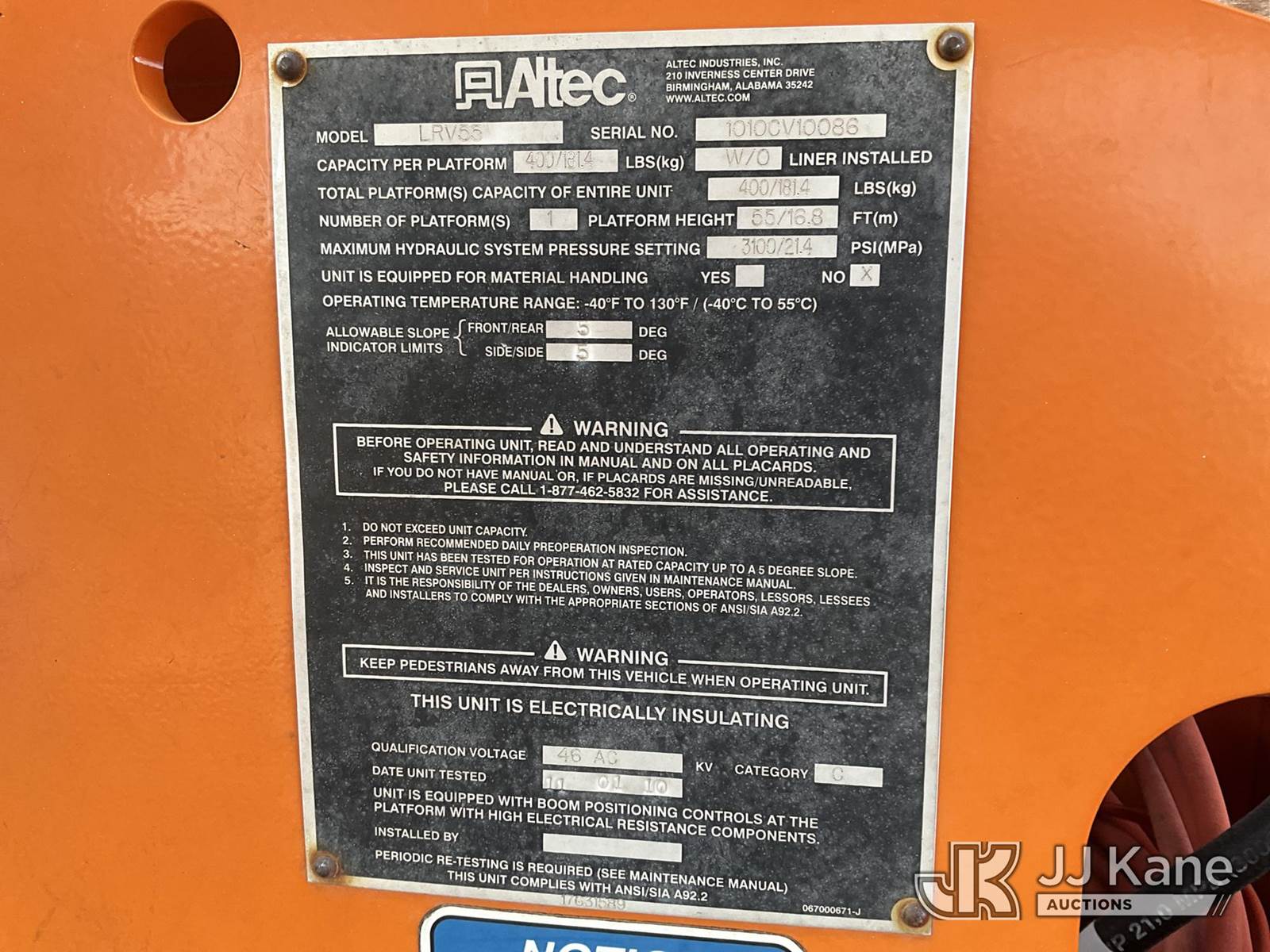 Altec LRV 55, 60 ft, Over-Center Bucket Truck s/n 1010CV10086, with Two Outriggers, Single-Man Bucket, rear mounted on 2011 Freightliner M2 106 Chipper Dump Truck, 6.7L L6 DIESEL manual, 4X2, (114,077 miles) (Not Running, Condition Unknown, Upper Condition Unknown) (Will Not Crank Over, Has Starter/Electrical Issue, Has Power, Seller States: Missing Brake Parts And Has A Bent Push Rod) This is a Titled Item NOTE: This unit is being sold AS IS/WHERE IS via Timed Auction and is located in Joplin, MO. Inspection & preview days for this unit are by appointment only; please contact us at contact@jjkane.com or 84-Go-JJKane for more details. (Missing manuals, See Auction Company for Manufacturers Information to obtain manuals) (Buyer is responsible for removal. Assistance by consignor or JJ Kane Auctioneers is not assured.)