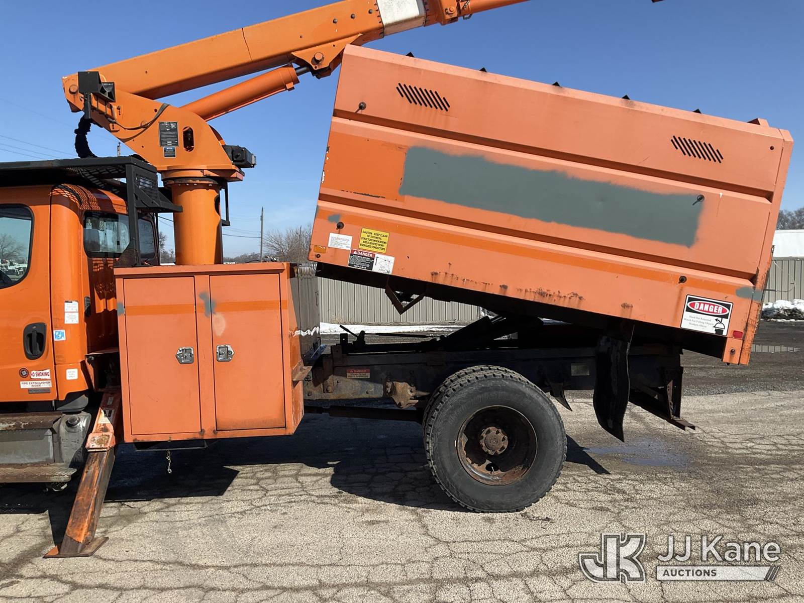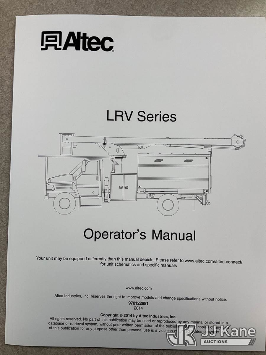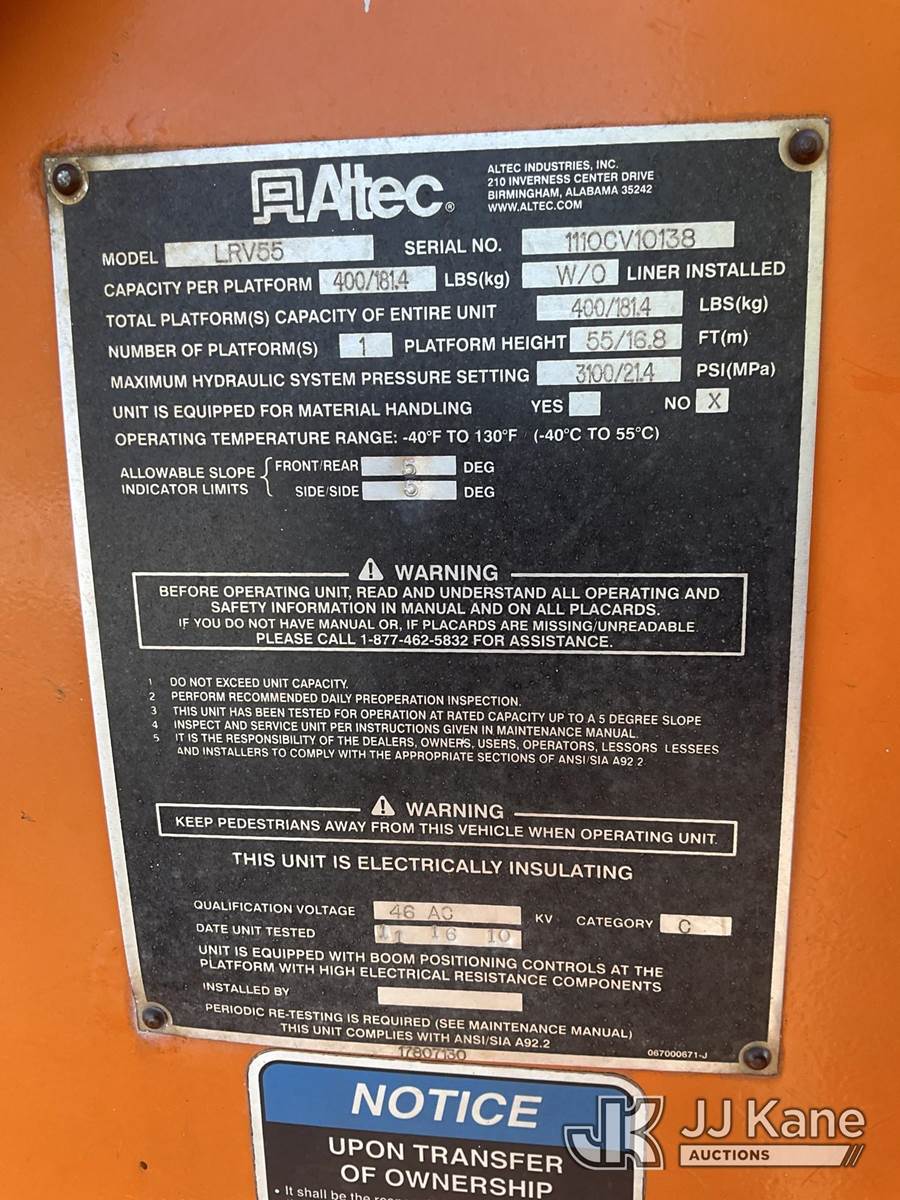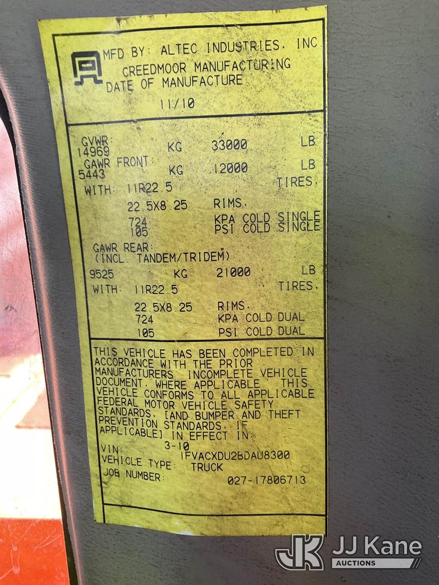 Altec LRV55, 60 ft, Over-Center Bucket Truck s/n 1110CV10138, with Single-Man Bucket, mounted behind cab on 2011 Freightliner M2 106 Chipper Dump Truck, 6.7L L6 DIESEL 4X2, manual, (112,420 miles) (Runs, Moves, Dump & Aerial Operates) (Engine Protect Light On) (Seller States-Bad EGR and bad turbo) (Reads 20,190 hours) This is a Titled Item NOTE: This unit is being sold AS IS/WHERE IS via Timed Auction and is located in South Beloit, IL. Inspection & preview days for this unit are the 2 business days prior to the first day of items closing for this auction, item is located at 14354 Dearborn Ave South Beloit, IL and hours of operations are 8a-4p. For pre-sale questions, please contact Derek Eklund at (608) 904-0618 or (derek.eklund@jjkane.com). (Missing manuals, See Auction Company for Manufacturers Information to obtain manuals) (Buyer is responsible for removal. Assistance by consignor or JJ Kane Auctions is not assured.)