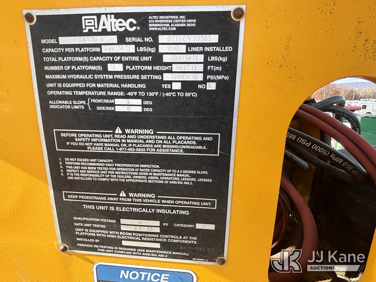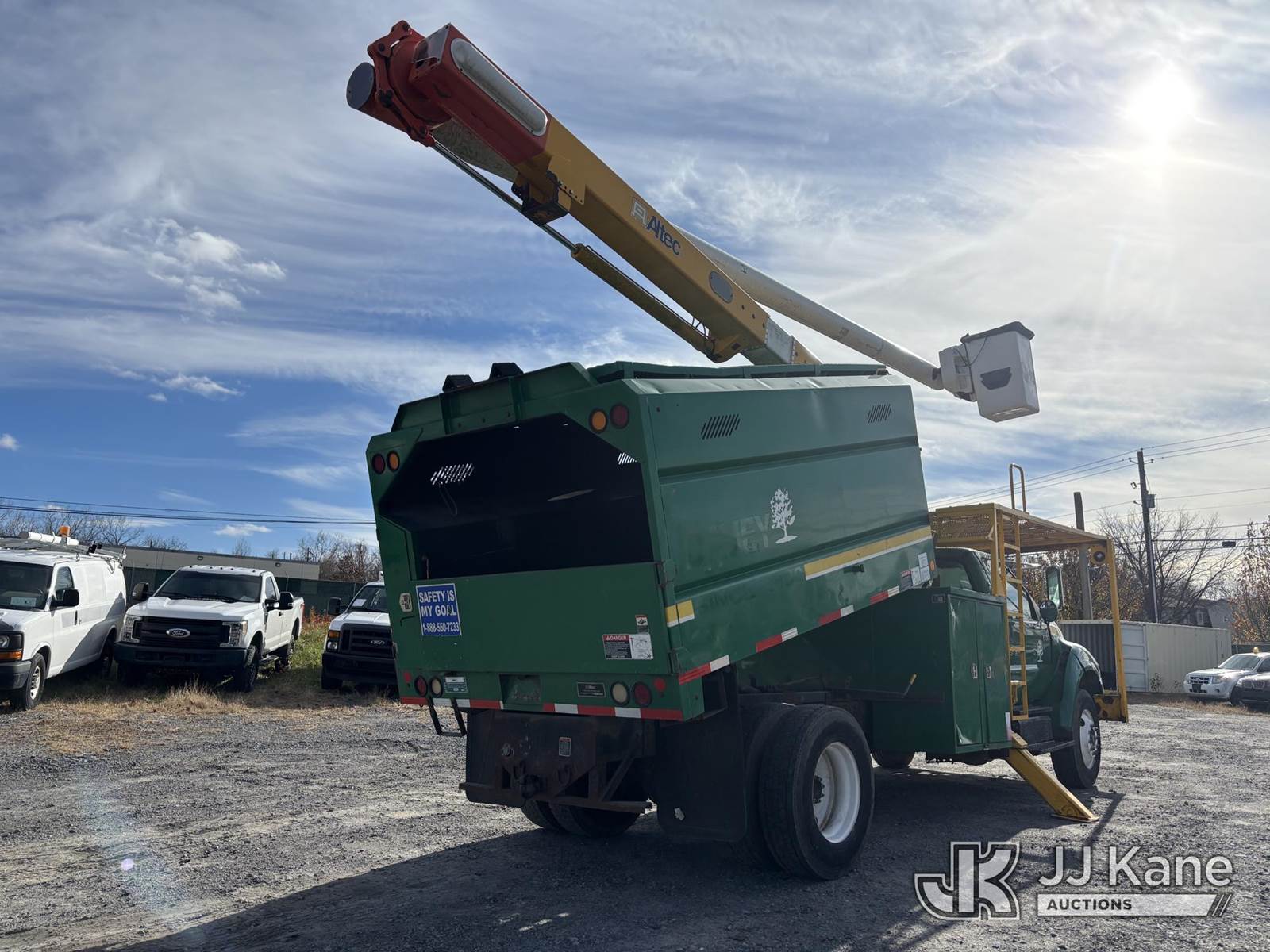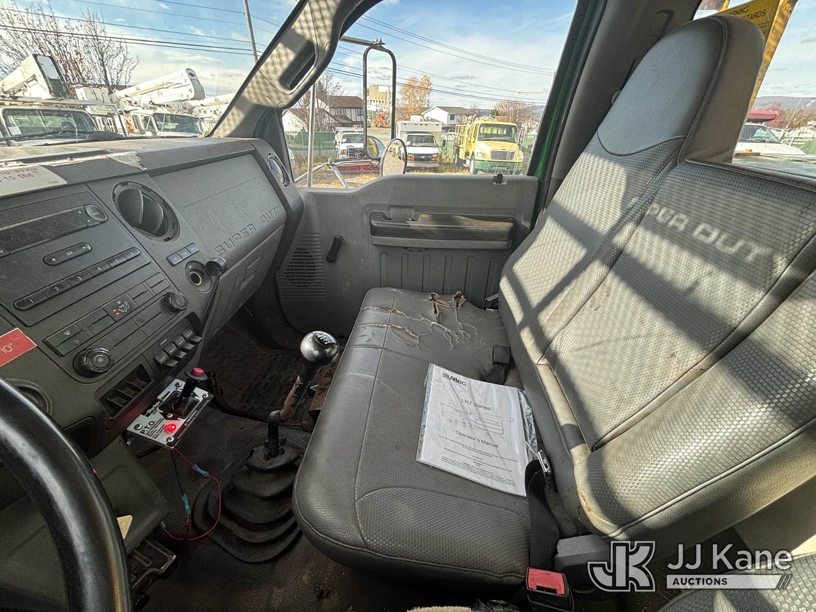 Altec LRV56, 56 ft, Over-Center Bucket Truck s/n 0211CV10585, with Single-Man Bucket & 2 Outriggers, mounted behind cab on 2011 Ford F750 Chipper Dump Truck, 5.9L L6 Diesel, 6-spd, A/C, with 11 ft body, (115,539 miles) (Runs, Moves, & Operates, Fiberglass Damage, Potential Bad Bearings In Elbow & Platform Pin Causing Off-Leveled Bucket, Body & Rust Damage) This is a Titled Item NOTE: This unit is being sold AS IS/WHERE IS via Timed Auction and is located in Plains, PA. Inspection & preview days for this unit are the 2 business days prior to the first day of items closing for this auction, item is located at 250 Laird St Plains, PA 18705 and hours of operations are 8a-4p.For pre-sale questions, please contact Mary Darlington @ (570) 899-4930 or Mary.Darlington@JJKane.com. (Manuals provided in cab) (Buyer is responsible for removal. Assistance by consignor or JJ Kane Auctioneers is not assured.)