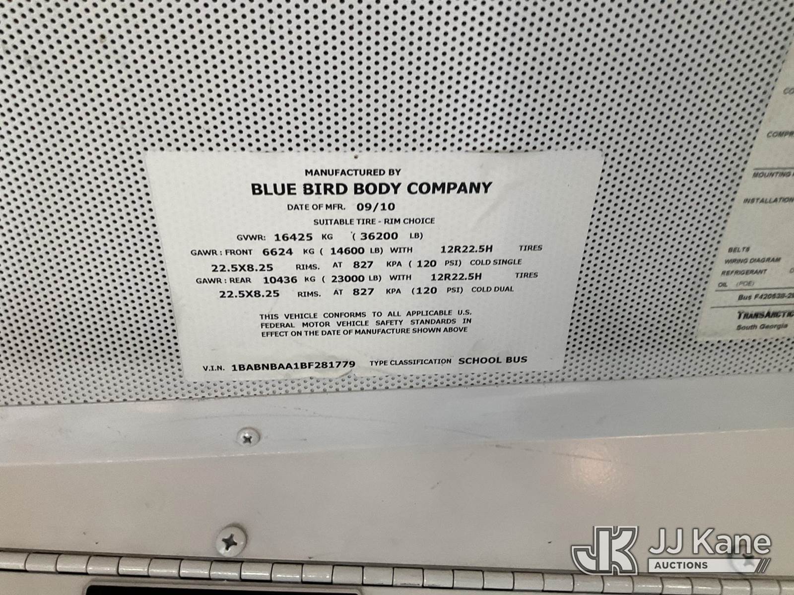 2011 Blue Bird School/Transit Bus School Bus, Cummins 8.9L Auto, CNG Only, with 65 Passenger Seating , (166,696 miles) (Not Running, Condition Unknown) (Cng Tanks Exp Date 07/2025 ok to PS per Ibrahim (Abe) Mobarak) (Bidding Restricted to Licensed Vehicle Dealers Only), This is a Titled Item NOTE: This unit is being sold AS IS/WHERE IS via Timed Auction and is located in Jurupa Valley, CA. Inspection & preview days for this unit are the 2 business days prior to the first day of items closing for this auction, item is located at 4510 Muth Way Jurupa Valley, CA 92509 and hours of operations are 8a-4p. For pre-sale questions, please contact please contact Office Staff @ (310) 353-7140. Dealer License Number 45696. (Buyer is responsible for removal. Assistance by consignor or JJ Kane Auctions is not assured.)