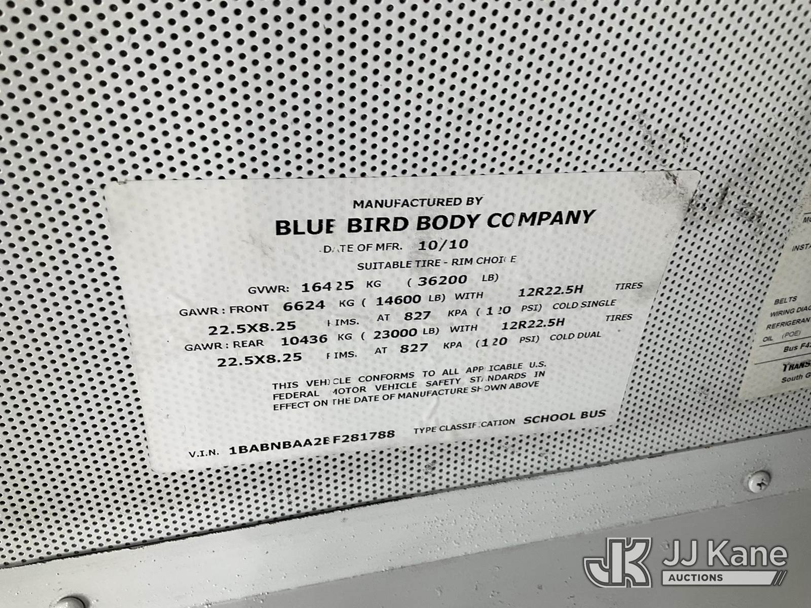 2011 Blue Bird School/Transit Bus School Bus, Cummins 8.9L Auto, CNG Only, with 65 Passenger Seating , (151,625 miles) (Not Running, Condition Unknown) (Cng Tanks Exp Date 07/2025 ok to sell PS per Ibrahim (Abe) Mobarak) (Bidding Restricted to Licensed Vehicle Dealers Only), This is a Titled Item NOTE: This unit is being sold AS IS/WHERE IS via Timed Auction and is located in Jurupa Valley, CA. Inspection & preview days for this unit are the 2 business days prior to the first day of items closing for this auction, item is located at 4510 Muth Way Jurupa Valley, CA 92509 and hours of operations are 8a-4p. For pre-sale questions, please contact please contact Office Staff @ (310) 353-7140. Dealer License Number 45696. (Buyer is responsible for removal. Assistance by consignor or JJ Kane Auctions is not assured.)