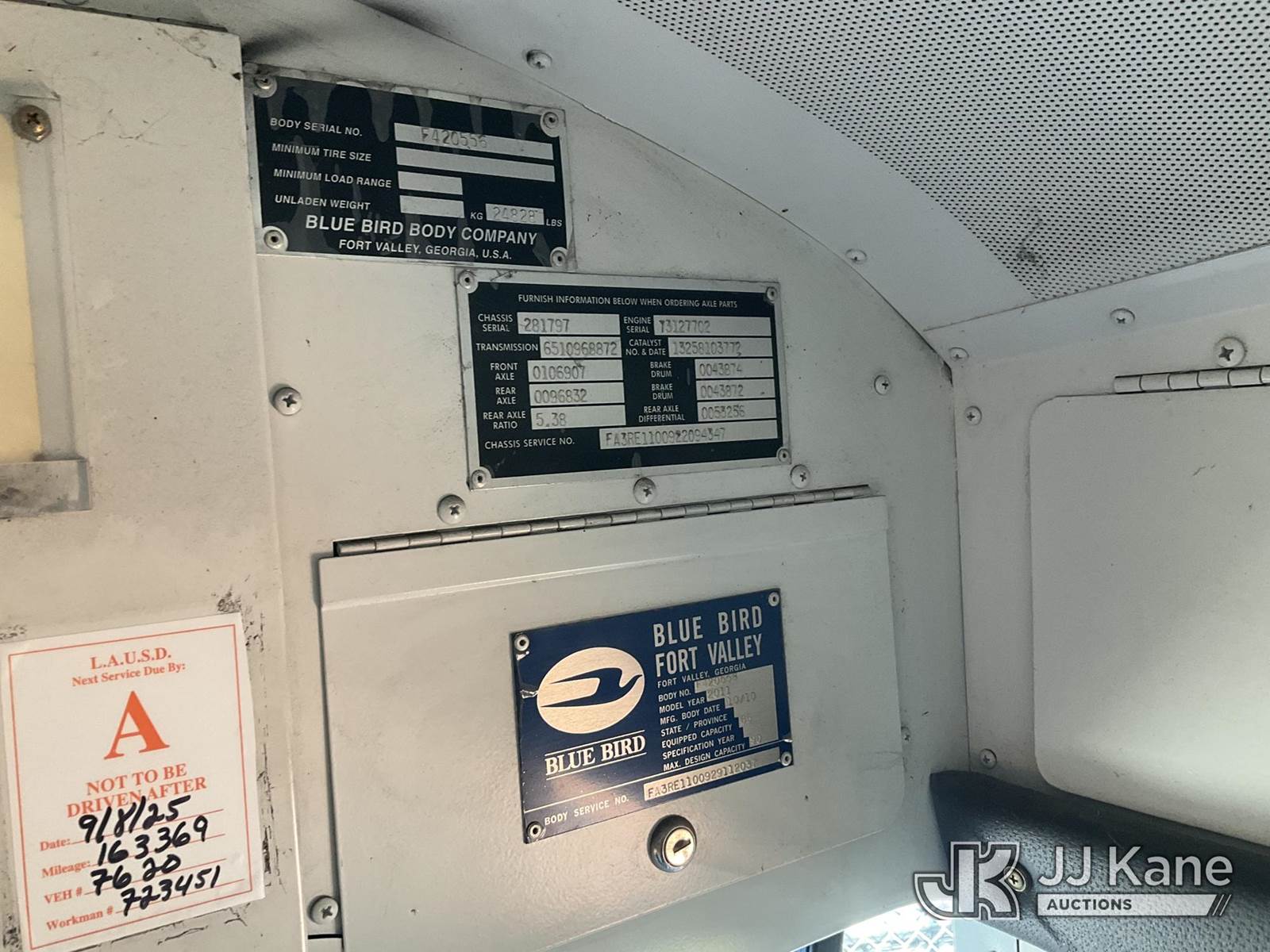 2011 Blue Bird School/Transit Bus School Bus, Cummins 8.9L Auto, CNG Only, with 65 Passenger Seating , True Mileage Unknown (Not Running, Condition Unknown) (Cng Tanks exp dates 07/2025 ok to sell PS per Ibrahim (Abe) Mobarak) (Bidding Restricted to Licensed Vehicle Dealers Only), This is a Titled Item NOTE: This unit is being sold AS IS/WHERE IS via Timed Auction and is located in Jurupa Valley, CA. Inspection & preview days for this unit are the 2 business days prior to the first day of items closing for this auction, item is located at 4510 Muth Way Jurupa Valley, CA 92509 and hours of operations are 8a-4p. For pre-sale questions, please contact please contact Office Staff @ (310) 353-7140. Dealer License Number 45696. (Buyer is responsible for removal. Assistance by consignor or JJ Kane Auctions is not assured.)