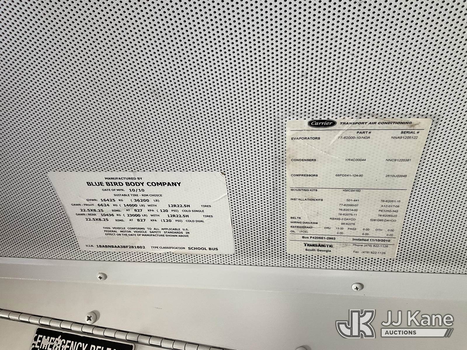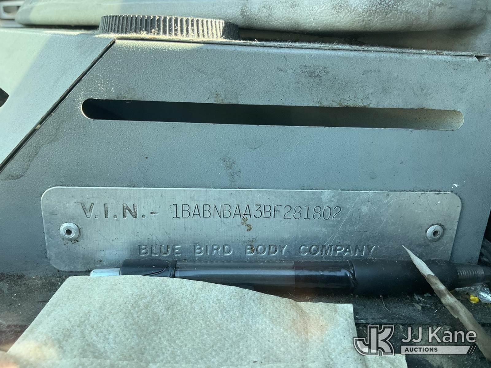 2011 Blue Bird School/Transit Bus School Bus, Cummins 8.9L Auto, CNG Only, with 65 Passenger Seating, (162,987 miles) (Not Running, Conditions Unknown) (CNG Tanks Expired 07-2025 ok to sell ps per Ibrahim (Abe) Mobarak) (Bidding Restricted to Licensed Vehicle Dealers Only), This is a Titled Item NOTE: This unit is being sold AS IS/WHERE IS via Timed Auction and is located in Jurupa Valley, CA. Inspection & preview days for this unit are the 2 business days prior to the first day of items closing for this auction, item is located at 4510 Muth Way Jurupa Valley, CA 92509 and hours of operations are 8a-4p. For pre-sale questions, please contact please contact Office Staff @ (310) 353-7140. Dealer License Number 45696. (Buyer is responsible for removal. Assistance by consignor or JJ Kane Auctions is not assured.)