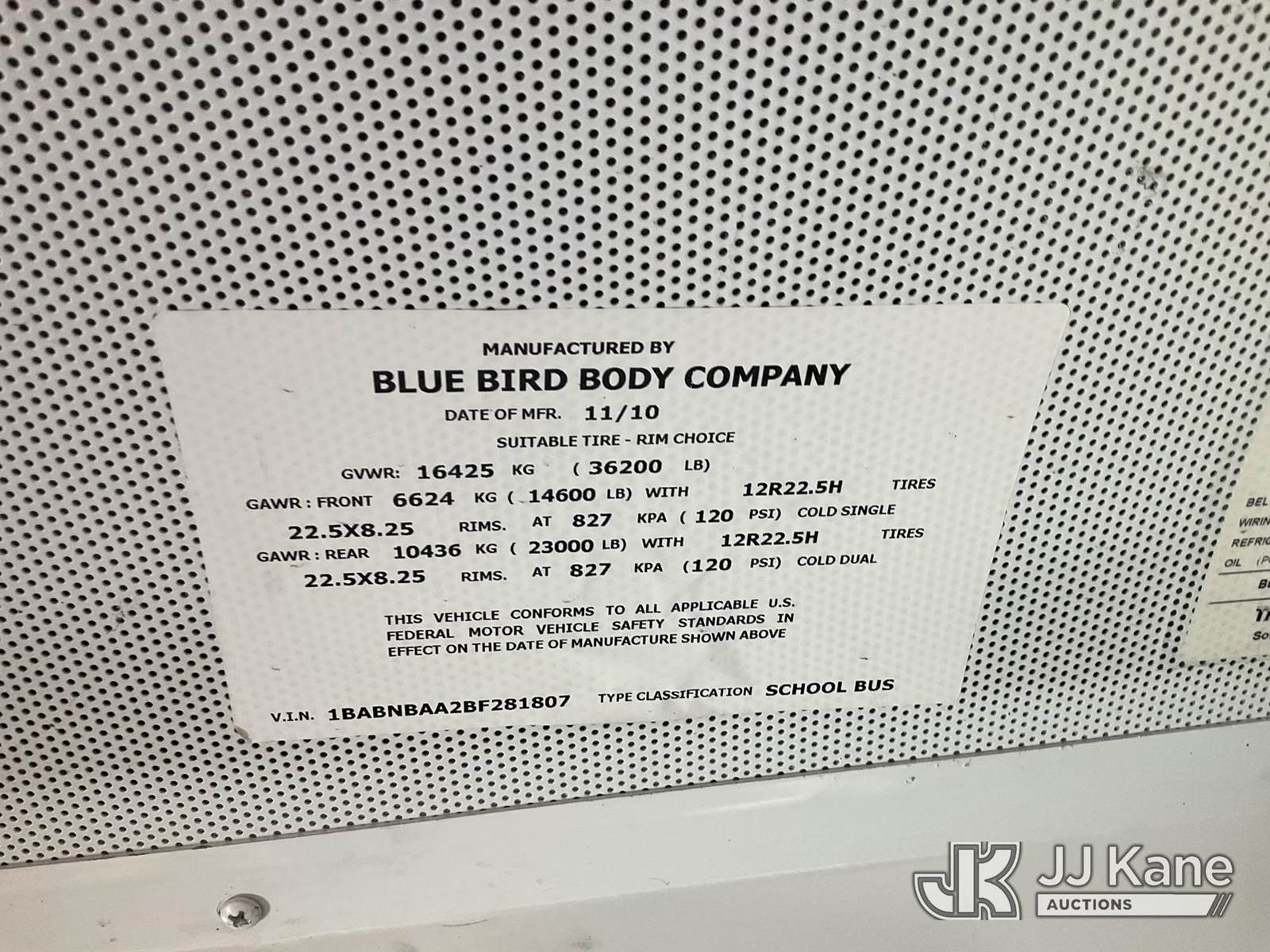 2011 Blue Bird School/Transit Bus School Bus, Cummins 8.9L Auto, CNG Only, with 65 Passenger Seating , (167,599 miles) (Not Running, Condition Unknown) (Cng Tanks exp dates 08/2025ok to sell ps per Ibrahim (Abe) Mobarak) (Bidding Restricted to Licensed Vehicle Dealers Only), This is a Titled Item NOTE: This unit is being sold AS IS/WHERE IS via Timed Auction and is located in Jurupa Valley, CA. Inspection & preview days for this unit are the 2 business days prior to the first day of items closing for this auction, item is located at 4510 Muth Way Jurupa Valley, CA 92509 and hours of operations are 8a-4p. For pre-sale questions, please contact please contact Office Staff @ (310) 353-7140. Dealer License Number 45696. (Buyer is responsible for removal. Assistance by consignor or JJ Kane Auctions is not assured.)