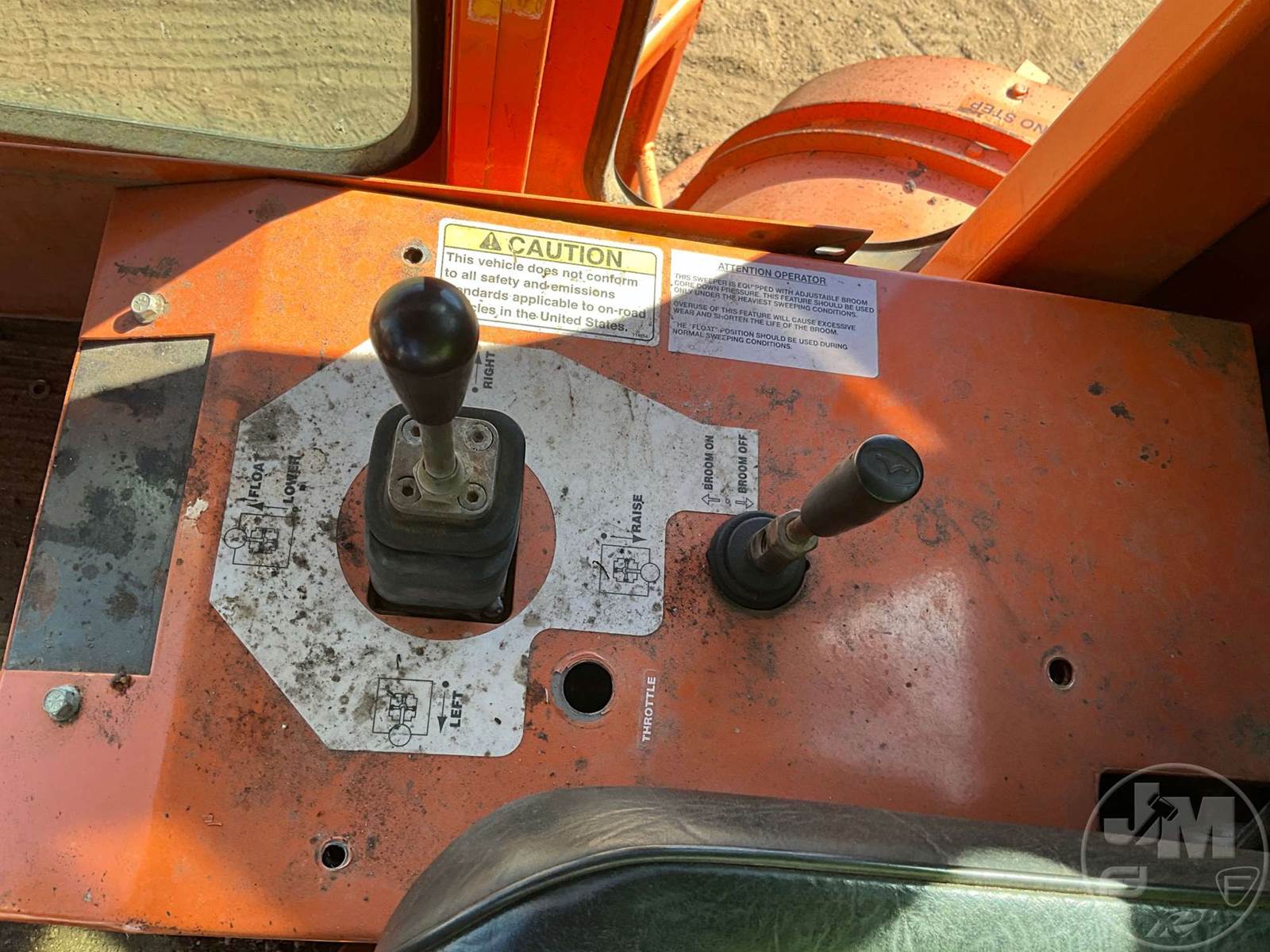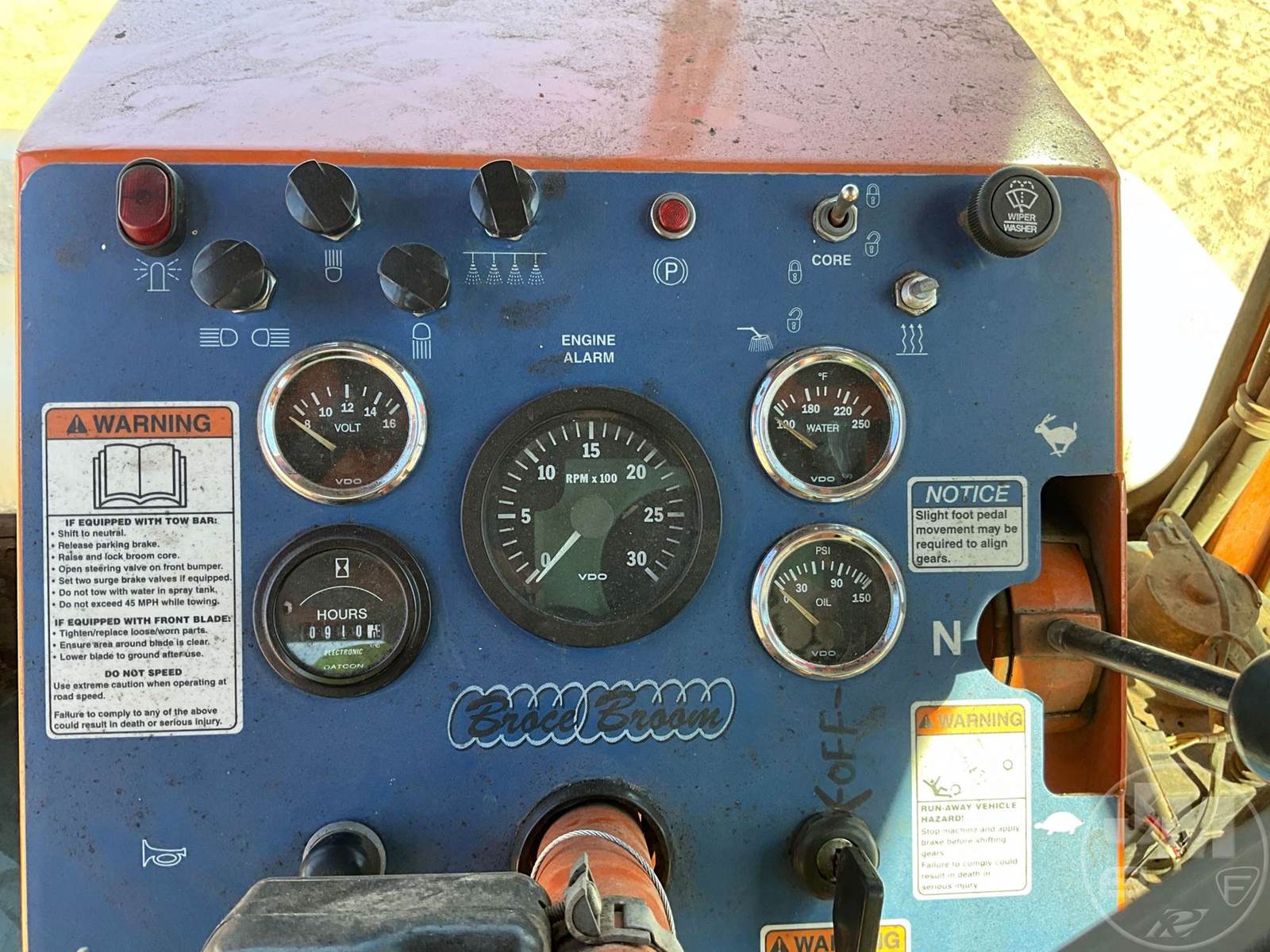 BROOM, CAB, A/C, WATER SYSTEM, 8' BROOM, CATERPILLAR, 4 CYL ENGINE, HOUR METER READS: 910