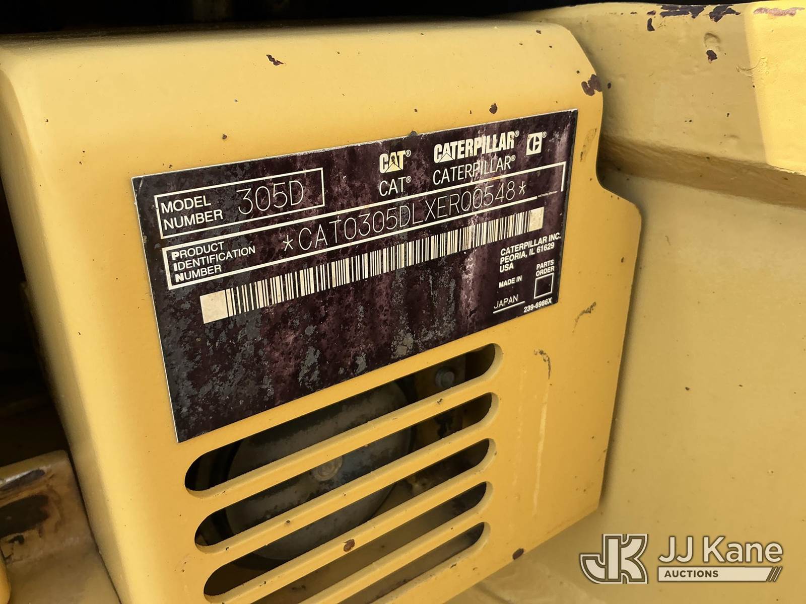 2011 Caterpillar 305D Mini Hydraulic Excavator, s/n CAT0305DLXER00548, Mitsubishi S4Q Hydrostatic, diesel, with two way backfill blade, ROPS, and 12in bucket, (Runs, Moves) (Reads 2,015 hours) NOTE: This unit is being sold AS IS/WHERE IS via Timed Auction and is located in Florence, SC. For more information & removal arrangements please contact Pete Klimek @ 843-323-6538. (Buyer is responsible for removal. Assistance by consignor or JJ Kane Auctioneers is not assured.)