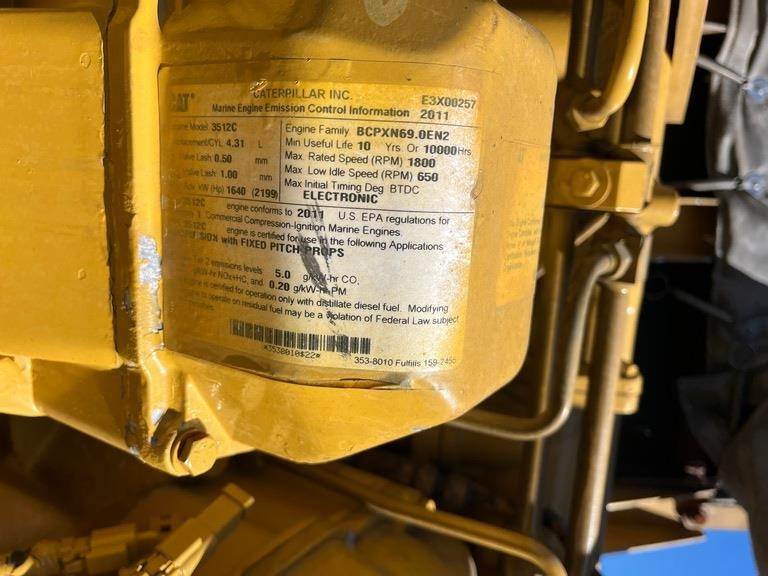 Used CAT 3512C Marine Propulsion Engine Core; 2011 Model - 50,000 Original Hours; 1300HP @ 1200RPM; Keel Cooling Configuration; Right Hand Service Side; Standard Rotation; SAE 00 Housing; Deep Sump Oil Pan; Rebuildable Core