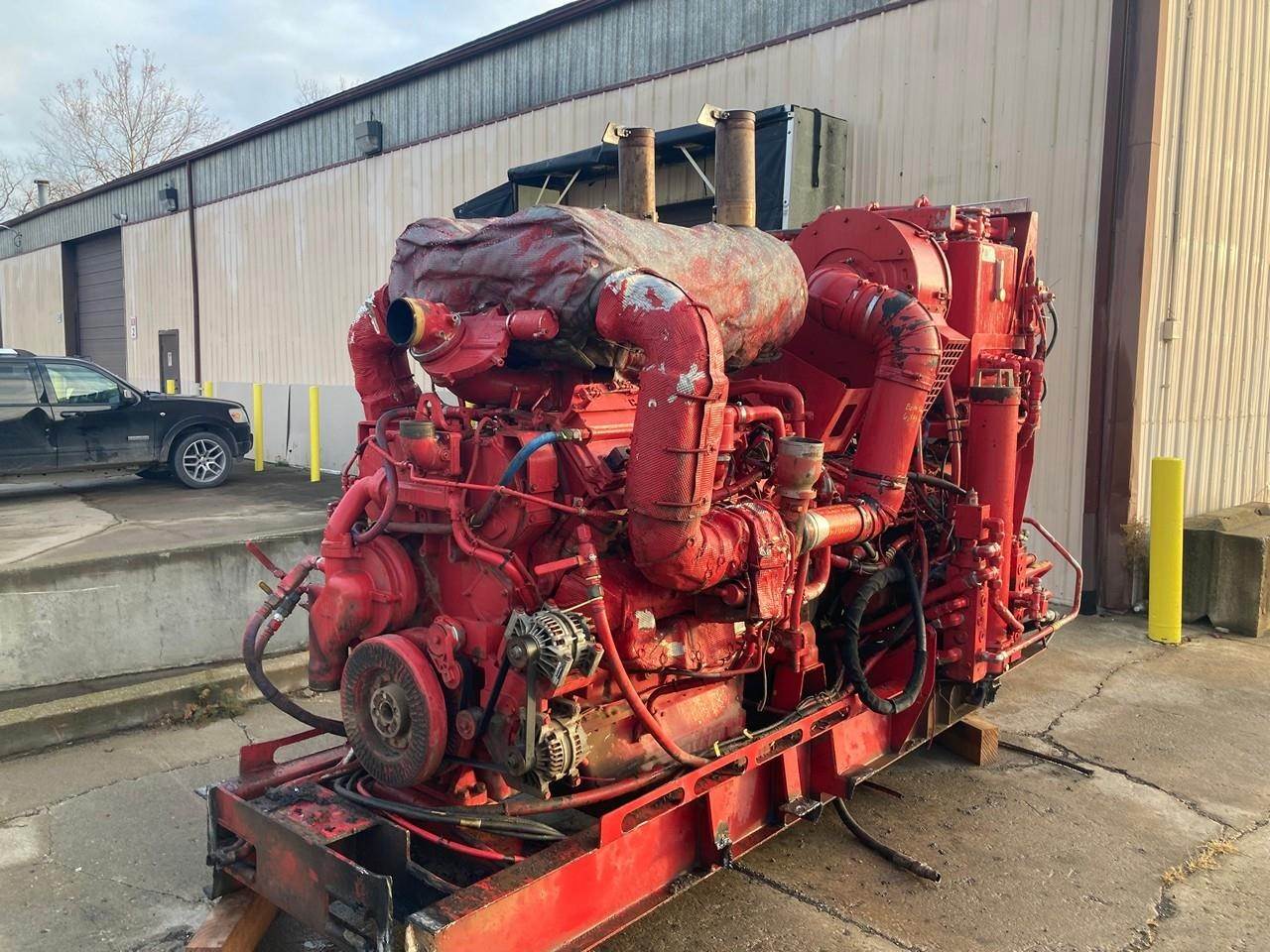 GOOD USED 2011 CATERPILLAR C32 ACERT 1,140HP DIESEL TAKEOUT ENGINE with HYDRAULIC PUMPS and TANK FOR SALE at ADELMAN’S TRUCK PARTS in CANTON, OHIO, RUN TESTED, 6,883 HOURS SHOWING ON ECM, 340-9410 ARRANGEMENT #, 1,140 HP @ 1800 RPM, with 65+ LBS OIL PRESSURE. ENGINE WAS REBUILT IN 2017.