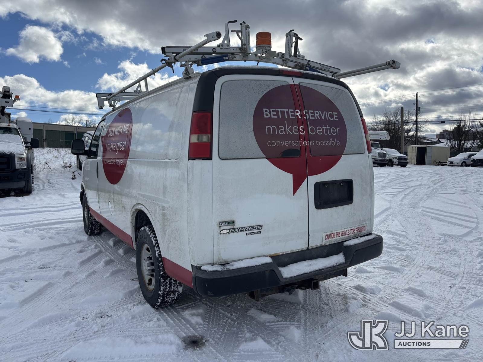 2011 Chevrolet Express 2500 Cargo Van, 4.8L V8 Gas, 6-Speed Automatic, A/C, with Inverter & Ladder Rack, (91,000 miles) (Runs & Moves, TPS Light On, Body & Rust Damage) (Reads 3,588 hours) This is a Titled Item NOTE: This unit is being sold AS IS/WHERE IS via Timed Auction and is located in Plains, PA. For pre-sale questions, please contact Mary Darlington @ 570-899-4930 or Mary.Darlington@JJKane.com. JJ Kane Plains, PA yard is open for inspection on the Friday and Monday before the sale date from 9:00 am to 3:00 pm. REMOVAL: All items must be removed by 10 calendar days after the sale, Monday - Friday (Excluding Holidays). (Buyer is responsible for removal. Assistance by consignor or JJ Kane Auctions is not assured.)