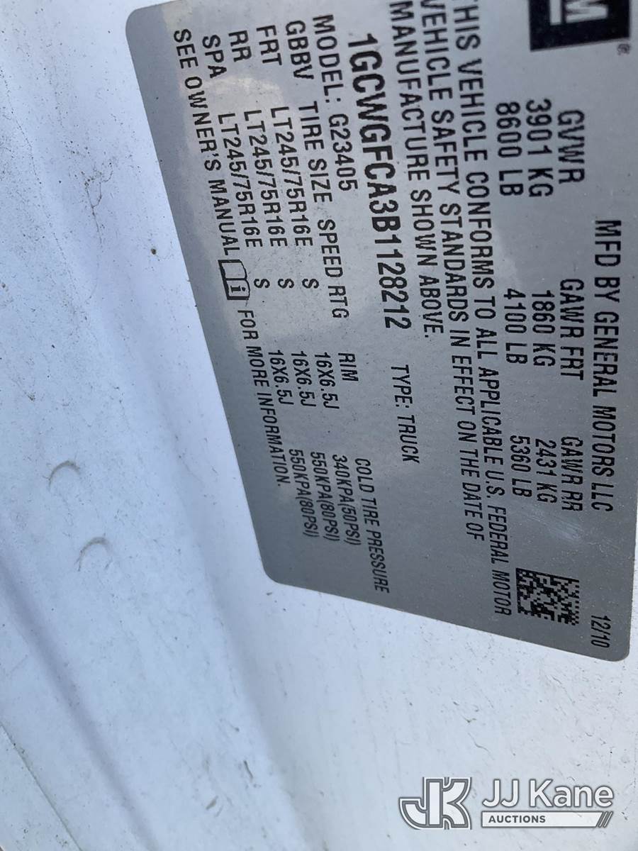 2011 Chevrolet Express 2500 Cargo Van, 8-cyl Gas 6-Speed Automatic, A/C, (135,507 miles) (Runs, Not Moving) (Paint & Rust Defects Present) (Removal is by Appointment Only, Buyer MUST make a appointment prior to picking up, Buyer/Transporter Must have PAID IN FULL RELEASE. No onsite assistance available, Please Come prepared.) This is a Titled Item NOTE: This unit is being sold AS IS/WHERE IS via Timed Auction and is located in Branchville, NJ. Inspection & preview days for this unit are by appointment only; please contact us at contact@jjkane.com or 84-Go-JJKane for more details. For pre-sale questions, please contact the on-site office @ (973) 948-2026 or wtrbranchville@gmail.com. (Buyer is responsible for removal. Assistance by consignor or JJ Kane Auctions is not assured.)