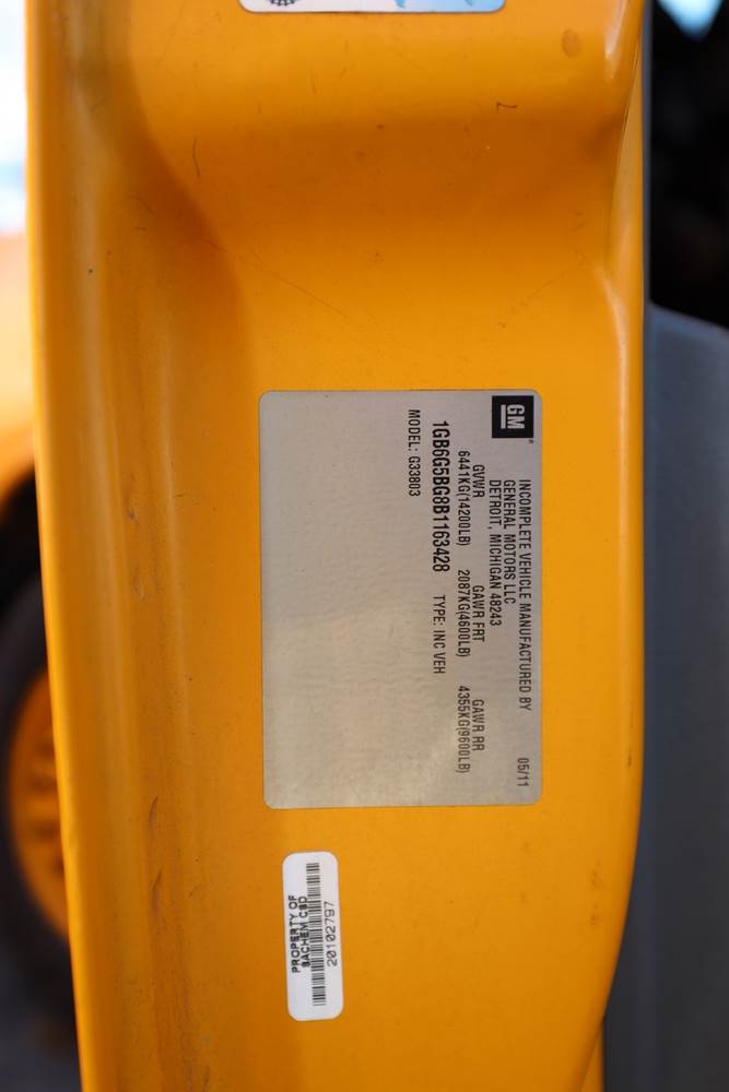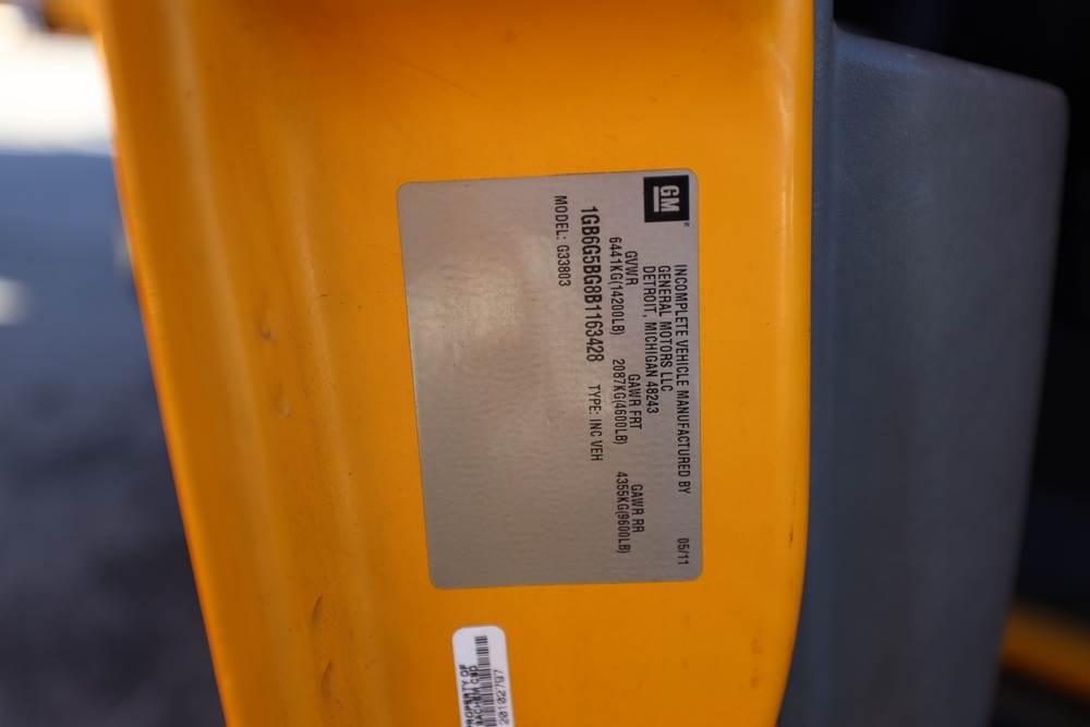 2011 Chevrolet Express 4500 School Bus. VIN: 1GB6G5BG8B1163428. Body: Commercial/Cutaway/Chassis 2D. Engine: 6.0L V8 SMPI Flex Fuel. Odometer reading: 123,081. Seller reports: Operates, AC does not work. Title & key available.