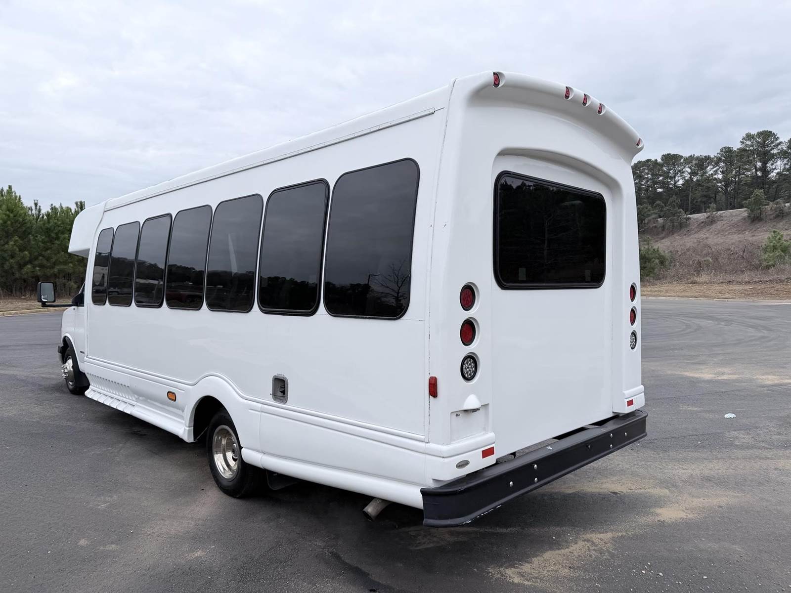 24 passenger shuttle bus, Runs and drives strong, tons of tread left on all tires, 6.0L GM gas engine, Rear AC and heat, We ship nationwide