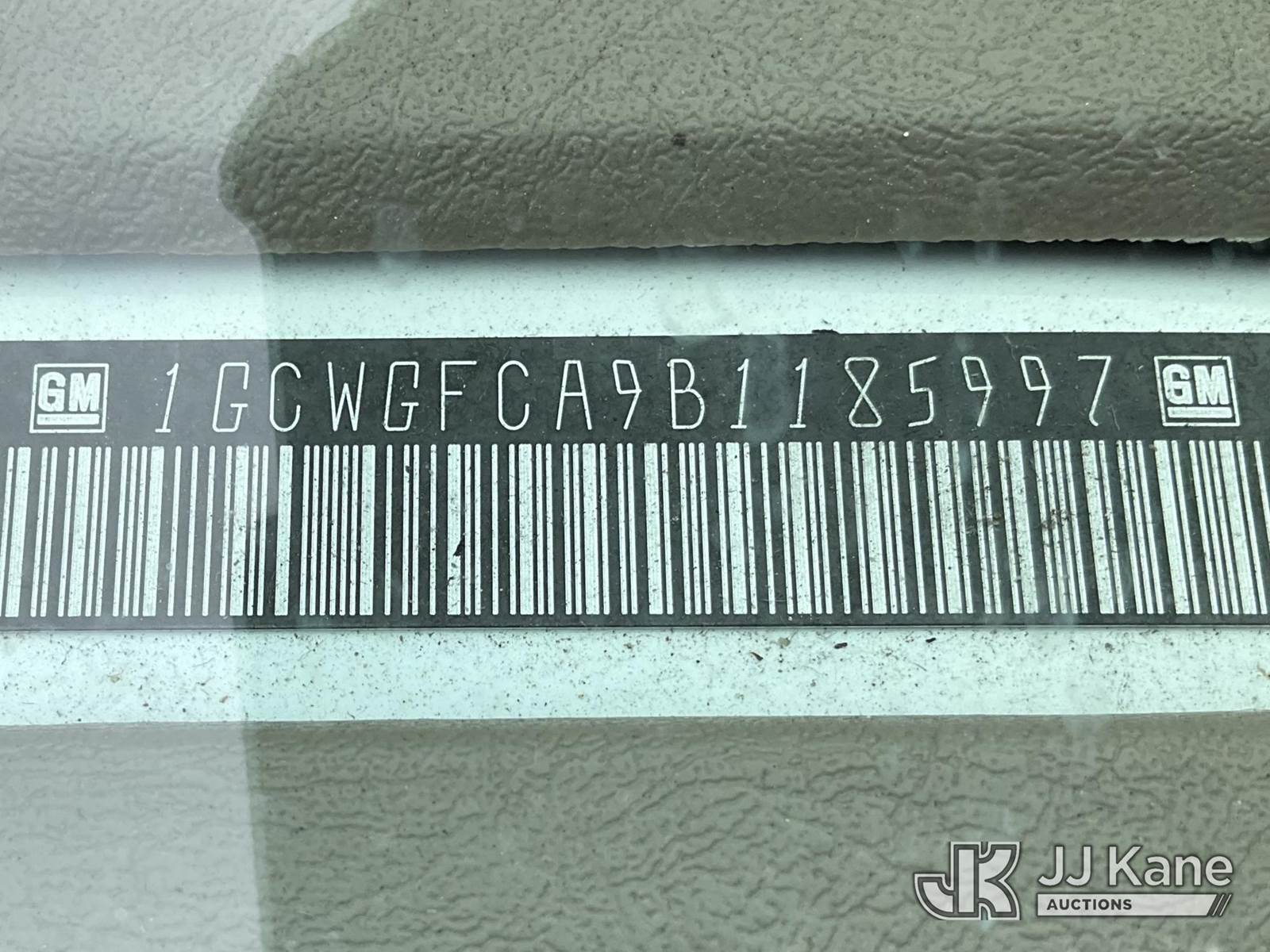 2011 Chevrolet Express G2500 Cargo Van, 4.8L V8 6-Speed Automatic, RWD, gas, A/C, (99,587 miles) (Runs & Moves) (Bad Frame, Frame Rusted Through, Rust Damage) This is a Titled Item NOTE: This unit is being sold AS IS/WHERE IS via Timed Auction and is located in Shrewsbury, MA. Inspection & preview days for this unit are the 2 business days prior to the first day of items closing for this auction, item is located at 11 Fortune Blvd Shrewsbury, MA 01545 and hours of operations are 8a-4p. For pre-sale questions, please contact Rob Gifford @ (508) 864-4126. (Buyer is responsible for removal. Assistance by consignor or JJ Kane Auctioneers is not assured.)
