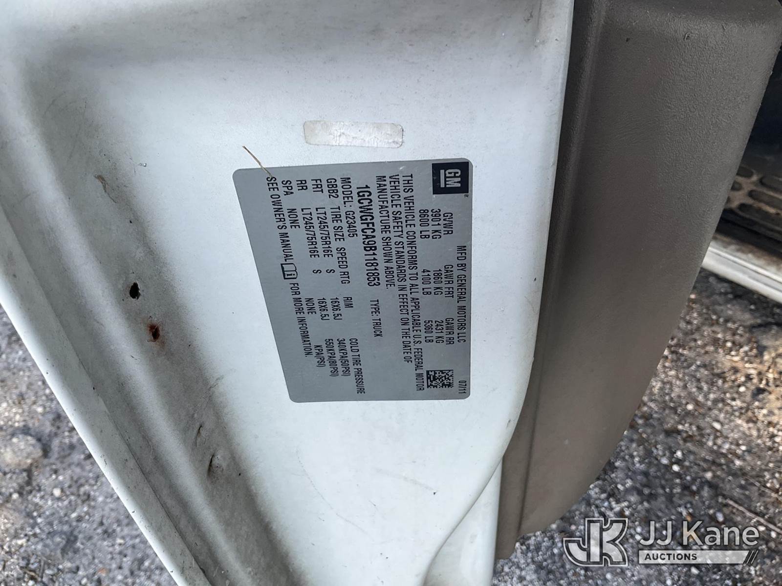 2011 Chevrolet Express G2500 Cargo Van, 8-cyl gas, Auto, A/C, (179,251 miles) (Runs & Moves) (Jump To Start, Paint/Body Damage) (FL Residents Purchasing Titled Items - tax, title & registration fees will be collected at the maximum rate of $400.00 under 25,999 and $800.00 for Over 26,000 and $250.00 trailers - Proof of insurance is mandatory; Out of State Residents Purchasing Title Items - tax will be collected based upon your state rate.) This is a Titled Item NOTE: This unit is being sold AS IS/WHERE IS via Timed Auction and is located in Thonotosassa, FL. Inspection & preview days for this unit are the 2 business days prior to the first day of items closing for this auction, item is located at 11720 N US 301 Thonotosassa, Fl 33592 and hours of operations are 8a-4p. For pre-sale questions, please contact Office Staff @ (813) 986-2485. (Buyer is responsible for removal. Assistance by consignor or JJ Kane Auctioneers is not assured.)