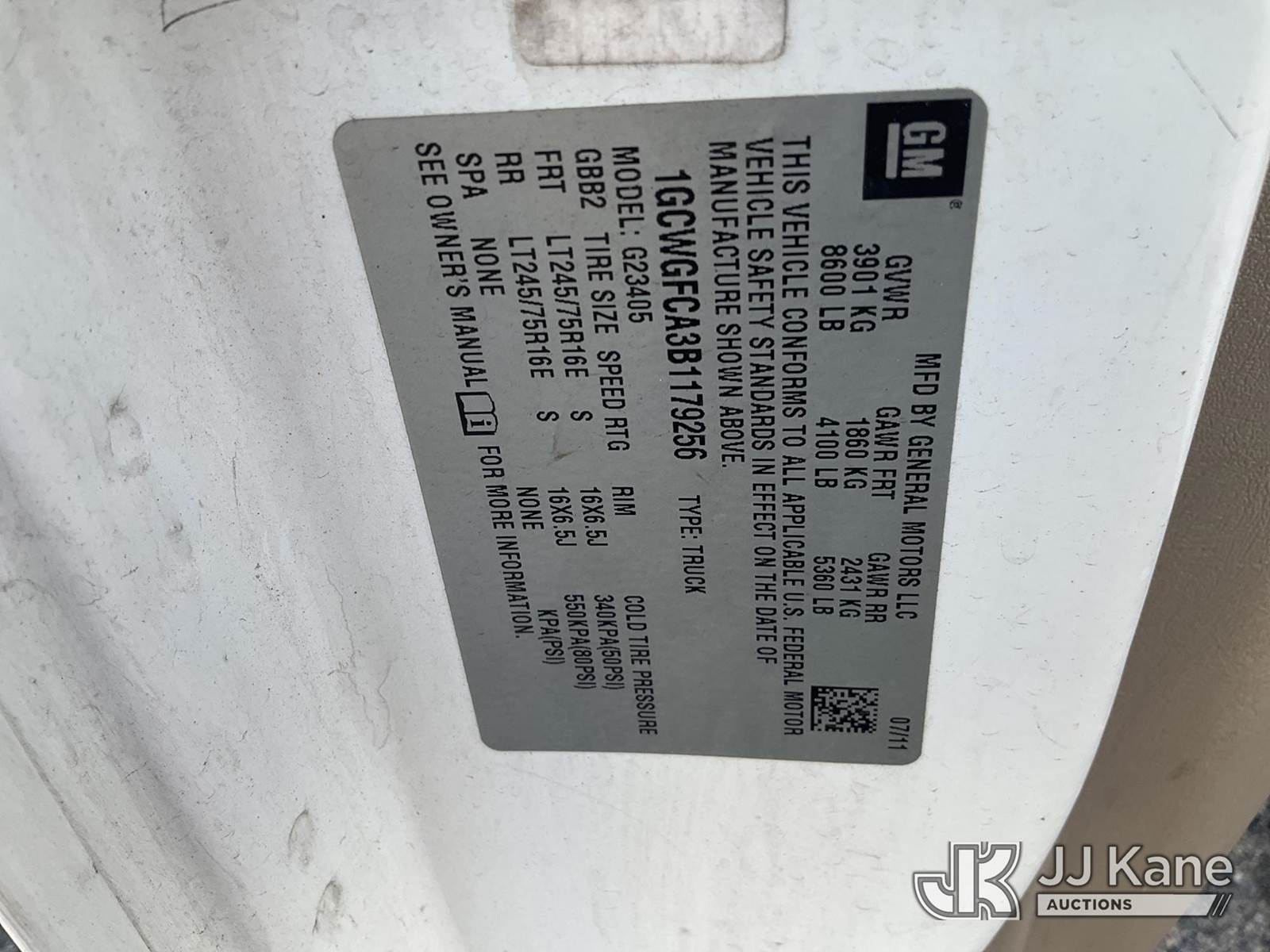 2011 Chevrolet Express G2500 Cargo Van, 8-cyl gas, Auto, A/C, (71,183 miles) (Runs & Moves, Body Damage) This is a Titled Item NOTE: This unit is being sold AS IS/WHERE IS via Timed Auction and is located in Plymouth Meeting, PA. Inspection & preview days for this unit are the 2 business days prior to the first day of items closing for this auction, item is located at 1402 Conshohocken Rd Plymouth Meeting, PA 19462 and hours of operations are 8a-4p. For pre-sale questions, please contact Bruce Thomas @ (267) 887-0392 or bruce.thomas.jr@jjkane.com. (Buyer is responsible for removal. Assistance by consignor or JJ Kane Auctioneers is not assured.)
