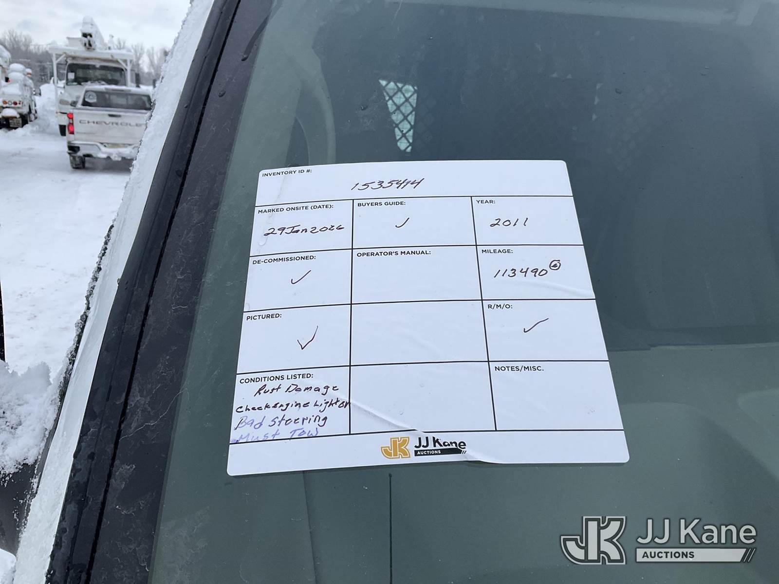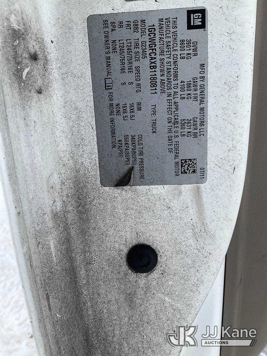2011 Chevrolet Express G2500 Cargo Van, 8-cyl gas, Auto, A/C, (113,490 miles) (Runs & Moves, Bad Steering, Rust Damage, Must Tow) This is a Titled Item NOTE: This unit is being sold AS IS/WHERE IS via Timed Auction and is located in Rome, NY. For pre-sale questions, please contact Ryan Jackson @ (315) 749-3790 or Ryan.Jackson@jjkane.com. Inspections are Friday & Monday 8 am to 3 pm Before Sale Date. REMOVAL: Auction Items will not be released without a paid-in full release form. All Auction Items must be removed by the Purchaser within (10) calendar days following the sale, without exception. (Buyer is responsible for removal. Assistance by consignor or JJ Kane Auctions is not assured.)