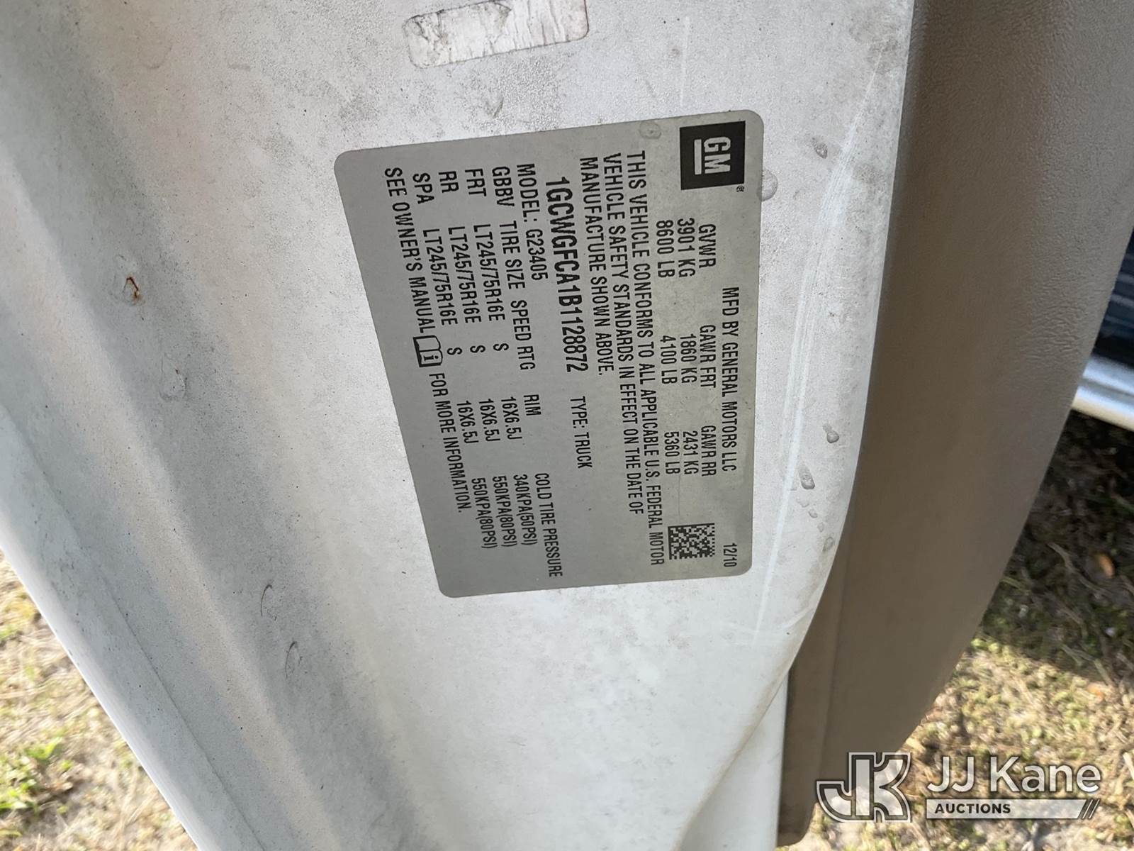 2011 Chevrolet Express G2500 Cargo Van, 4.8L V8 OHV 16V FFV gas, RWD, 6-Speed Automatic, A/C, (111,494 miles) (Runs & Moves) (Jump To Start, Airbag Light On, Paint Damage, Needs Battery) This is a Titled Item NOTE: This unit is being sold AS IS/WHERE IS via Timed Auction and is located in Thonotosassa, FL. Inspection & preview days for this unit are the 2 business days prior to the first day of items closing for this auction, item is located at 11720 N US 301 Thonotosassa, Fl 33592 and hours of operations are 8a-4p. For pre-sale questions, please contact Office Staff @ (813) 986-2485. (Buyer is responsible for removal. Assistance by consignor or JJ Kane Auctions is not assured.)
