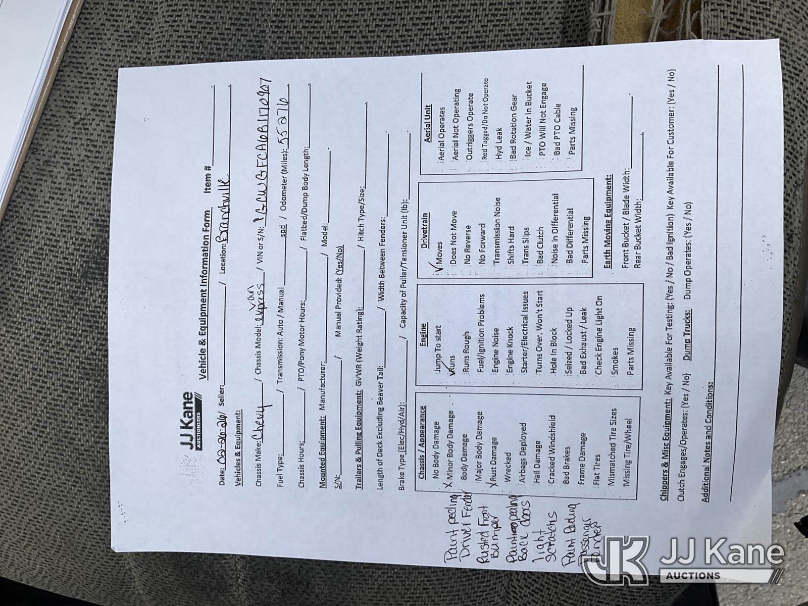 2011 Chevrolet Express G2500 Cargo Van, 8-cyl gas, Auto, A/C, (55,276 miles) (Runs & Moves) (Removal is by Appointment Only, Buyer MUST make a appointment prior to picking up, Buyer/Transporter Must have PAID IN FULL RELEASE. No onsite assistance available, Please Come prepared.) This is a Titled Item NOTE: This unit is being sold AS IS/WHERE IS via Timed Auction and is located in Branchville, NJ. Inspection & preview days for this unit are by appointment only; please contact us at contact@jjkane.com or 84-Go-JJKane for more details. For pre-sale questions, please contact the on-site office @ (973) 948-2026 or wtrbranchville@gmail.com. (Buyer is responsible for removal. Assistance by consignor or JJ Kane Auctions is not assured.)