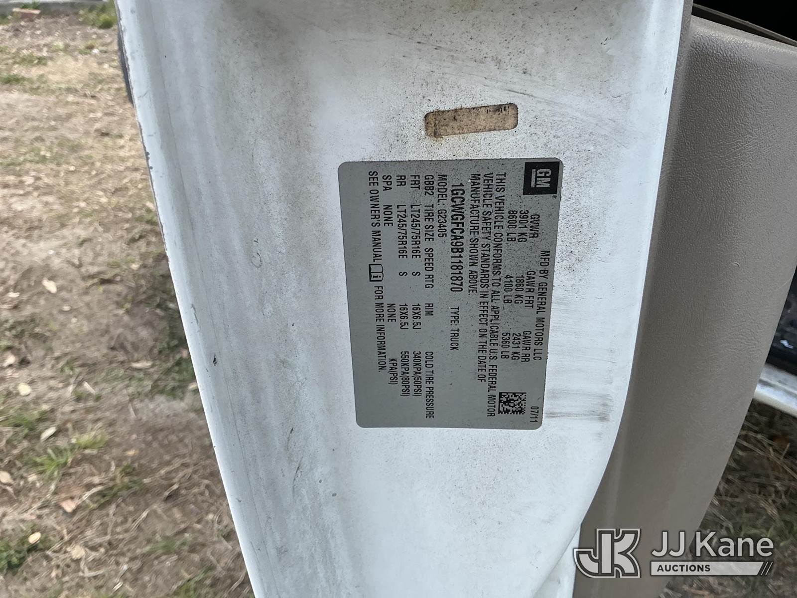 2011 Chevrolet Express G2500 Cargo Van, 4.8L V8 OHV 16V gas, RWD, 6-Speed Automatic, A/C, (107,425 miles) (Runs & Moves) (Jump To Start, Paint Damage) (FL Residents Purchasing Titled Items – tax, title & registration fees will be collected at the maximum rate of $400.00 under 25,999 and $800.00 for Over 26,000 and $250.00 trailers – Proof of insurance is mandatory; Out of State Residents Purchasing Title Items – tax will be collected based upon your state rate.) This is a Titled Item NOTE: This unit is being sold AS IS/WHERE IS via Timed Auction and is located in Thonotosassa, FL. Inspection & preview days for this unit are the 2 business days prior to the first day of items closing for this auction, item is located at 11720 N US 301 Thonotosassa, Fl 33592 and hours of operations are 8a-4p. For pre-sale questions, please contact Office Staff @ (813) 986-2485. (Buyer is responsible for removal. Assistance by consignor or JJ Kane Auctions is not assured.)