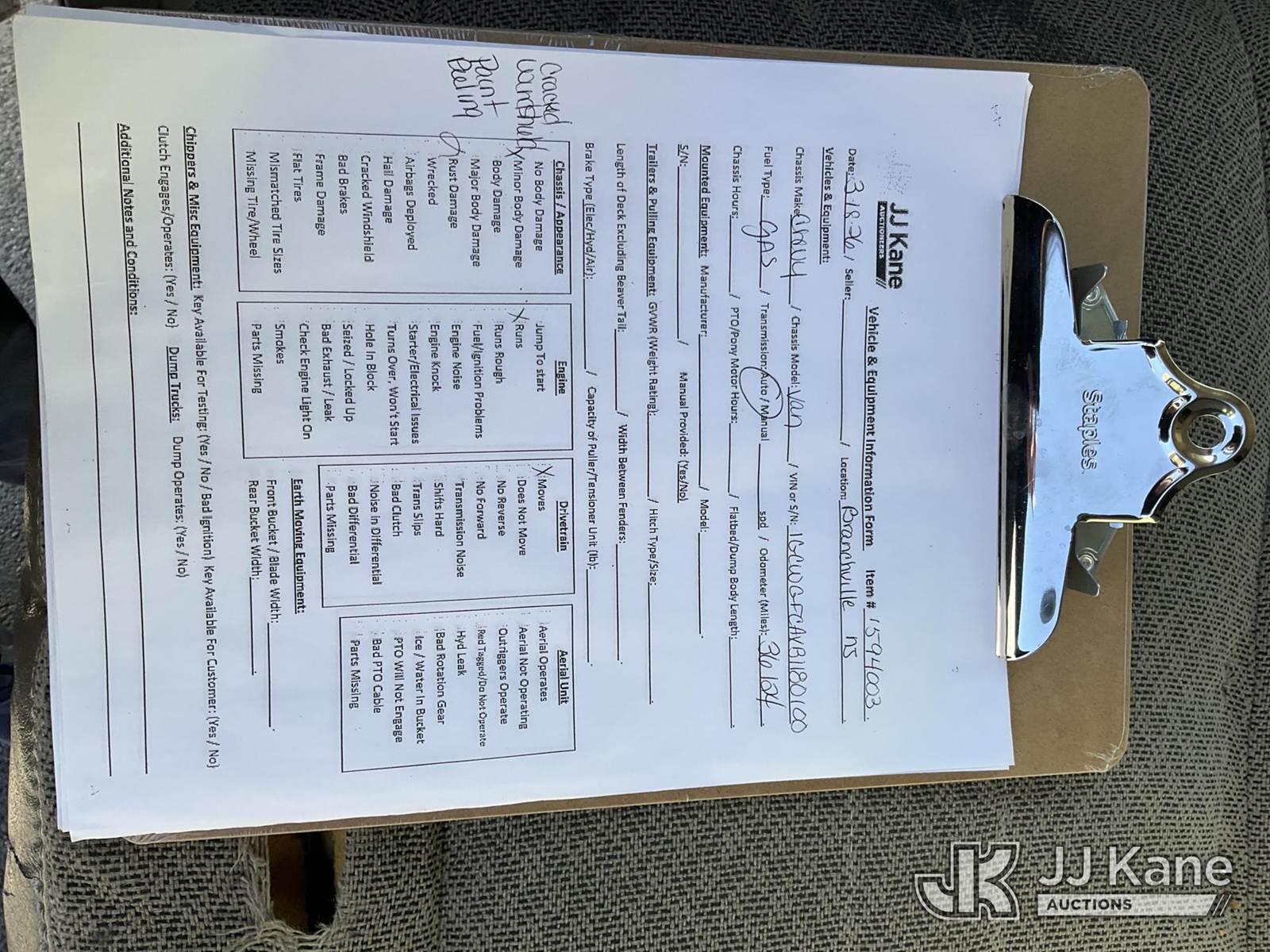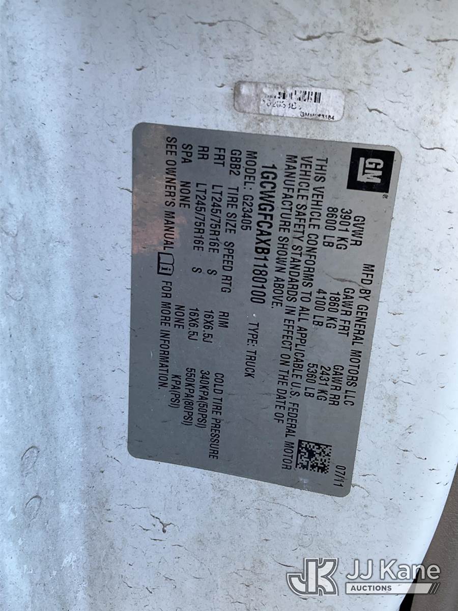 2011 Chevrolet Express G2500 Cargo Van, 8-cyl gas, Auto, A/C, (36,124 miles) (Runs & Moves) (Removal is by Appointment Only, Buyer MUST make a appointment prior to picking up, Buyer/Transporter Must have PAID IN FULL RELEASE. No onsite assistance available, Please Come prepared.) This is a Titled Item NOTE: This unit is being sold AS IS/WHERE IS via Timed Auction and is located in Branchville, NJ. Inspection & preview days for this unit are by appointment only; please contact us at contact@jjkane.com or 84-Go-JJKane for more details. For pre-sale questions, please contact the on-site office @ (973) 948-2026 or wtrbranchville@gmail.com. (Buyer is responsible for removal. Assistance by consignor or JJ Kane Auctions is not assured.)