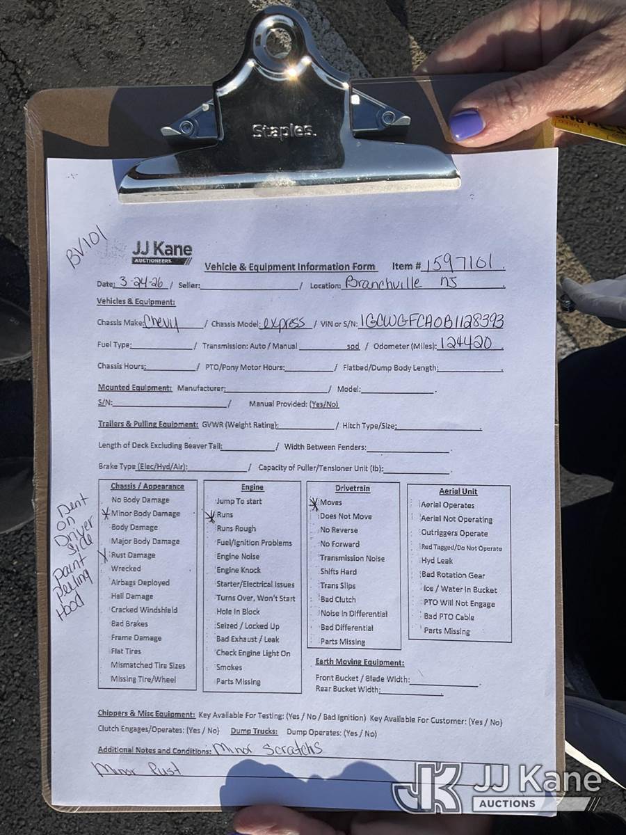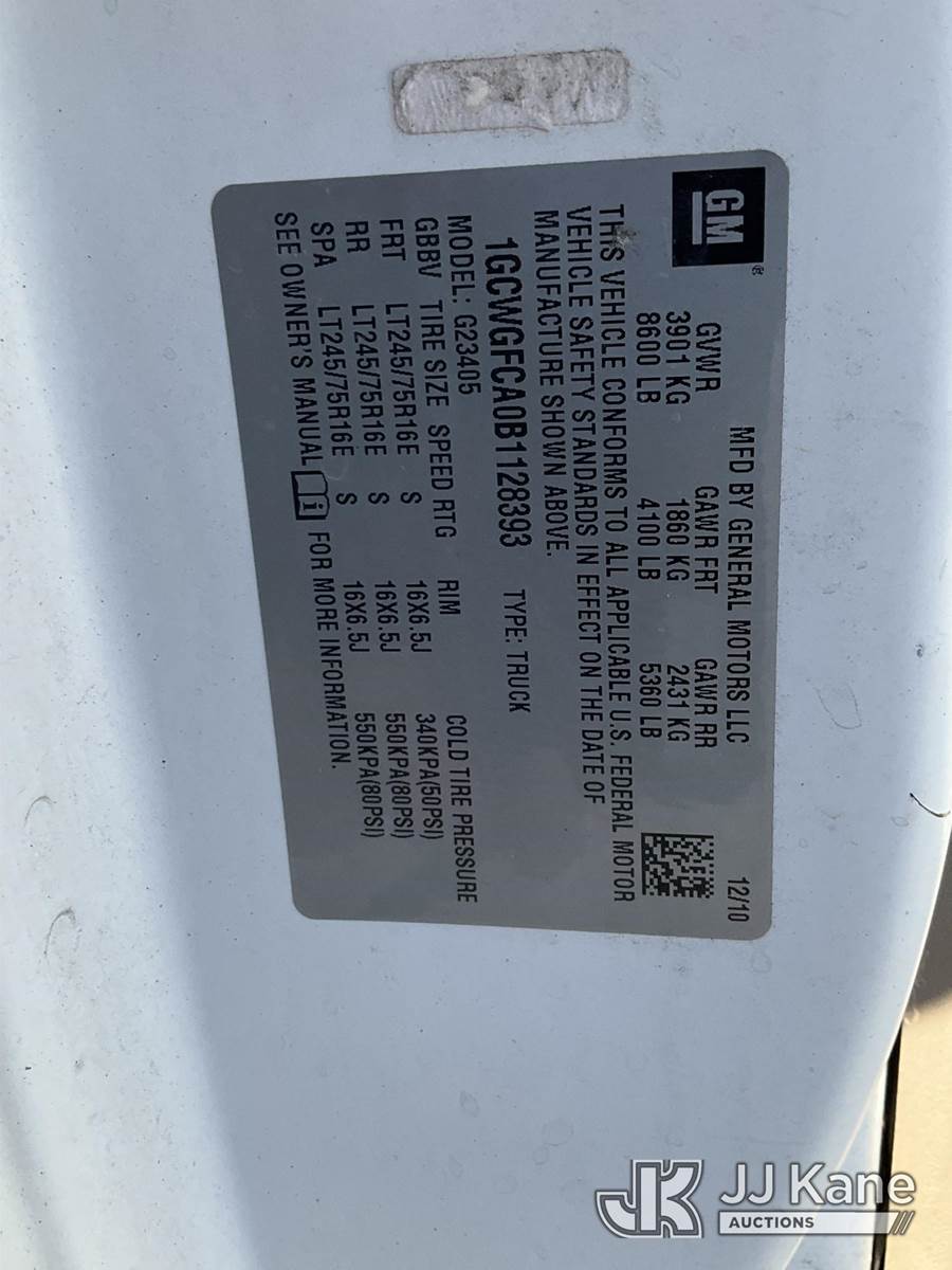 2011 Chevrolet Express G2500 Cargo Van, 8-cyl gas, Auto, A/C, (124,420 miles) (Runs & Moves) This is a Titled Item NOTE: This unit is being sold AS IS/WHERE IS via Timed Auction and is located in Branchville, NJ. Inspection & preview days for this unit are by appointment only; please contact us at contact@jjkane.com or 84-Go-JJKane for more details. For pre-sale questions, please contact the on-site office @ (973) 948-2026 or wtrbranchville@gmail.com. (Buyer is responsible for removal. Assistance by consignor or JJ Kane Auctions is not assured.)