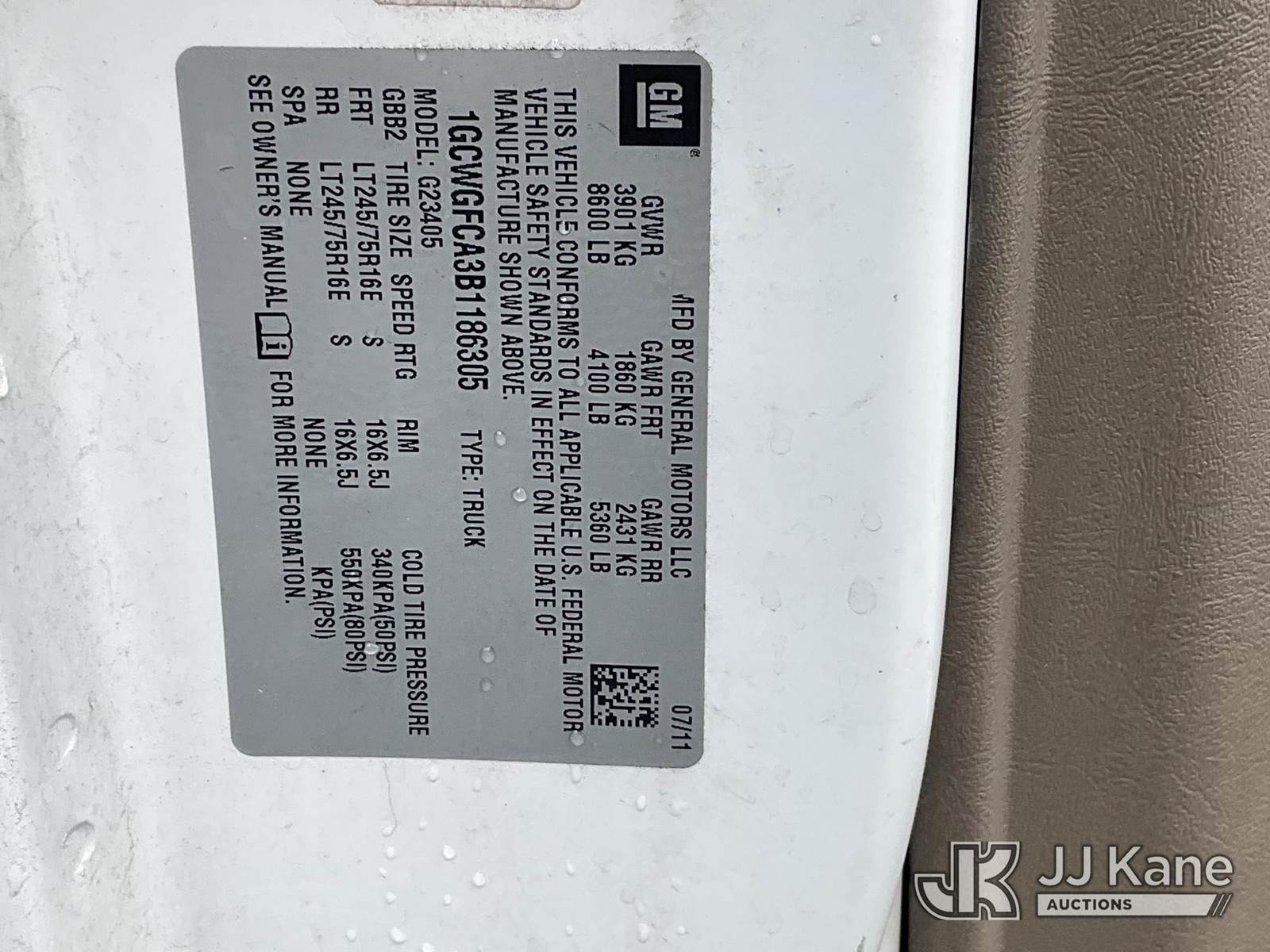 2011 Chevrolet Express G2500 Cargo Van, 4.8L V8 FFV, RWD, Automatic, A/C, (135,081 miles) (Runs & Moves, Jump To Start) (Removal is by Appointment Only, Buyer MUST make a appointment prior to picking up, Buyer/Transporter Must have PAID IN FULL RELEASE. No onsite assistance available, Please Come prepared.) This is a Titled Item NOTE: This unit is being sold AS IS/WHERE IS via Timed Auction and is located in Hagerstown, MD. Inspection & preview days for this unit are by appointment only; please contact us at contact@jjkane.com or 84-Go-JJKane for more details. For pre-sale questions, please contact the on-site office @ (301) 895-7777 or Kevin.Waggoner@JJKane.com. (Buyer is responsible for removal. Assistance by consignor or JJ Kane Auctions is not assured.)