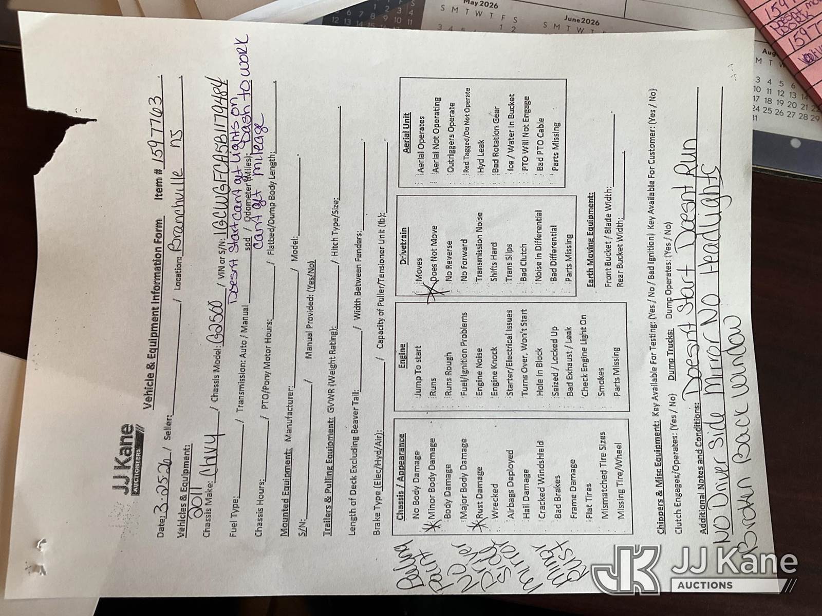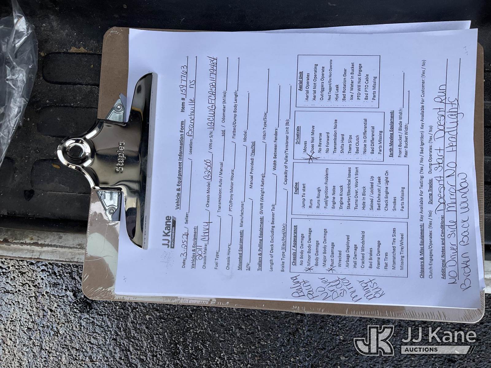 2011 Chevrolet Express G2500 Cargo Van, 8-cyl gas, Auto, A/C, True Mileage Unknown (Not Running, Condition Unknown, Bad Engine, Rear Window Broken, Electrical Issues, Must Tow) (Removal is by Appointment Only, Buyer MUST make a appointment prior to picking up, Buyer/Transporter Must have PAID IN FULL RELEASE. No onsite assistance available, Please Come prepared.) This is a Titled Item NOTE: This unit is being sold AS IS/WHERE IS via Timed Auction and is located in Branchville, NJ. Inspection & preview days for this unit are by appointment only; please contact us at contact@jjkane.com or 84-Go-JJKane for more details. For pre-sale questions, please contact the on-site office @ (973) 948-2026 or wtrbranchville@gmail.com. (Buyer is responsible for removal. Assistance by consignor or JJ Kane Auctions is not assured.)