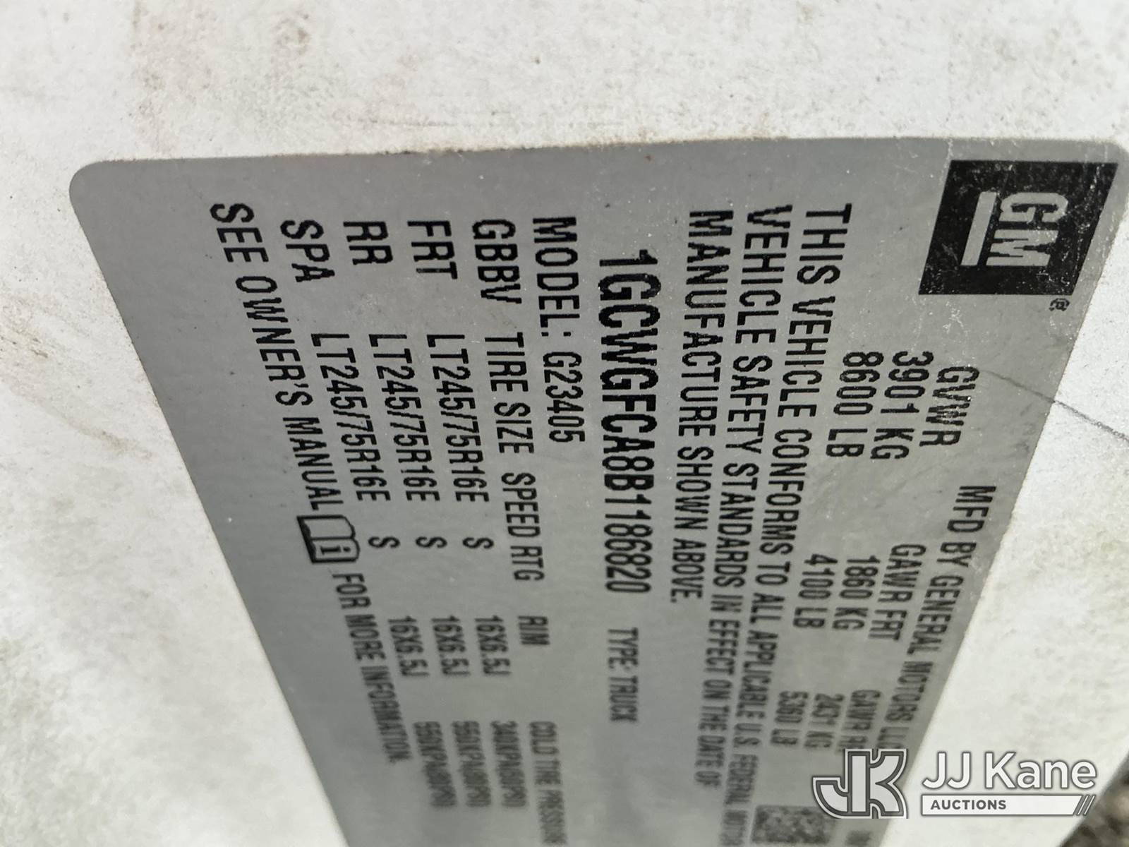 2011 Chevrolet Express G2500 Cargo Van, 8-cyl gas, RWD, Auto, A/C, (79,671 miles) (Not Running, Condition Unknown, Fuel Tank Removed, Check Engine Light On, Body/Paint Damage) (Reads 4,373 hours) This is a Titled Item NOTE: This unit is being sold AS IS/WHERE IS via Timed Auction and is located in Fort Wayne, IN. Inspection & preview days for this unit are the 2 business days prior to the first day of items closing for this auction, item is located at 3020 Commercial Rd Fort Wayne, IN 46809 and hours of operations are 8a-4p. For pre-sale questions, please contact Eric Mcintosh @ (260) 205-2483 (Buyer is responsible for removal. Assistance by consignor or JJ Kane Auctions is not assured.)