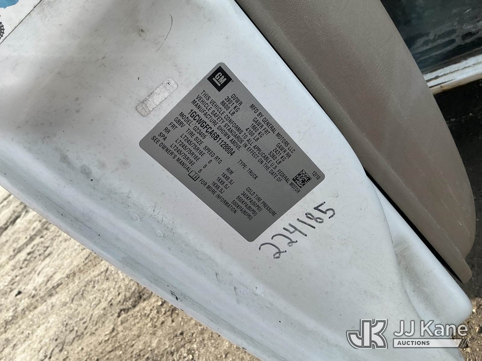 2011 Chevrolet G2500 Cargo Van, 8-cyl gas, Auto, A/C, (121,425 miles) (Runs & Moves, Body & Rust Damage) This is a Titled Item NOTE: This unit is being sold AS IS/WHERE IS via Timed Auction and is located in Plymouth Meeting, PA. Inspection & preview days for this unit are the 2 business days prior to the first day of items closing for this auction, item is located at 1402 Conshohocken Rd Plymouth Meeting, PA 19462 and hours of operations are 8a-4p. For pre-sale questions, please contact Bruce Thomas @ (267) 887-0392 or bruce.thomas.jr@jjkane.com. (Buyer is responsible for removal. Assistance by consignor or JJ Kane Auctions is not assured.)