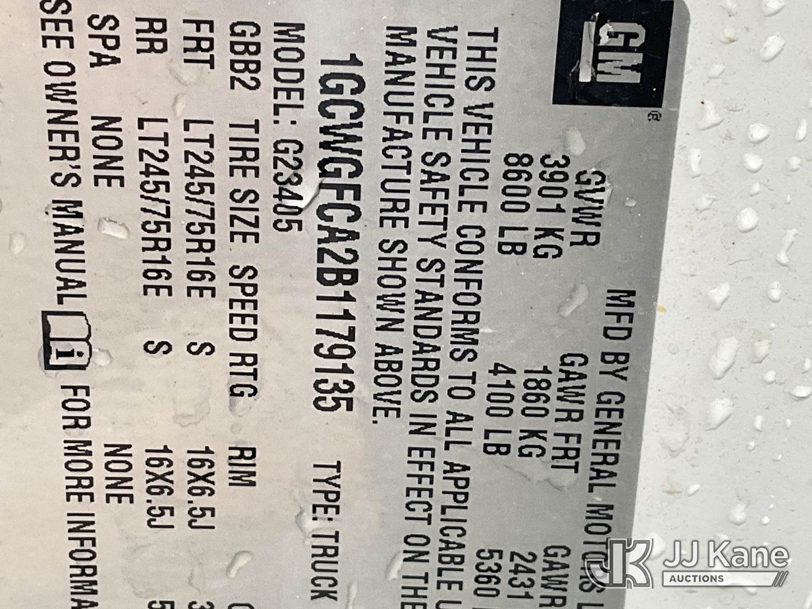 2011 Chevrolet G2500 Cargo Van, 4.8L V8 Gas, 6-Speed Automatic, A/C, (153,089 miles) (Runs & Moves) (Removal is by Appointment Only, Buyer MUST make a appointment prior to picking up, Buyer/Transporter Must have PAID IN FULL RELEASE. No onsite assistance available, Please Come prepared.) This is a Titled Item NOTE: This unit is being sold AS IS/WHERE IS via Timed Auction and is located in Hagerstown, MD. Inspection & preview days for this unit are by appointment only; please contact us at contact@jjkane.com or 84-Go-JJKane for more details. For pre-sale questions, please contact the on-site office @ (301) 895-7777 or Kevin.Waggoner@JJKane.com. (Buyer is responsible for removal. Assistance by consignor or JJ Kane Auctions is not assured.)